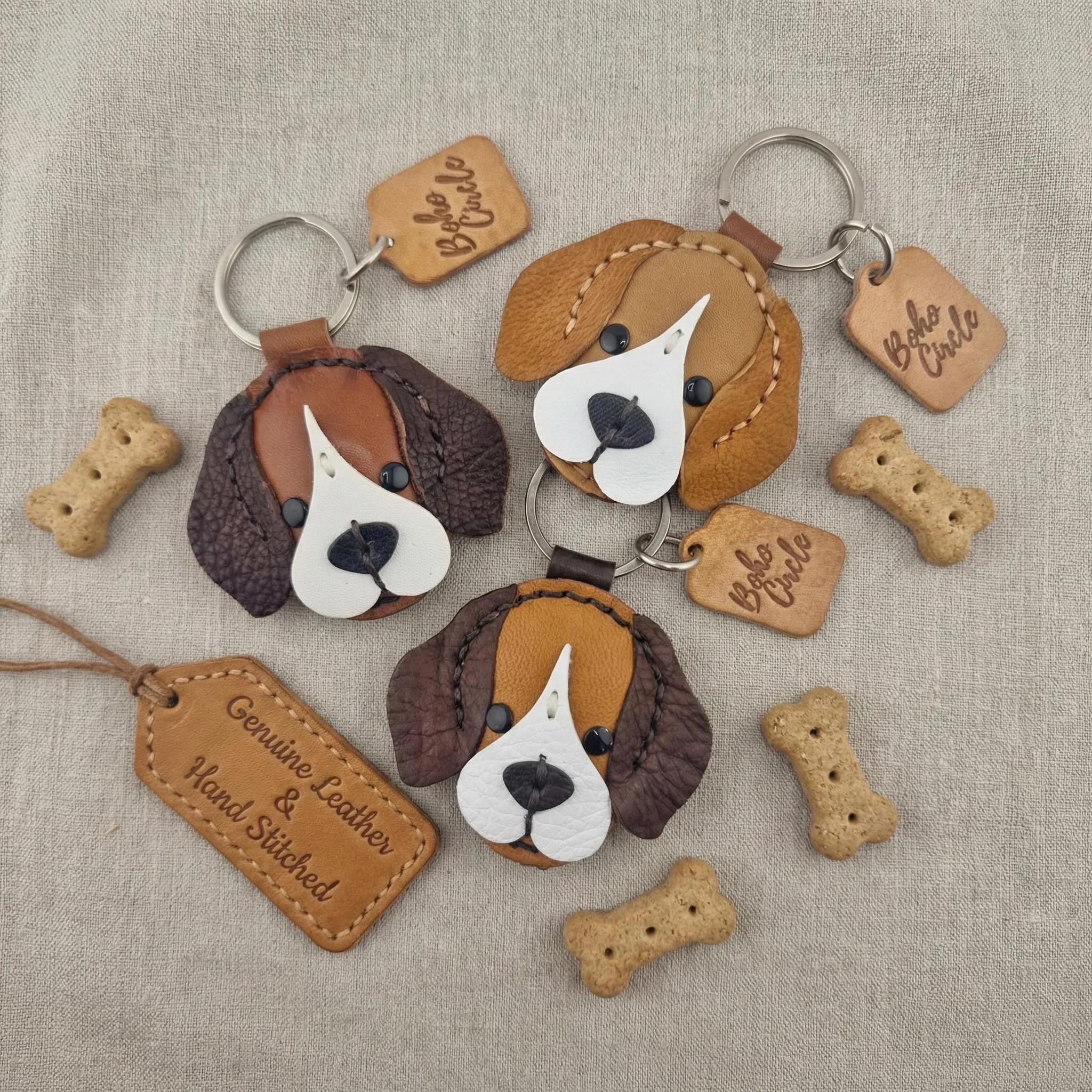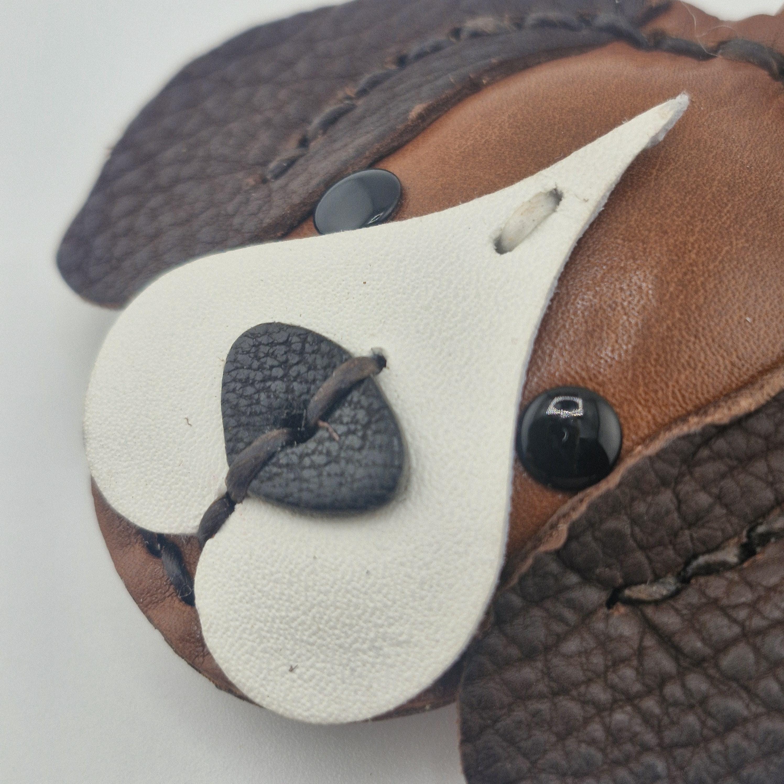 Premium Leather: Made from high-quality genuine leather in classic beagle colors (tan, brown, and black/white accents).