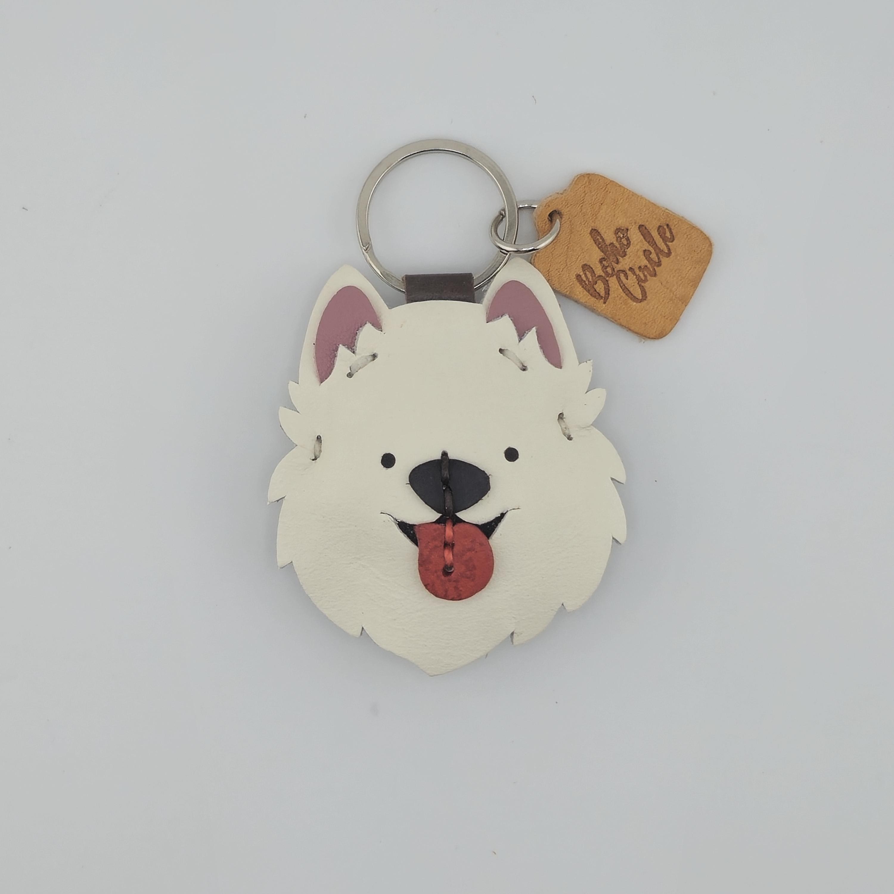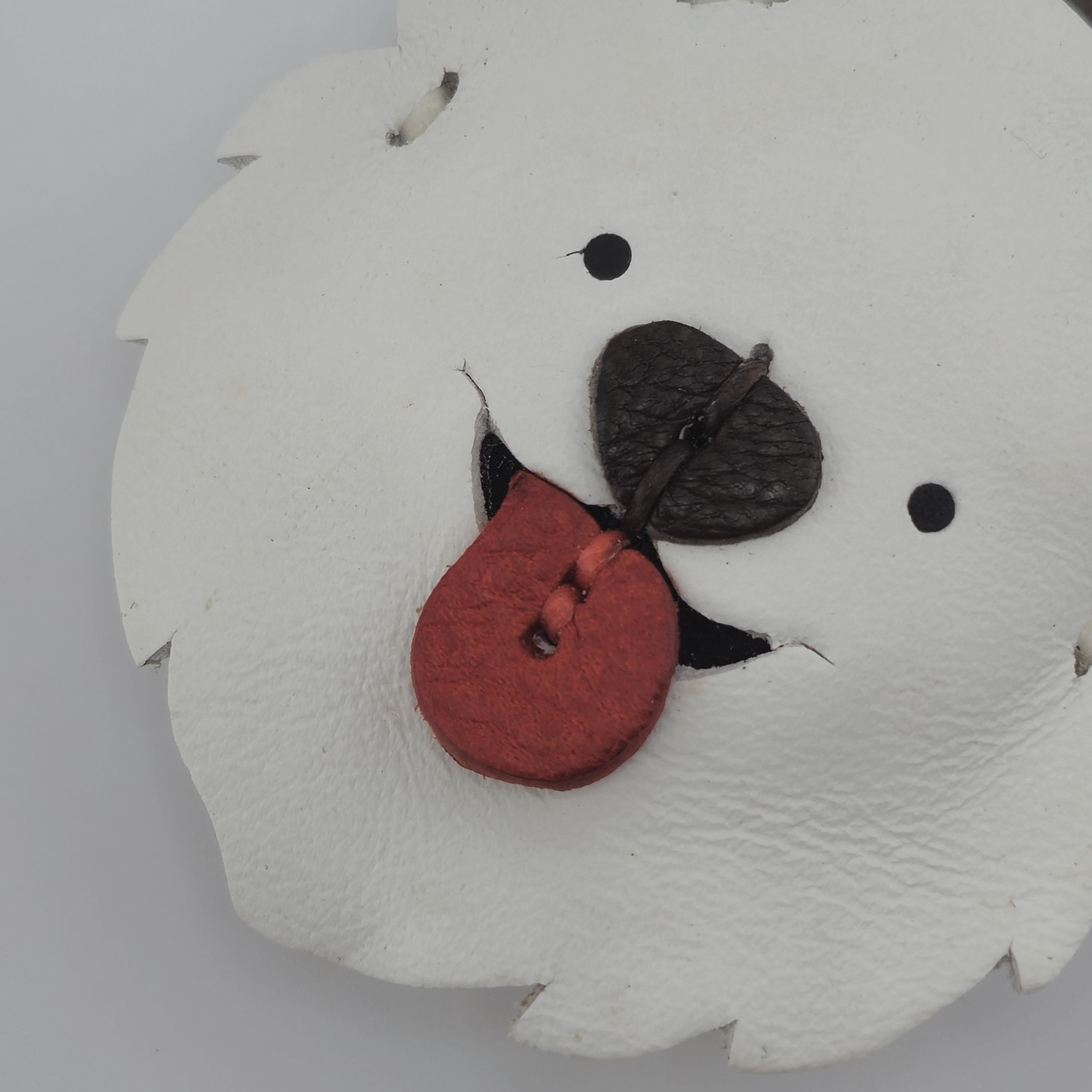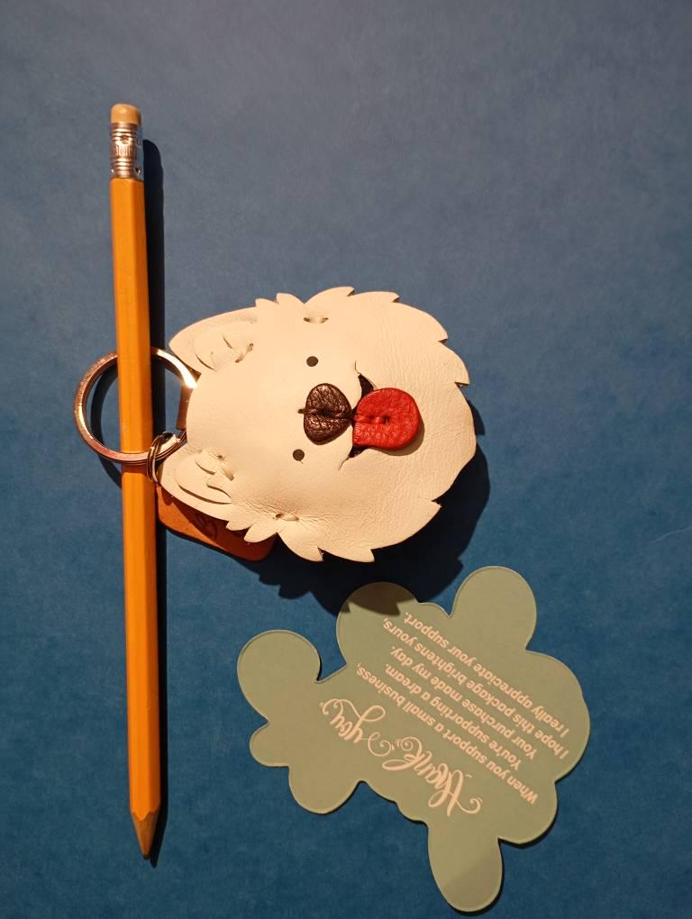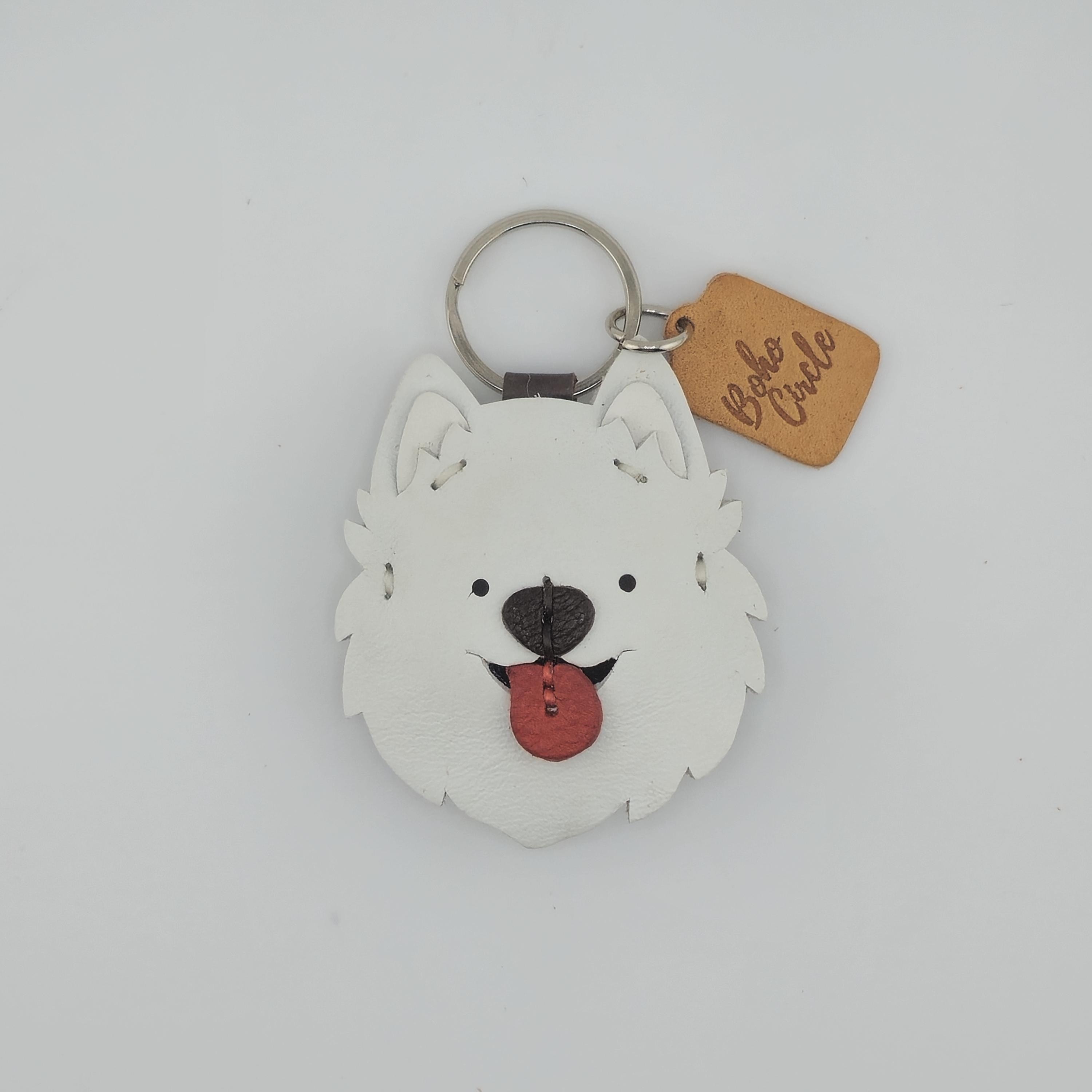 Celebrate your favourite fluffy friend with this adorable, handmade leather Samoyed (or Spitz-type dog) keychain! Crafted with meticulous care, this charm captures the cheerful spirit of fluffy white dogs everywhere.