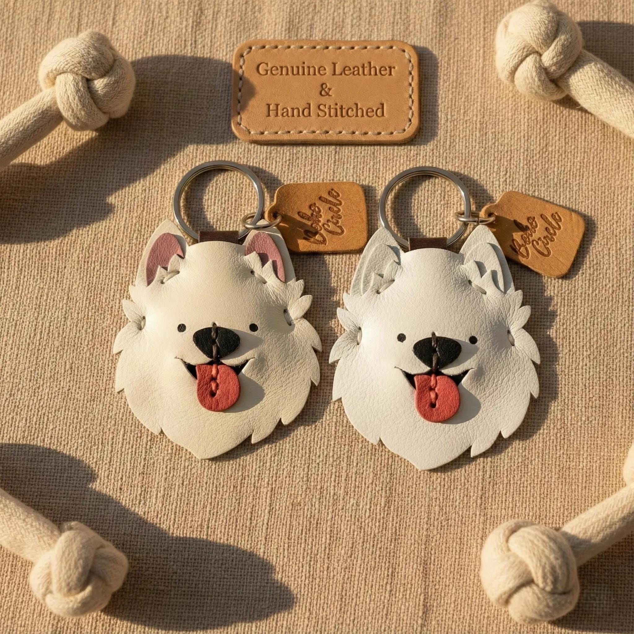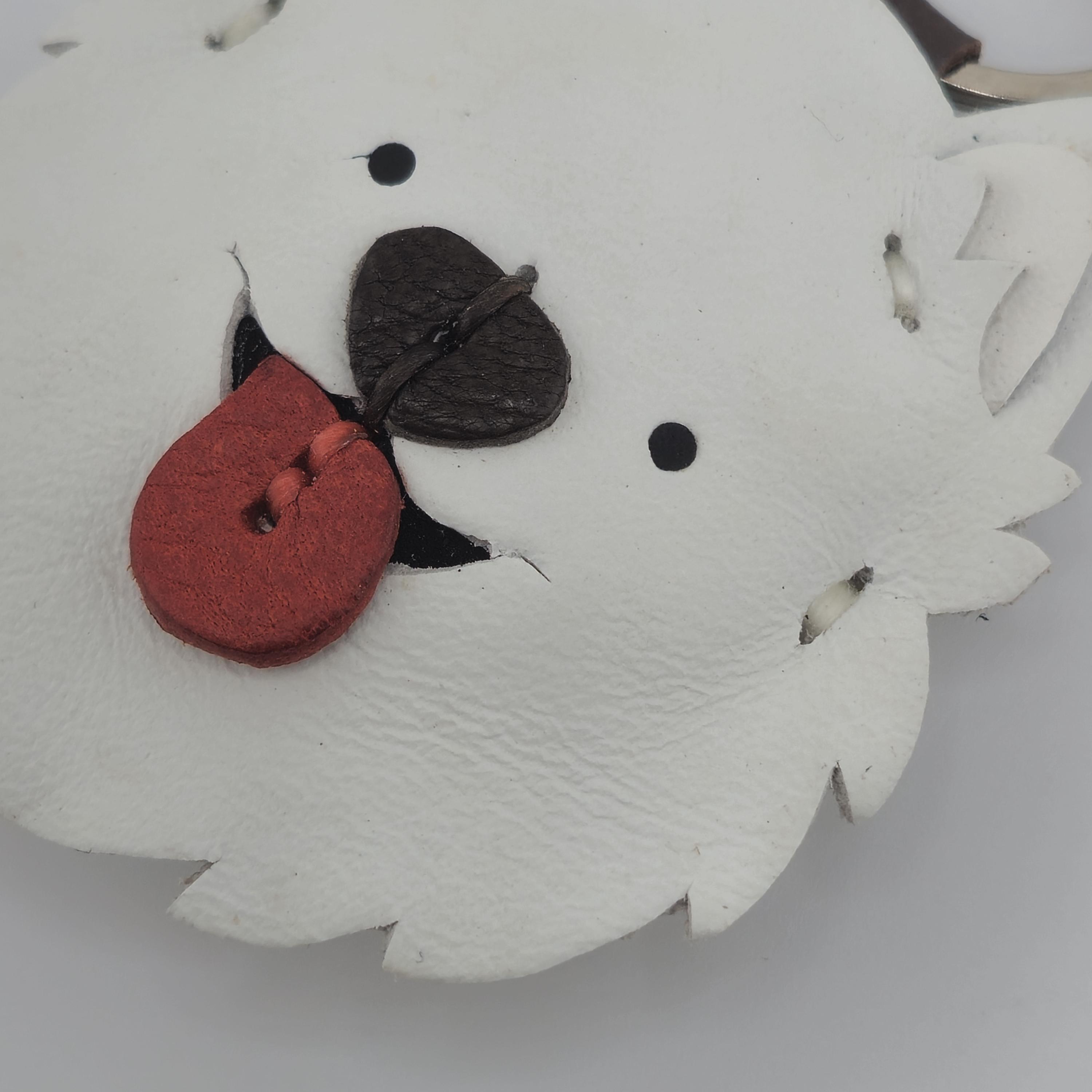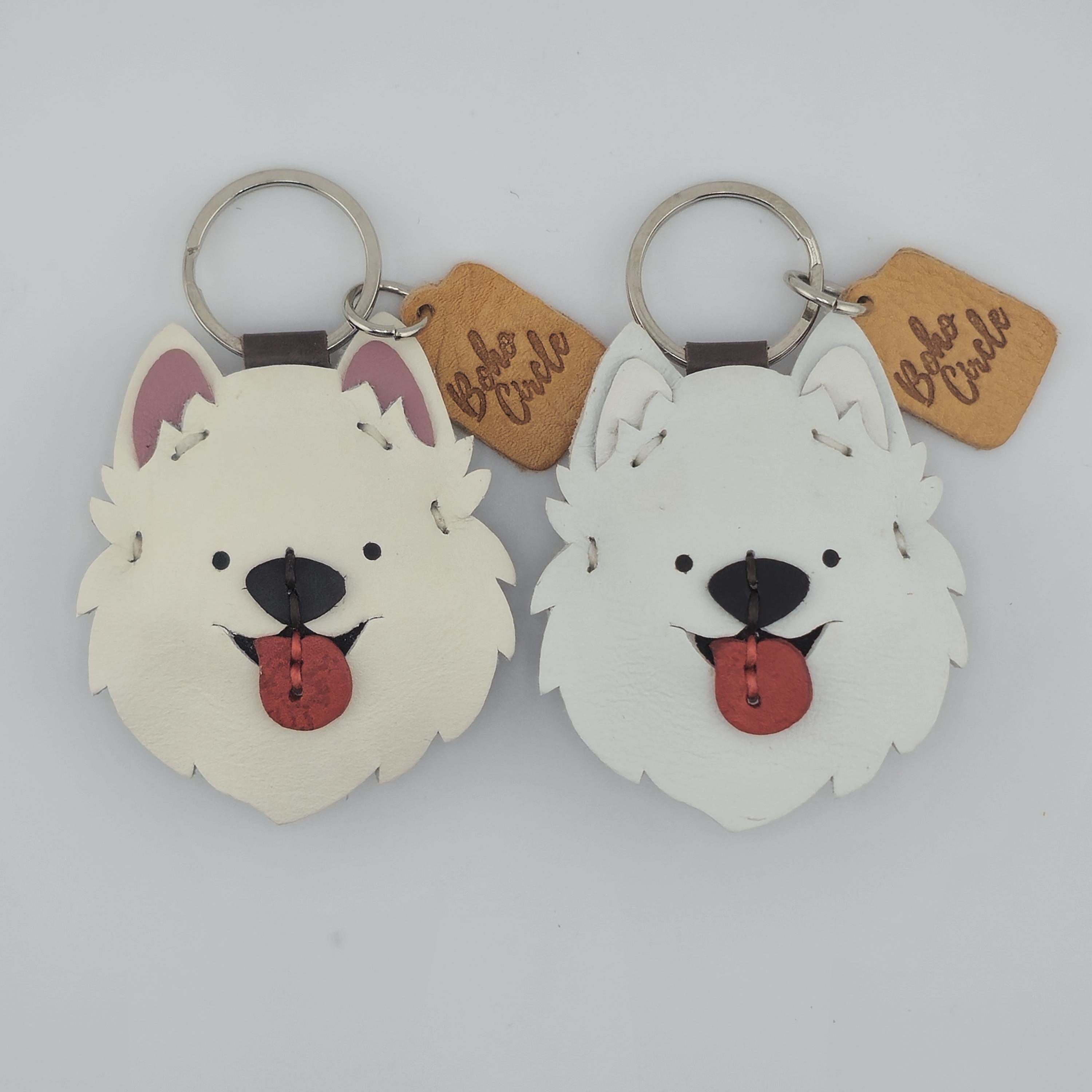 Celebrate your favourite fluffy friend with this adorable, handmade leather Samoyed (or Spitz-type dog) keychain! Crafted with meticulous care, this charm captures the cheerful spirit of fluffy white dogs everywhere.