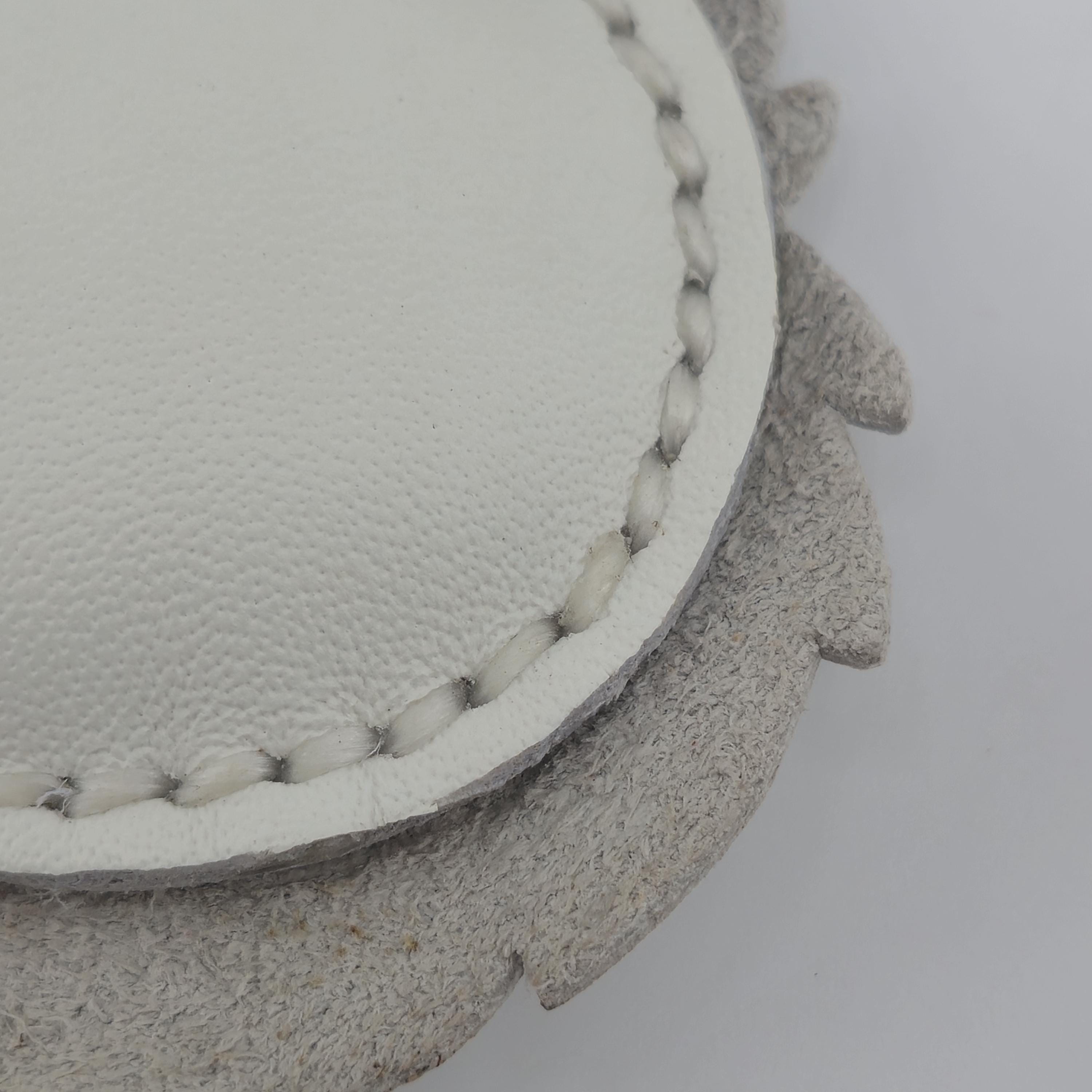 Premium Leather: Made from high-quality white leather for the face, with charming accent colours for the ears and a fun red button tongue detail!