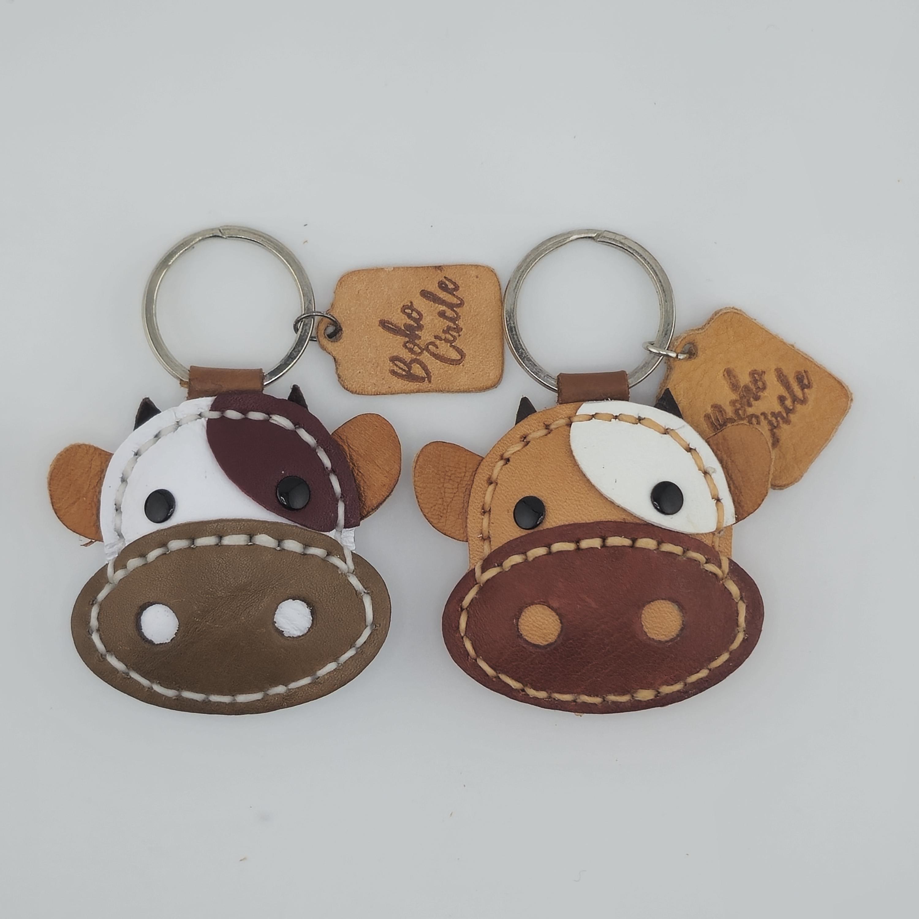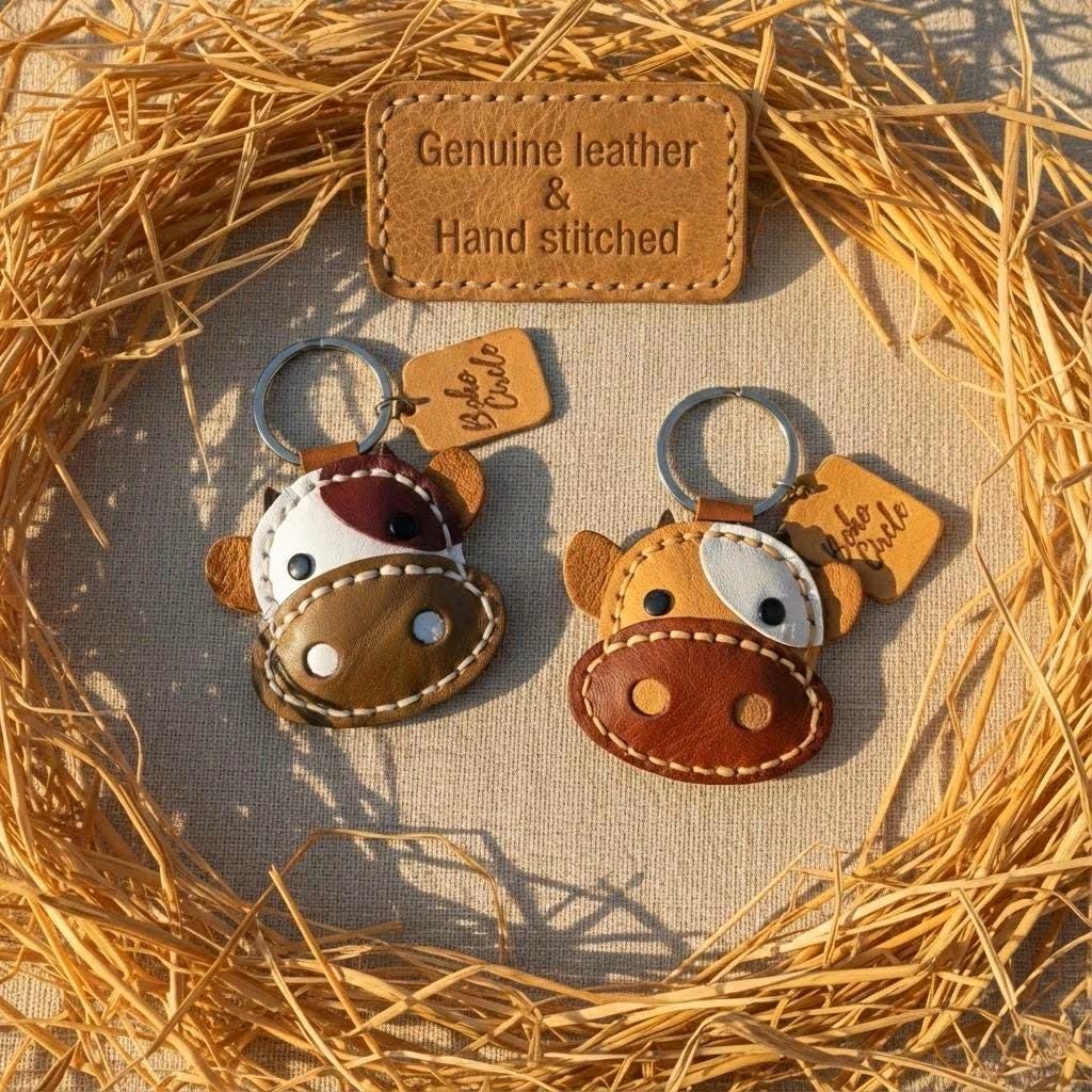 Moo-ve over, boring keyrings! 🐄 Add a splash of rustic charm to your belongings with these absolutely adorable handmade leather cow keychains. Each charm is meticulously crafted with layered leather pieces, detailed stitching, and sweet features to capture the lovable character of a cow.