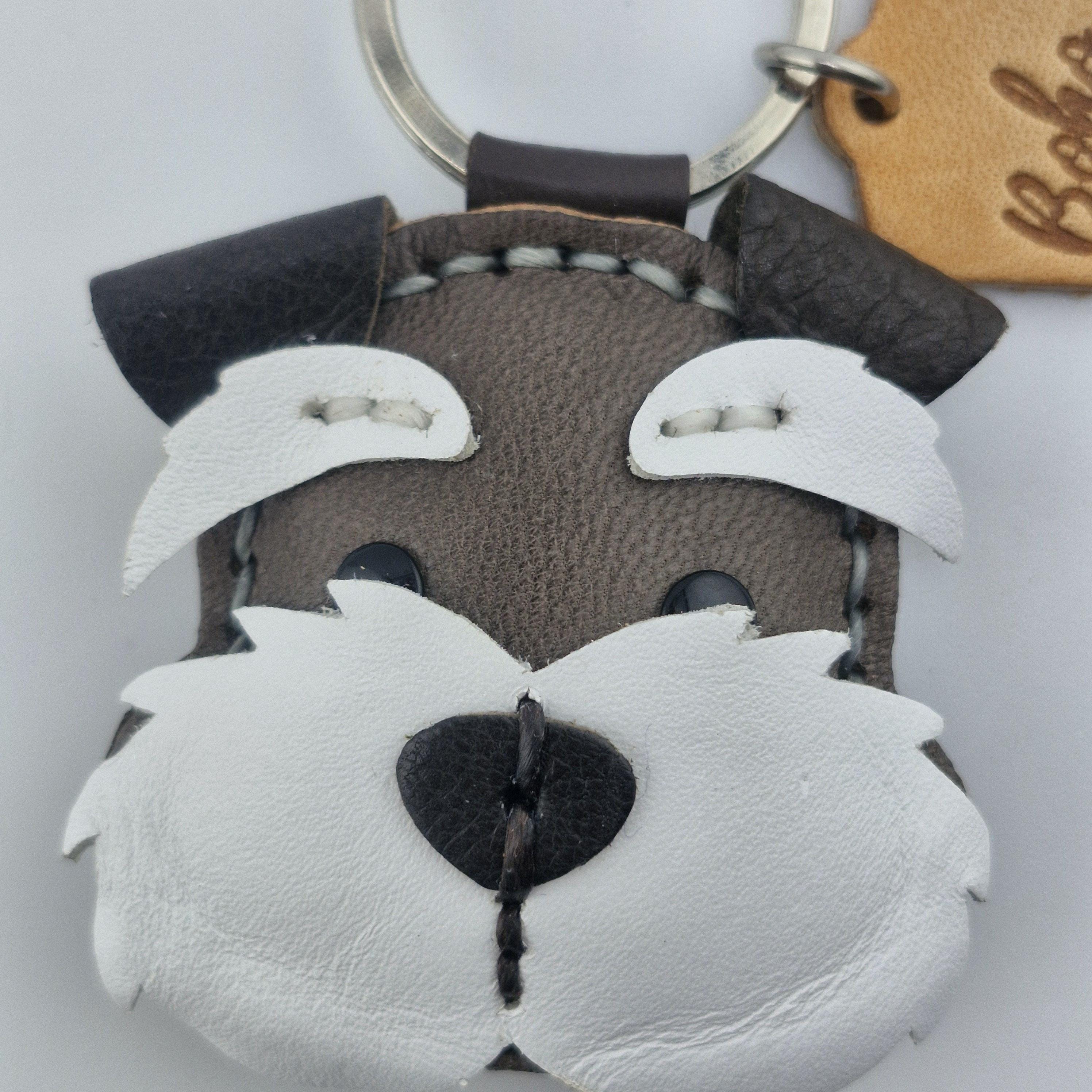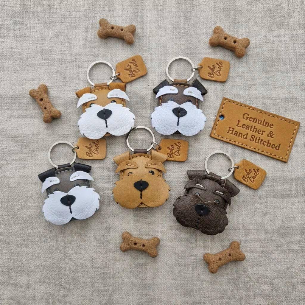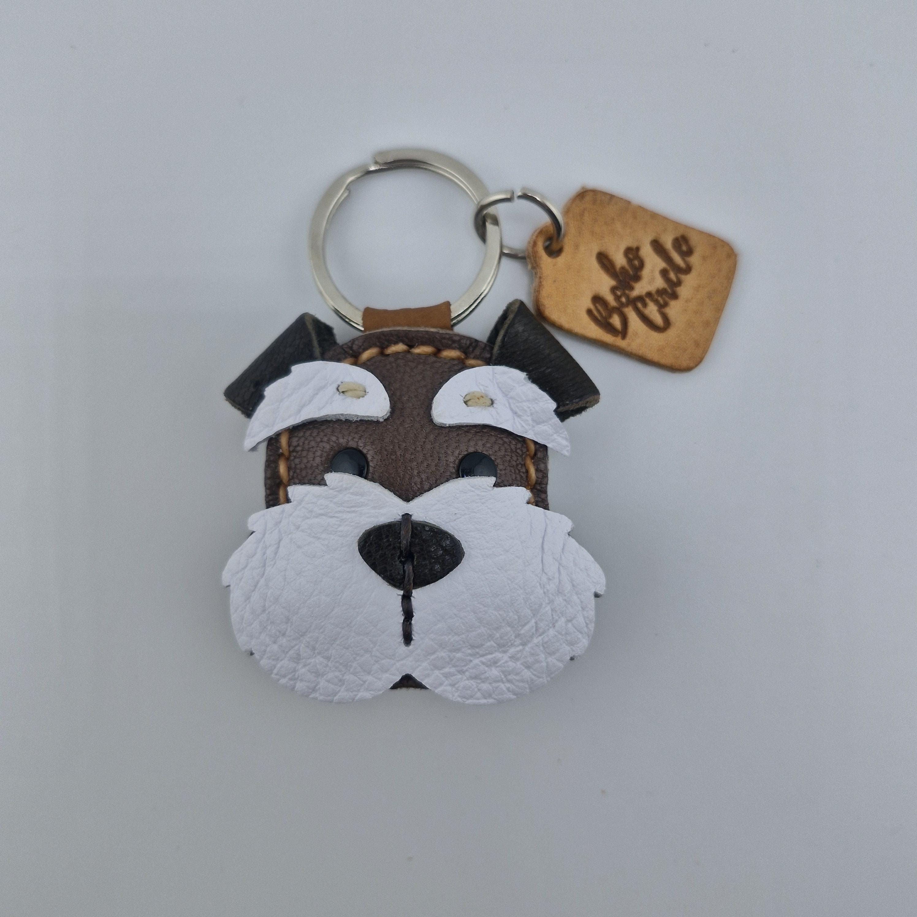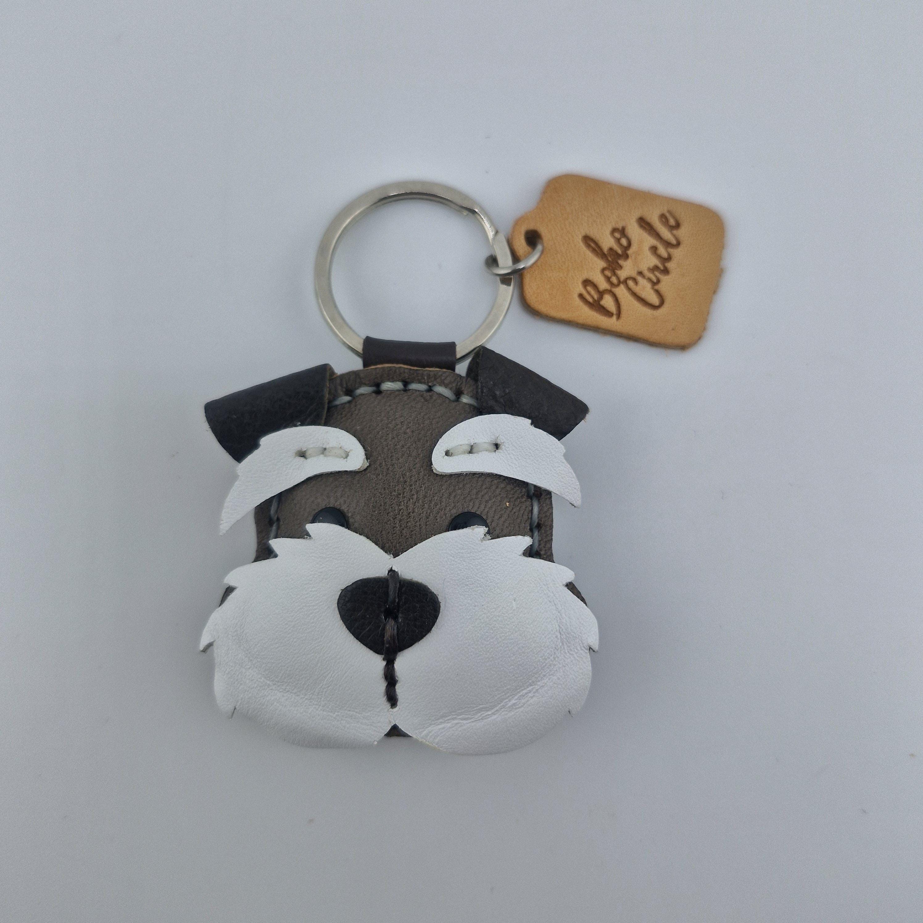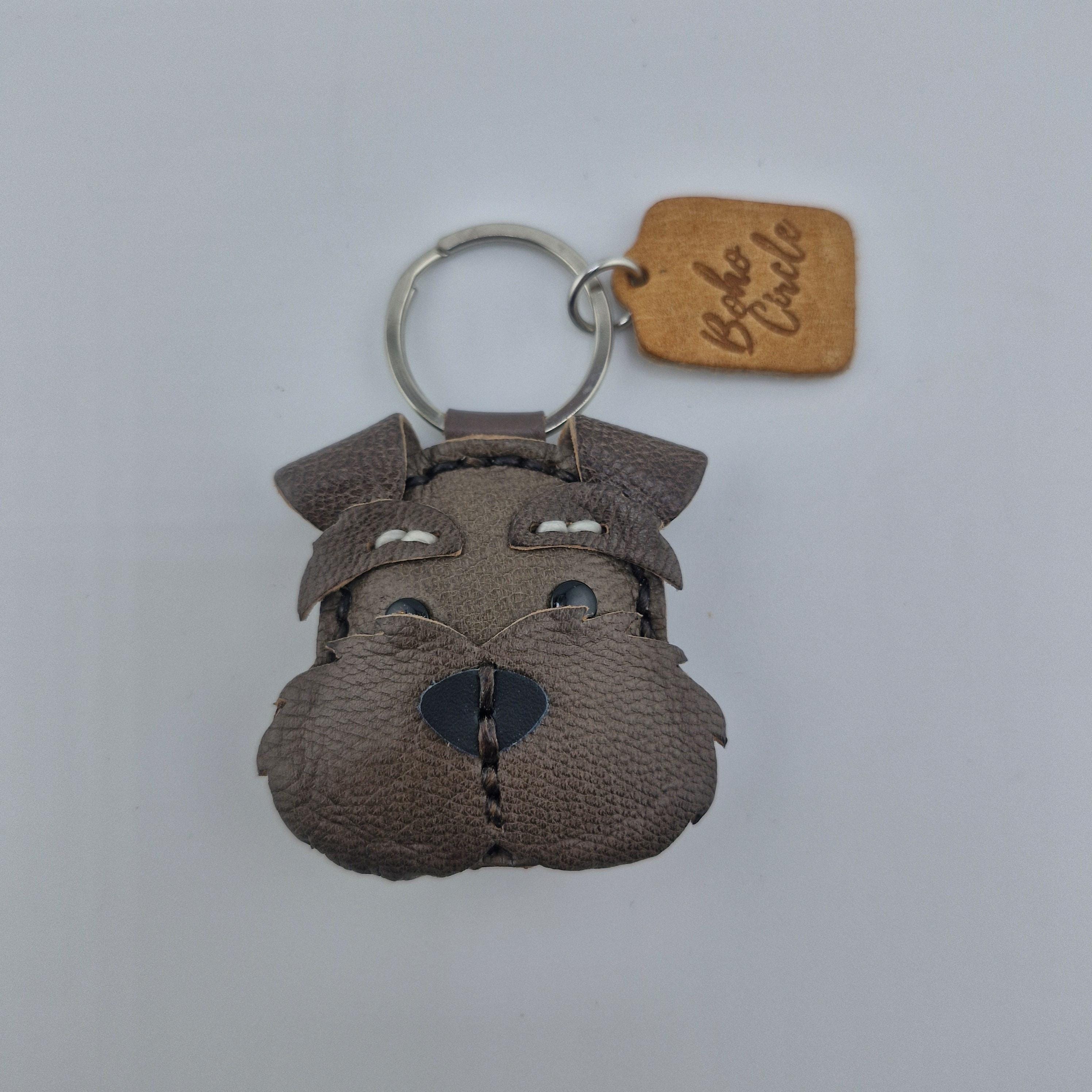 Give a nod to the wonderfully whiskered Schnauzer with this striking, handmade leather keychain! Expertly crafted, this charm captures the character of Miniature, Standard, or Giant Schnauzers, complete with their famous bushy eyebrows and magnificent beard.
