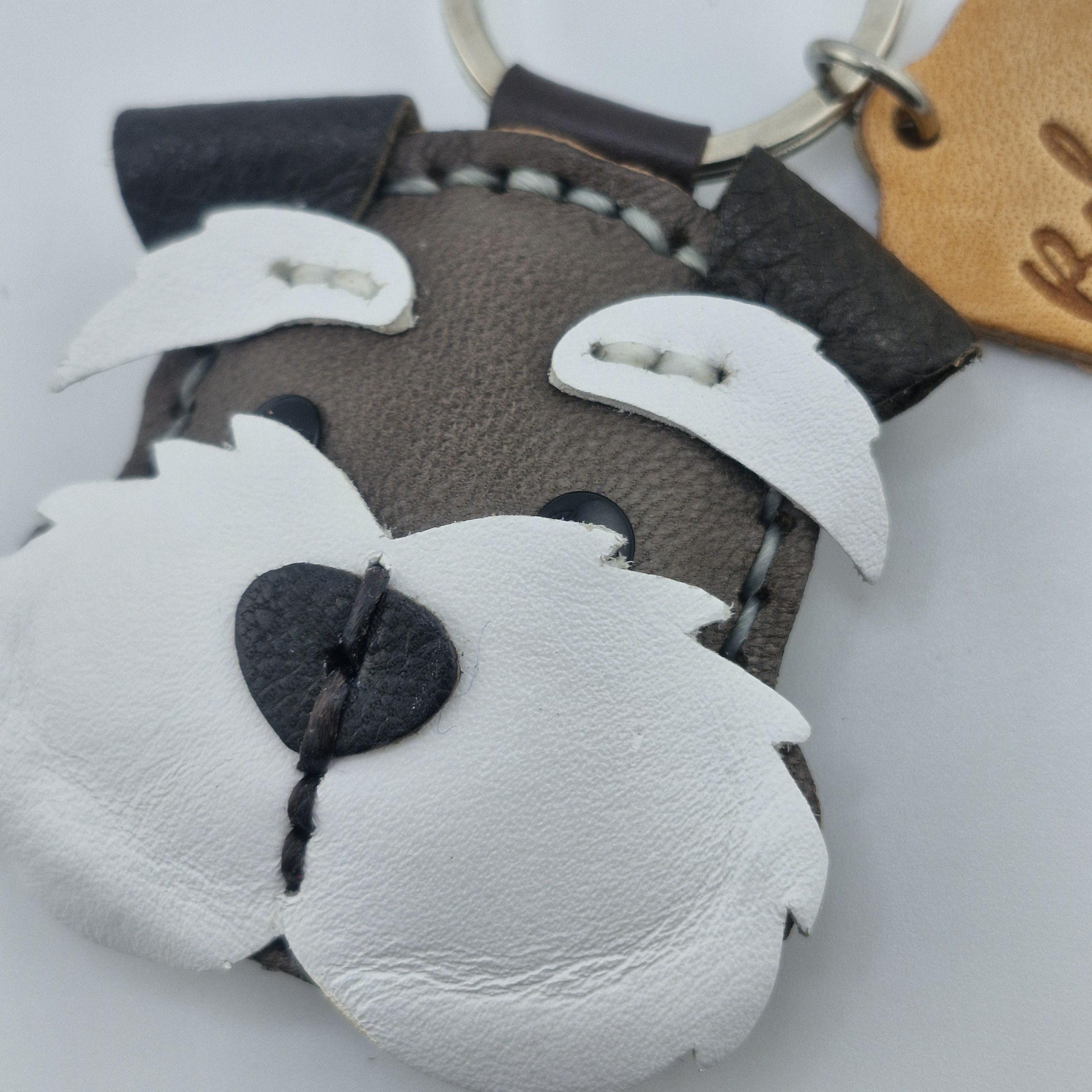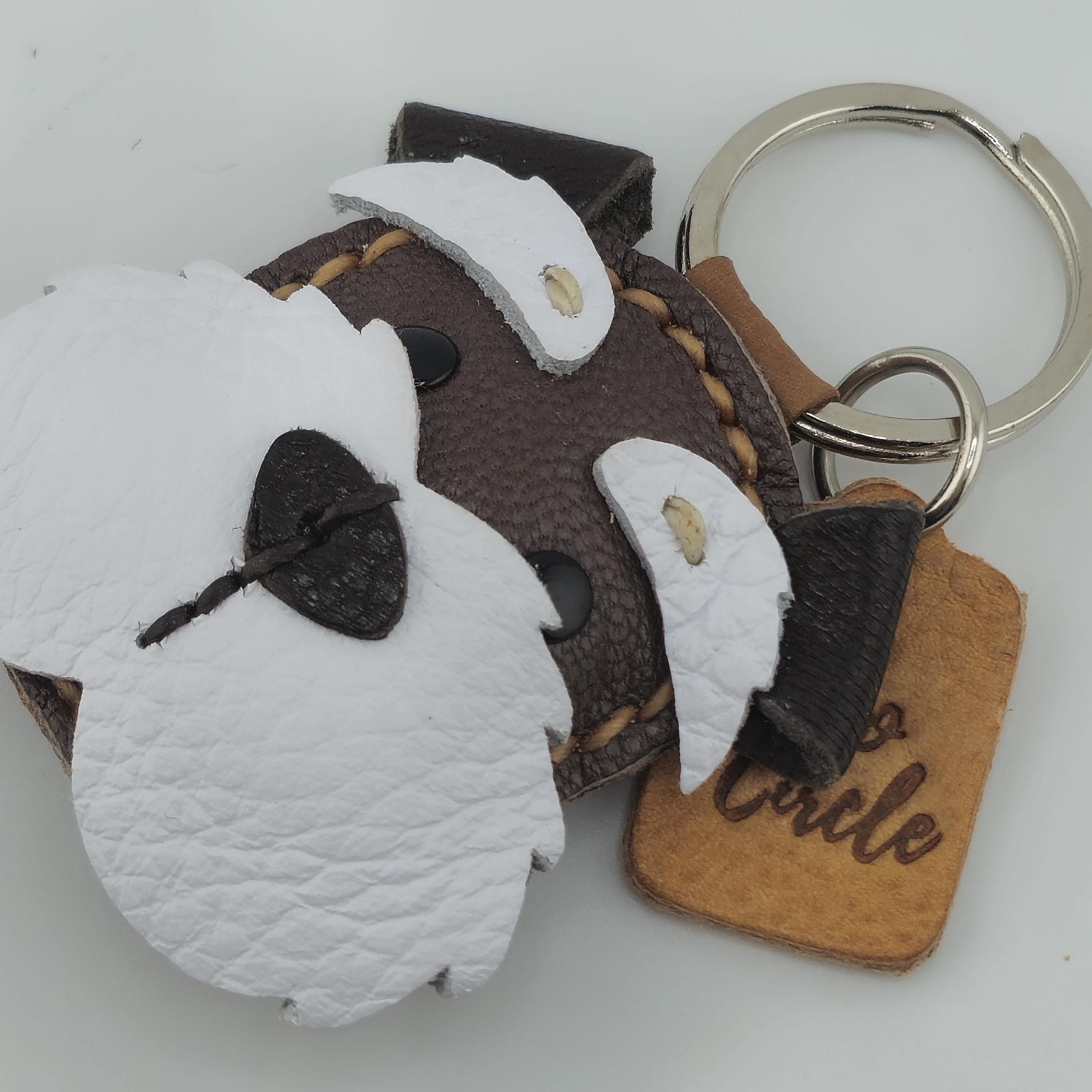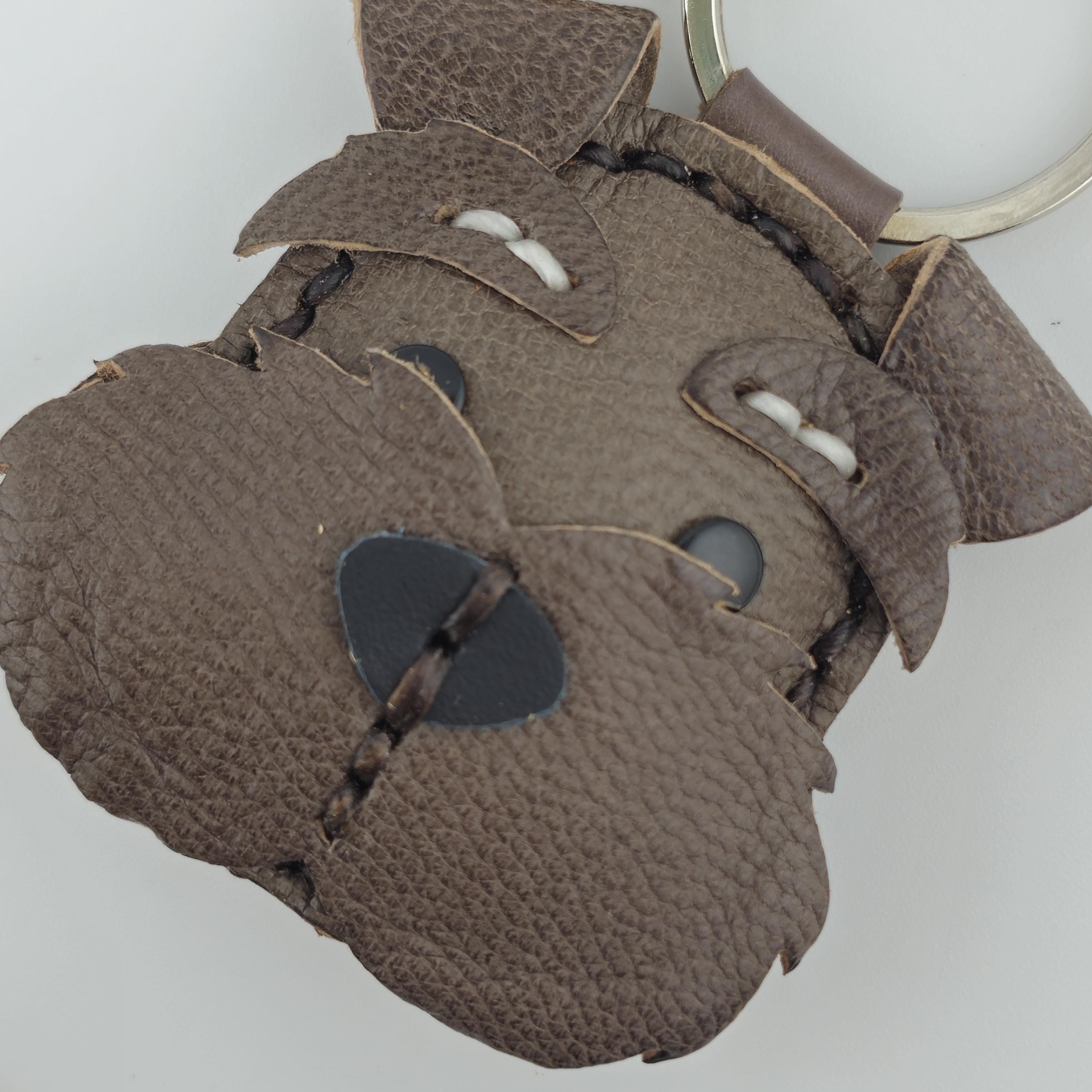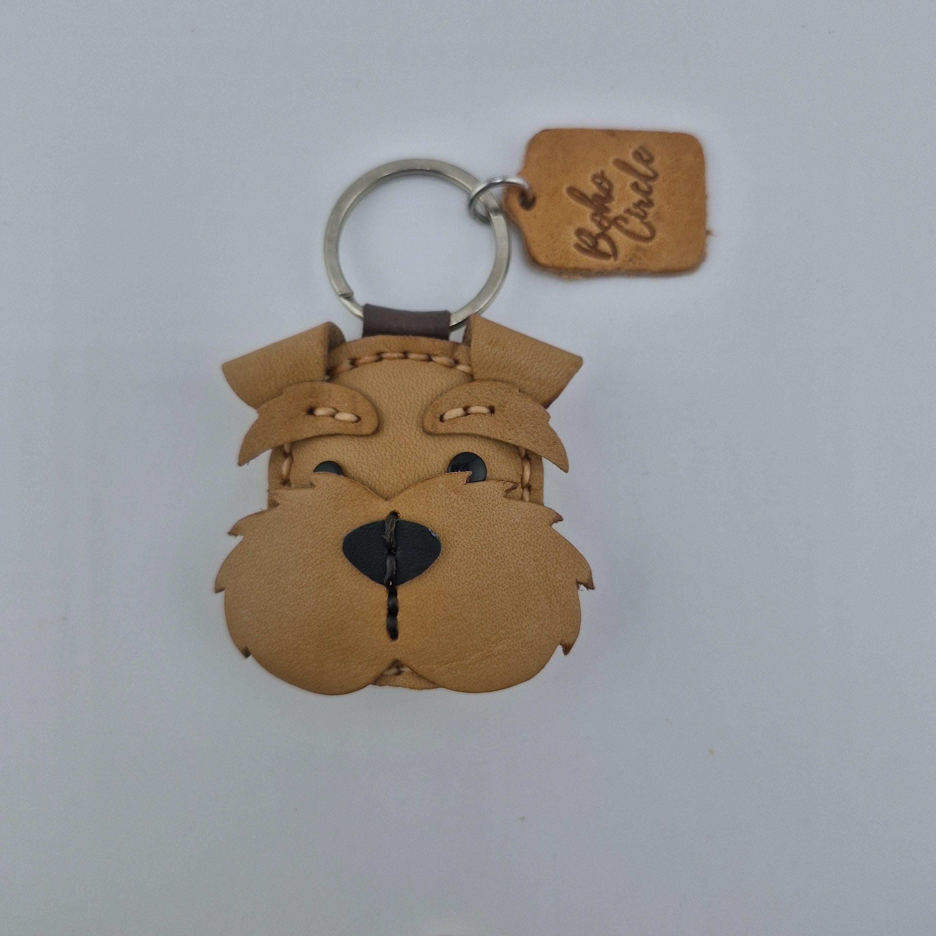 Give a nod to the wonderfully whiskered Schnauzer with this striking, handmade leather keychain! Expertly crafted, this charm captures the character of Miniature, Standard, or Giant Schnauzers, complete with their famous bushy eyebrows and magnificent beard.