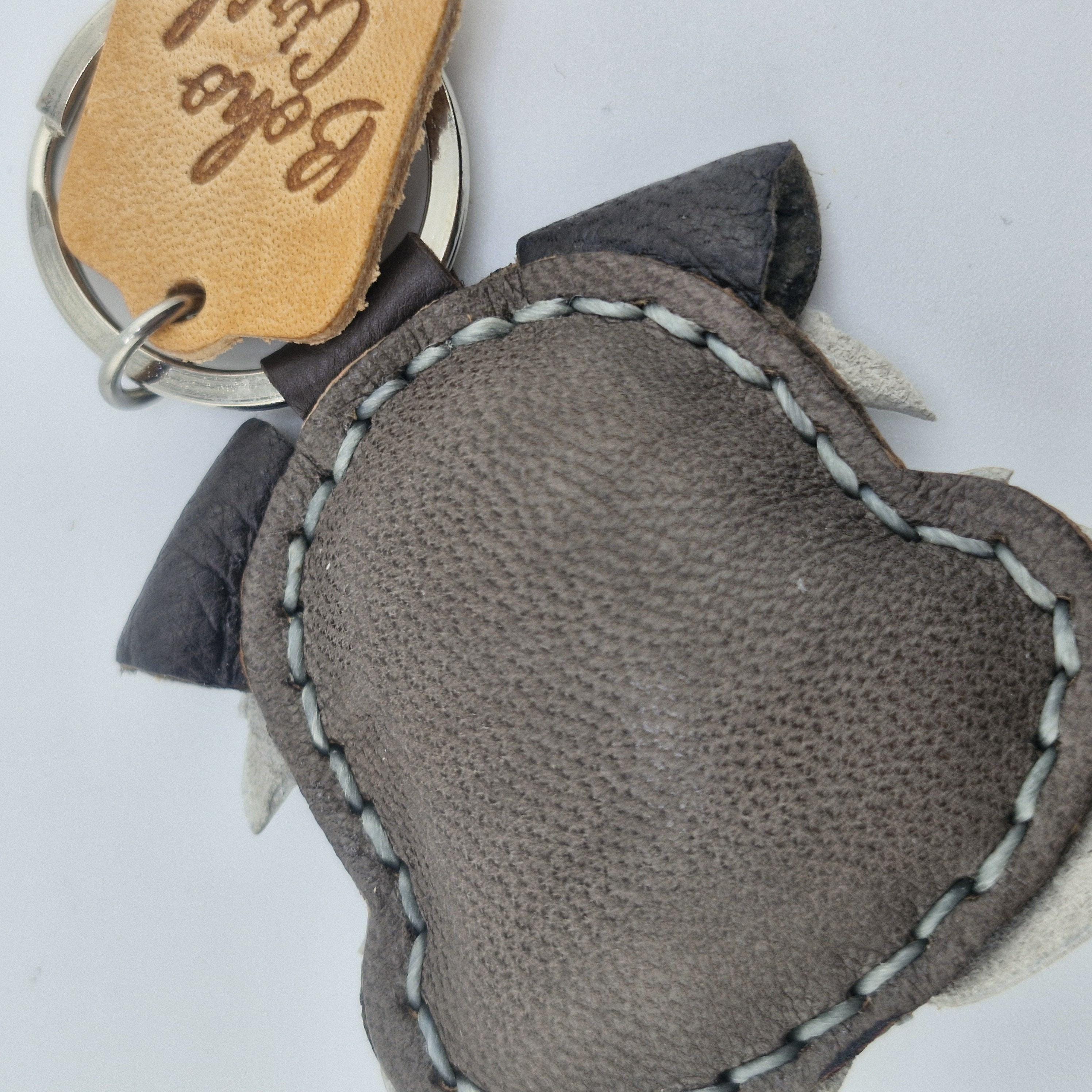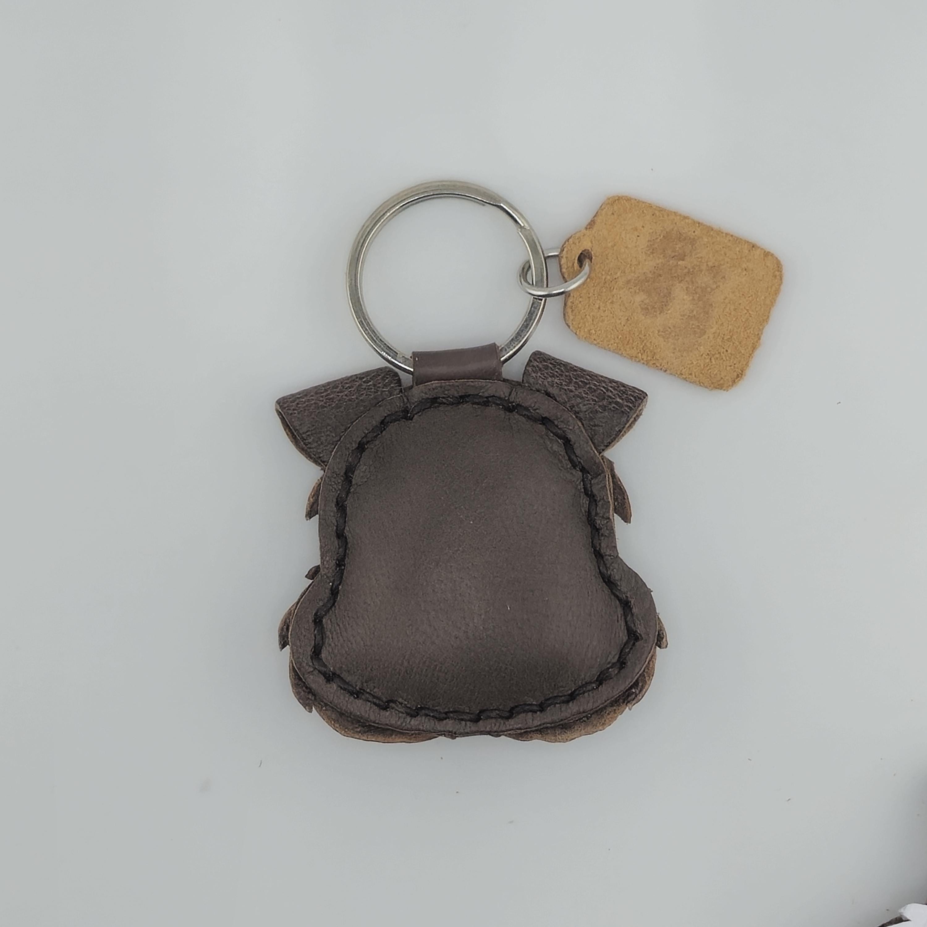 Hardware: Secured to a durable metal split ring. The reverse side is smooth, plain leather.