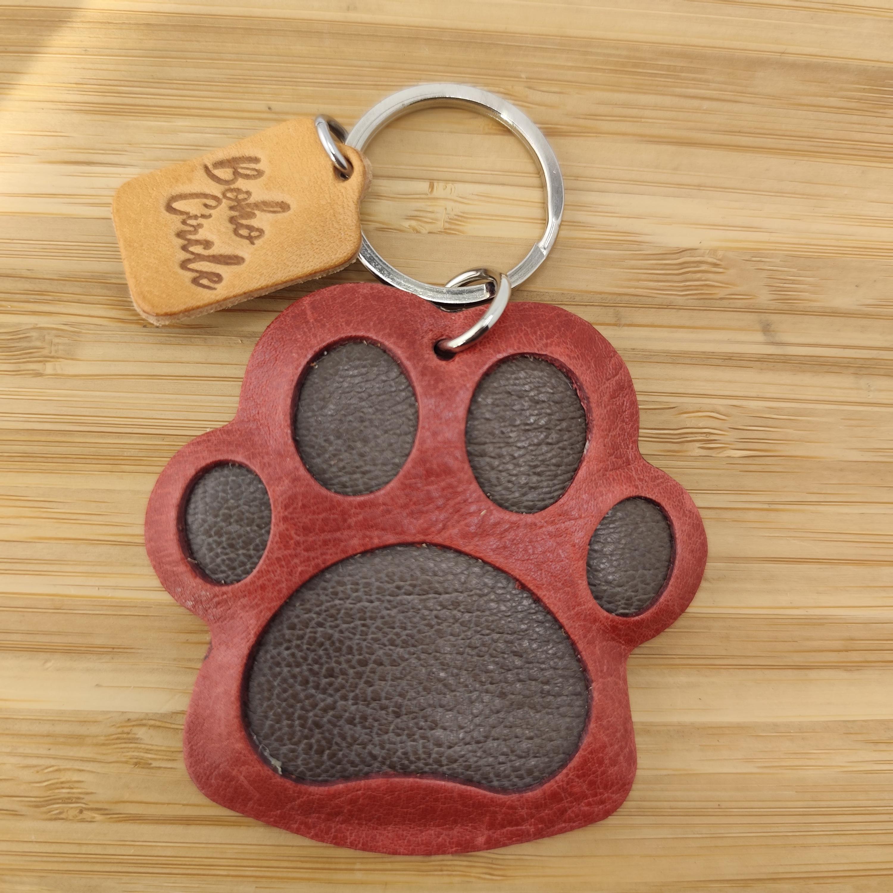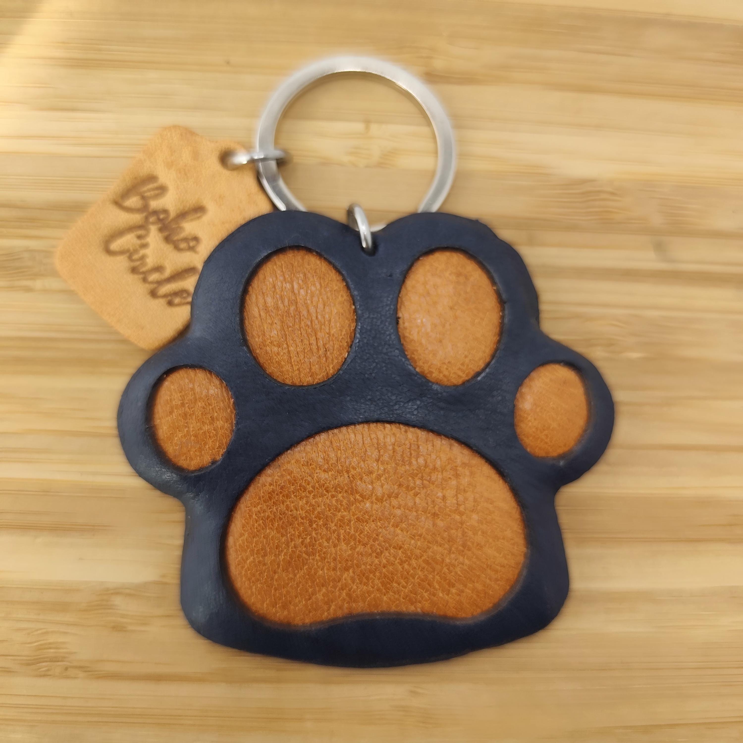 Keep your furry friend close with this beautiful, hand-cut leather paw print keyring. Available in several rich, two-tone colour combinations, this charm is a stylish way to celebrate your dog, cat, or any beloved pet. It makes a heartfelt pet memorial or a perfect gift for any dog mum or cat dad!