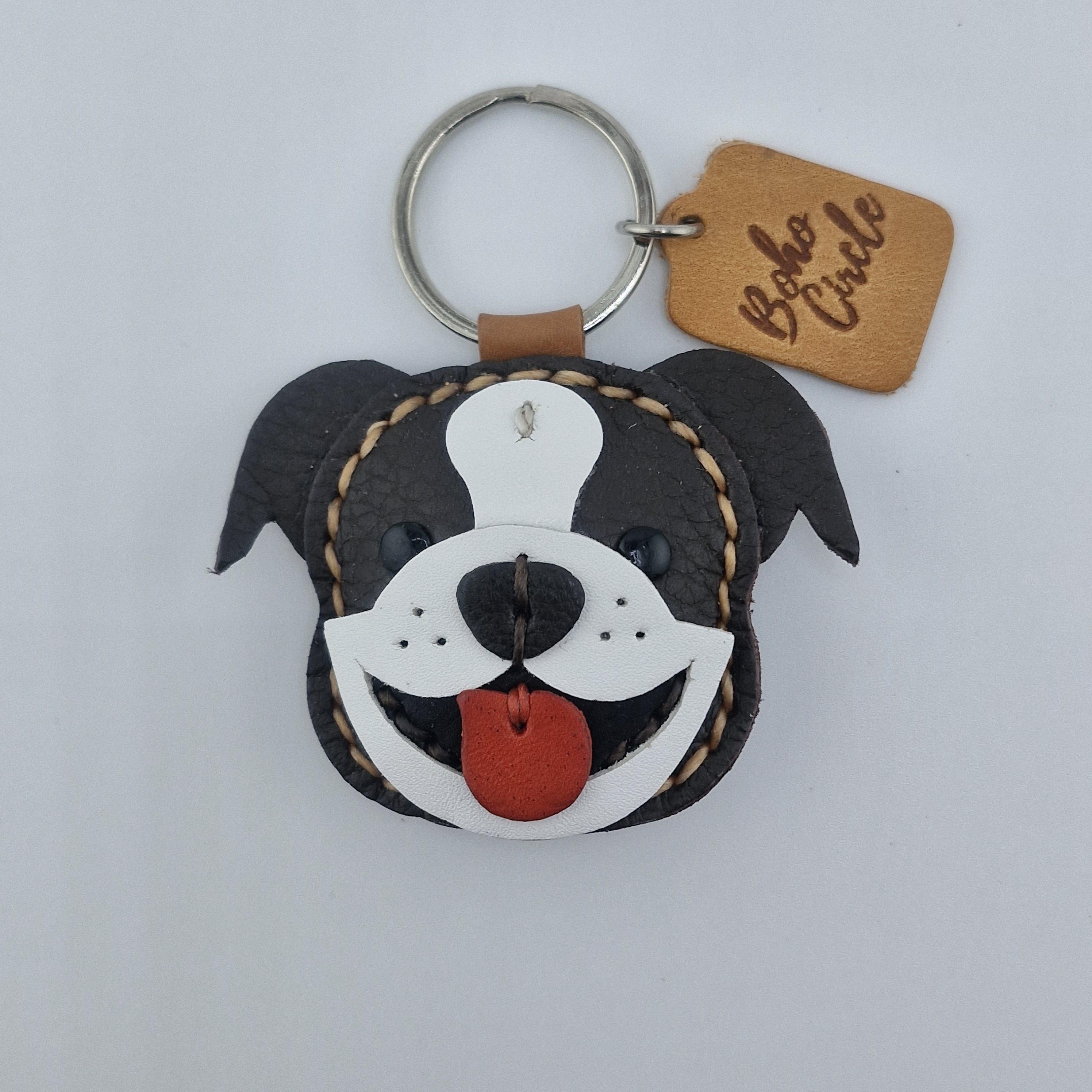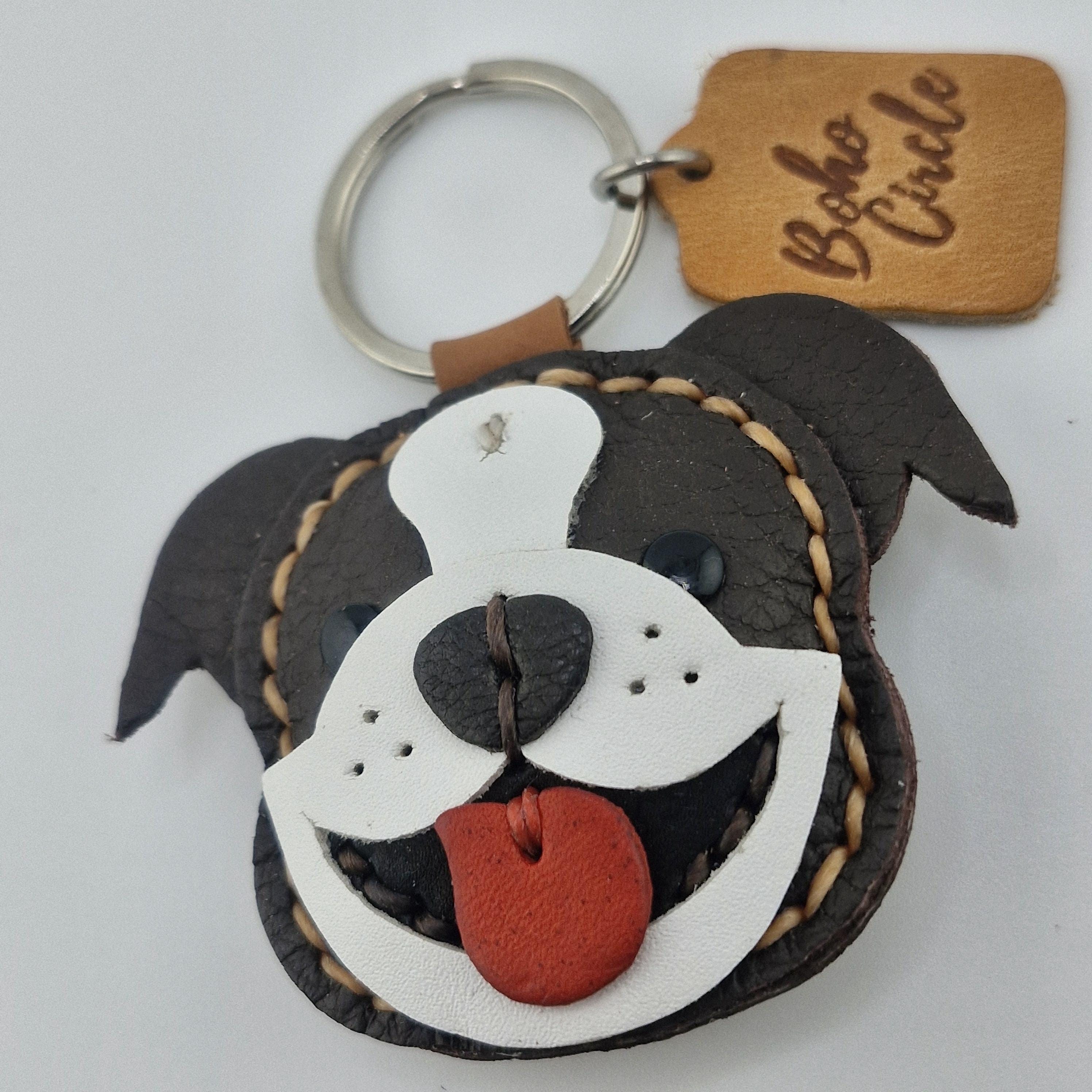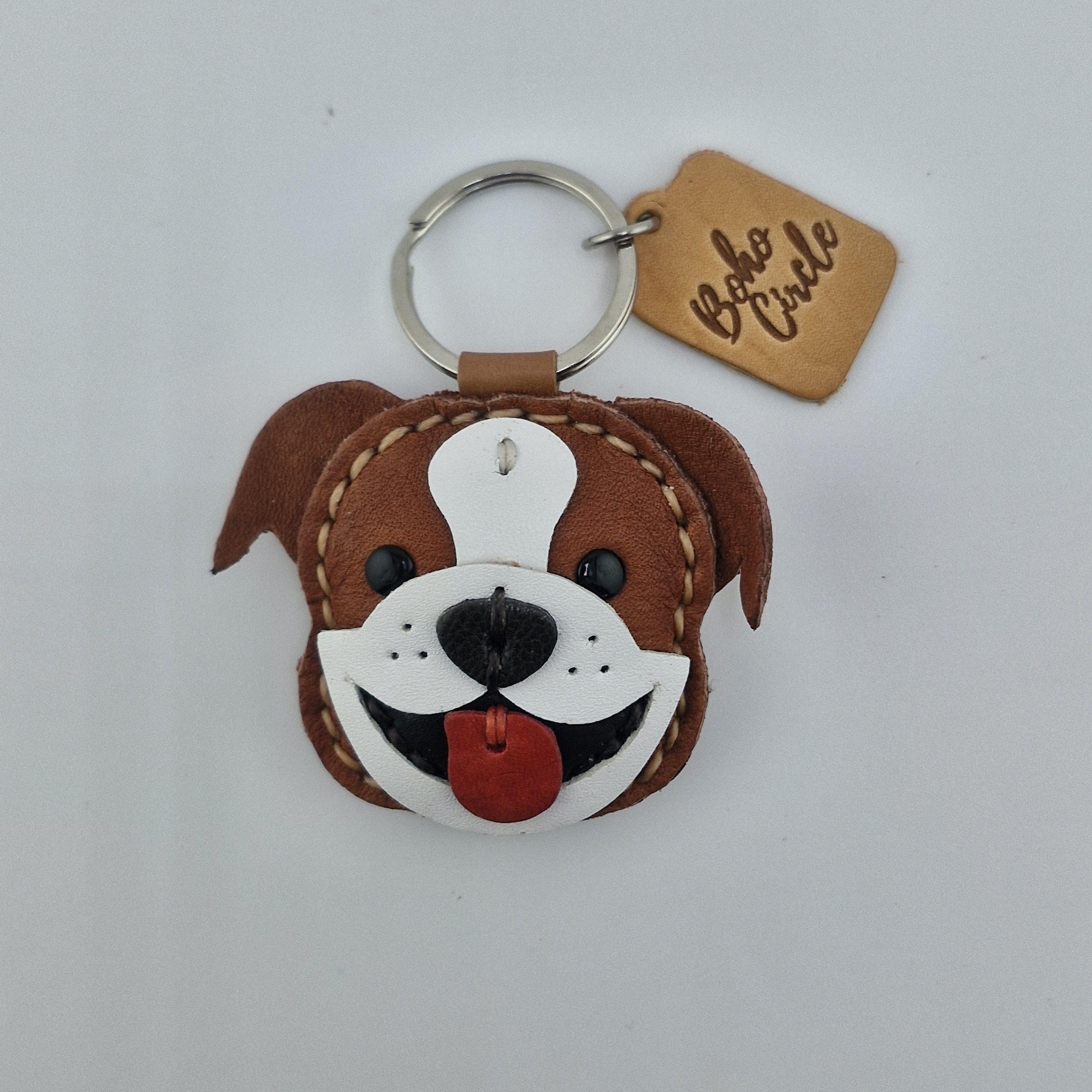 Carry a smile with you everywhere you go with this charming leather Bulldog!