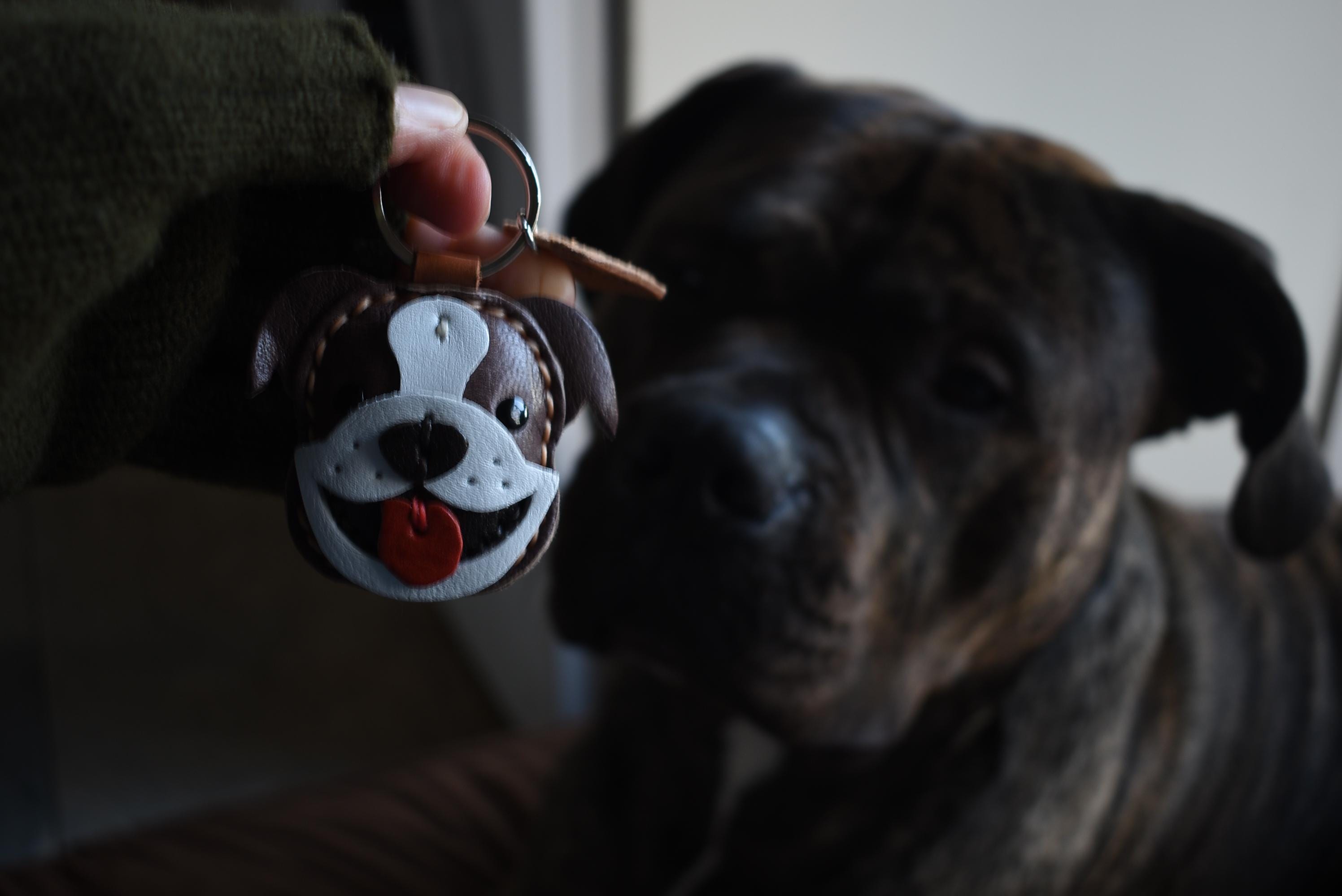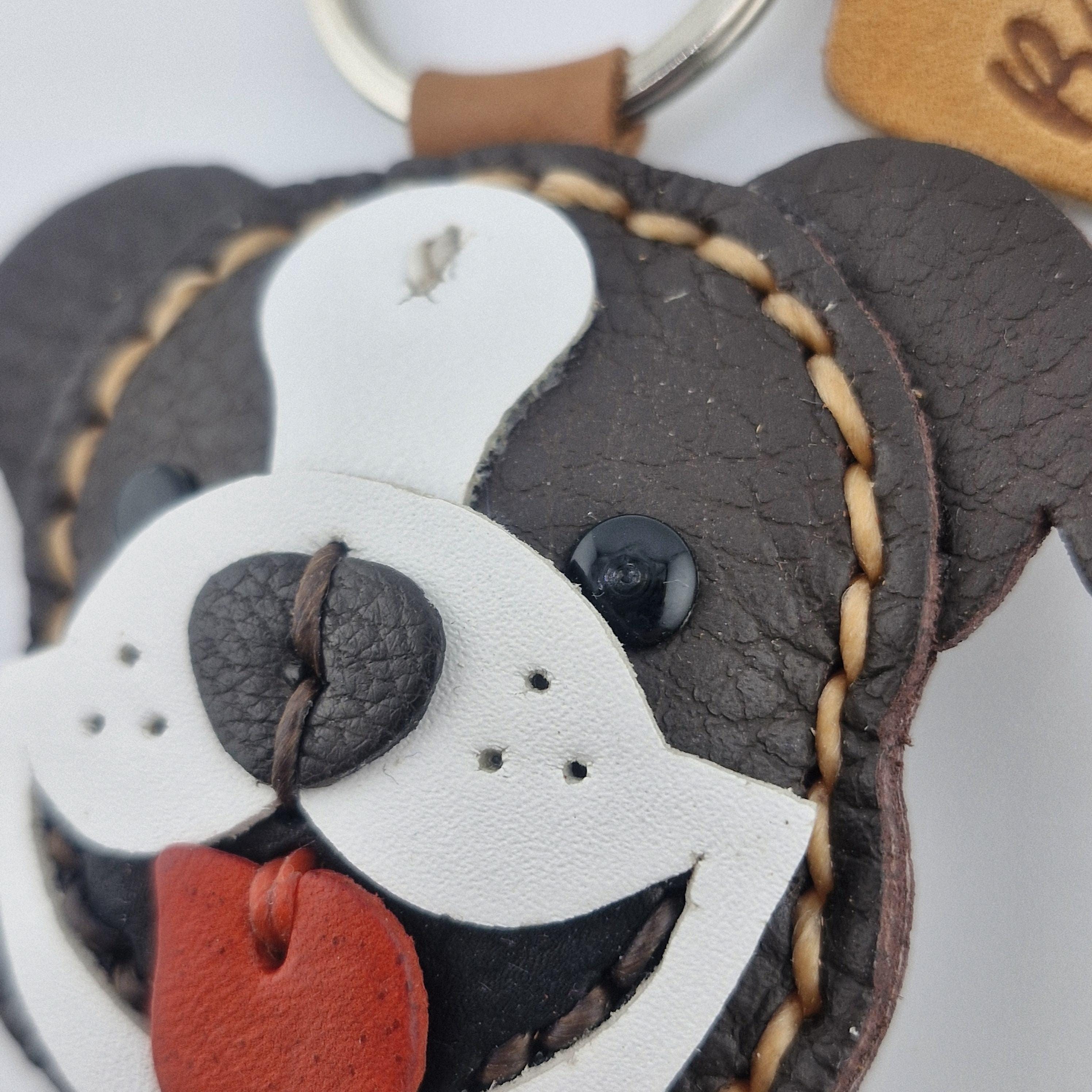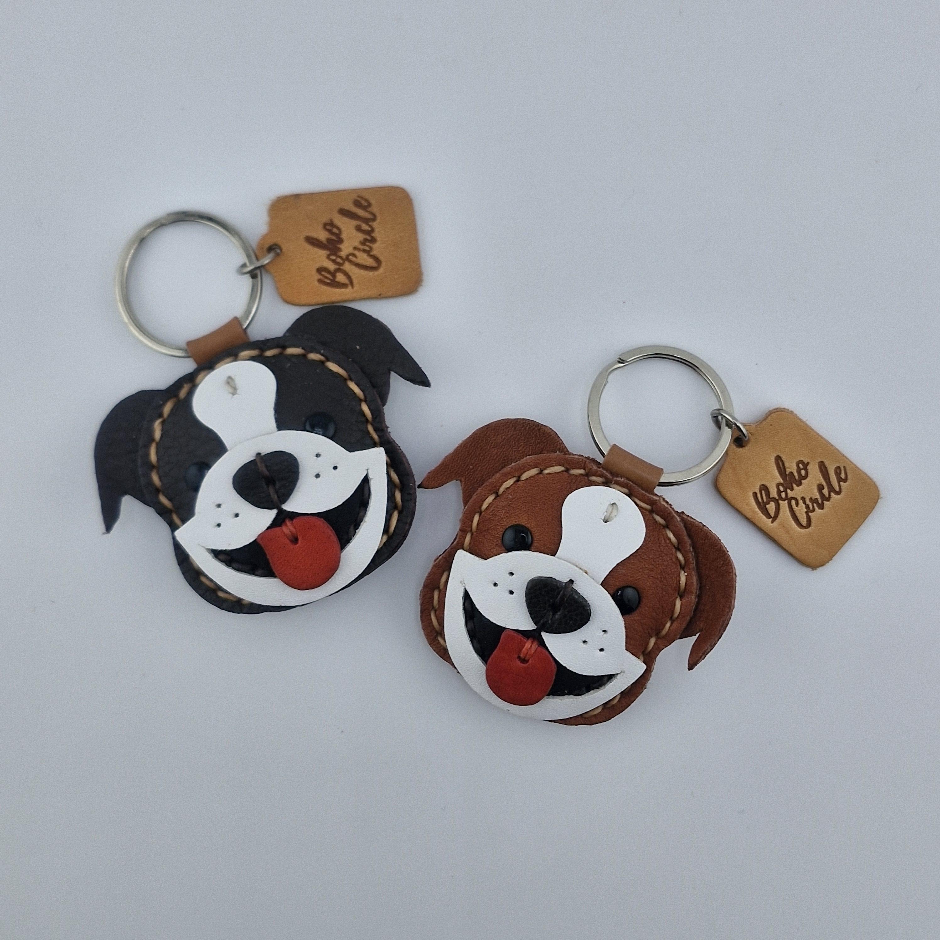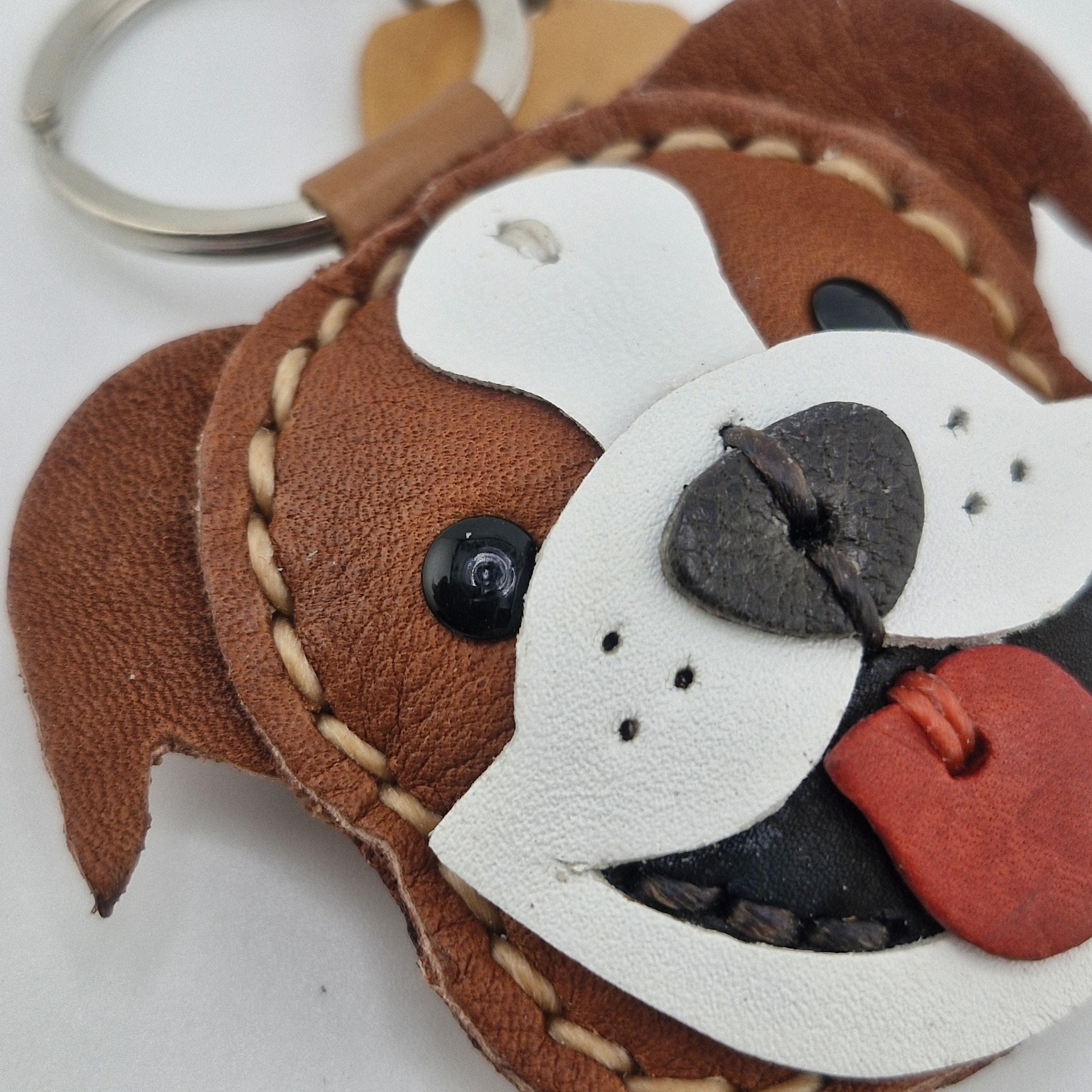Carry a smile with you everywhere you go with this charming leather Bulldog!