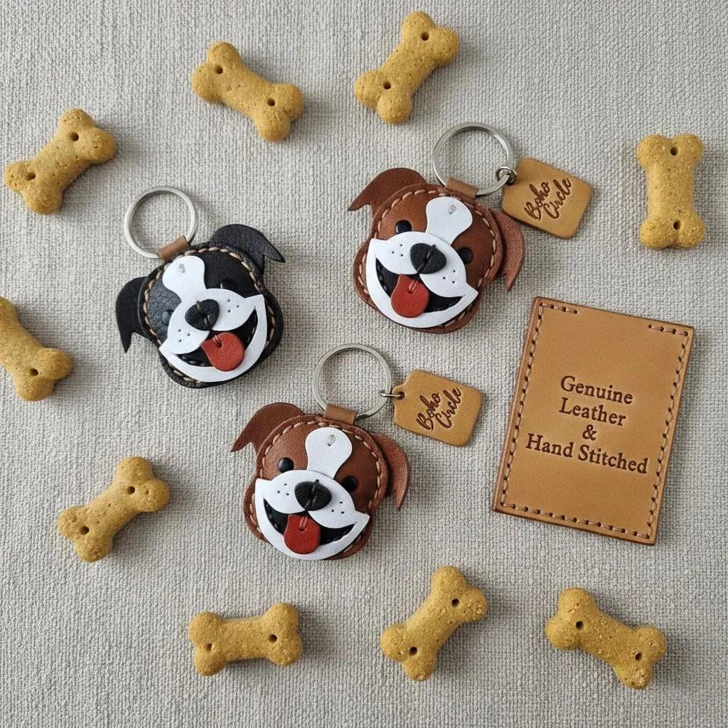 Premium Quality Leather: Crafted from genuine leather in rich brown, white, and dark tones, capturing the sweet, wrinkly charm of the Bulldog breed.