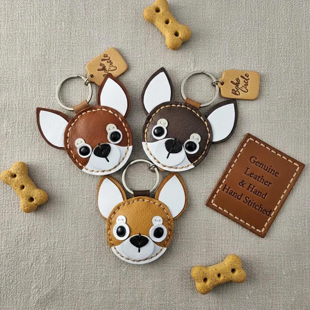Celebrate the tiny dog with a huge personality! This adorable, handmade leather keychain perfectly captures the distinctive look of the Chihuahua, featuring those iconic big ears and confident expression.