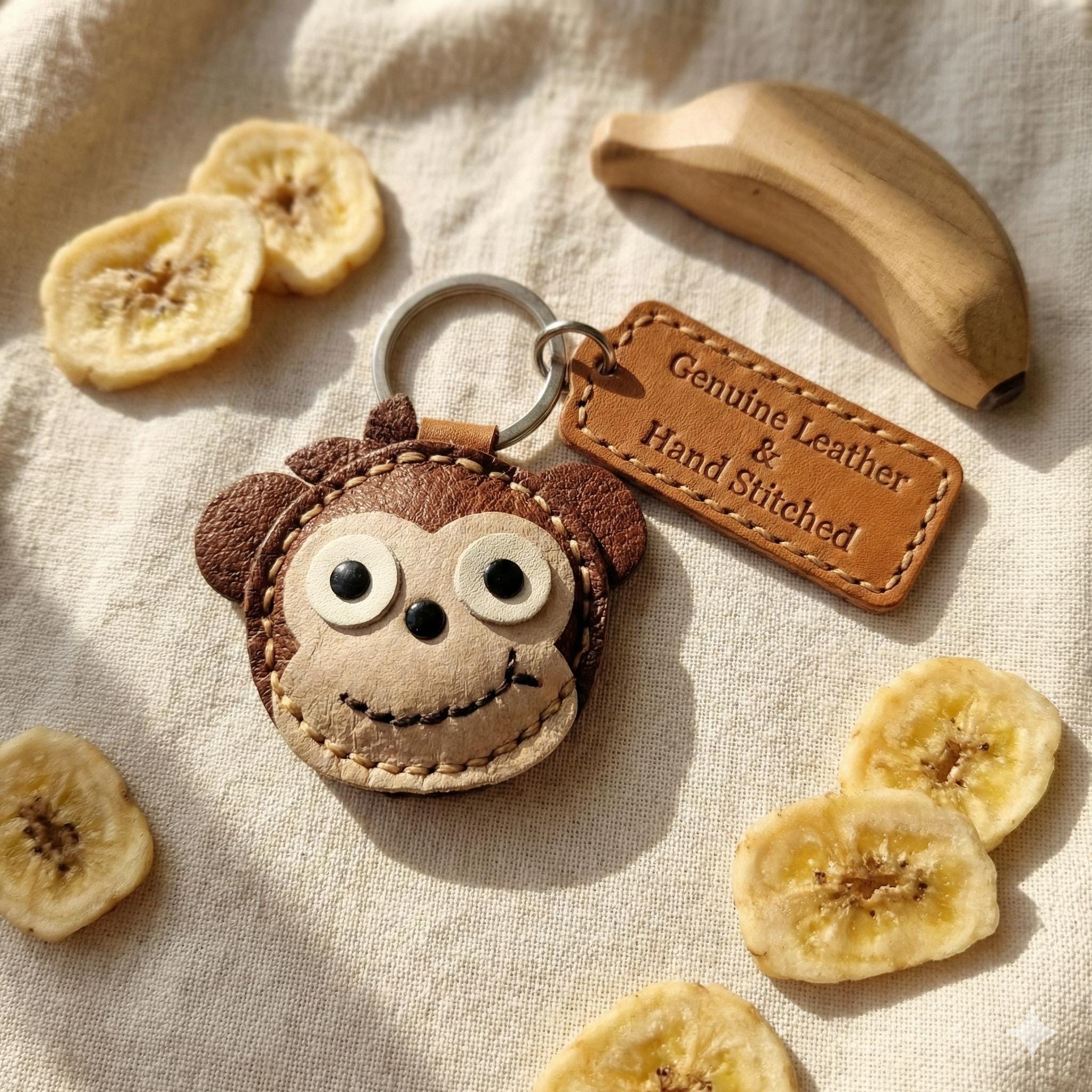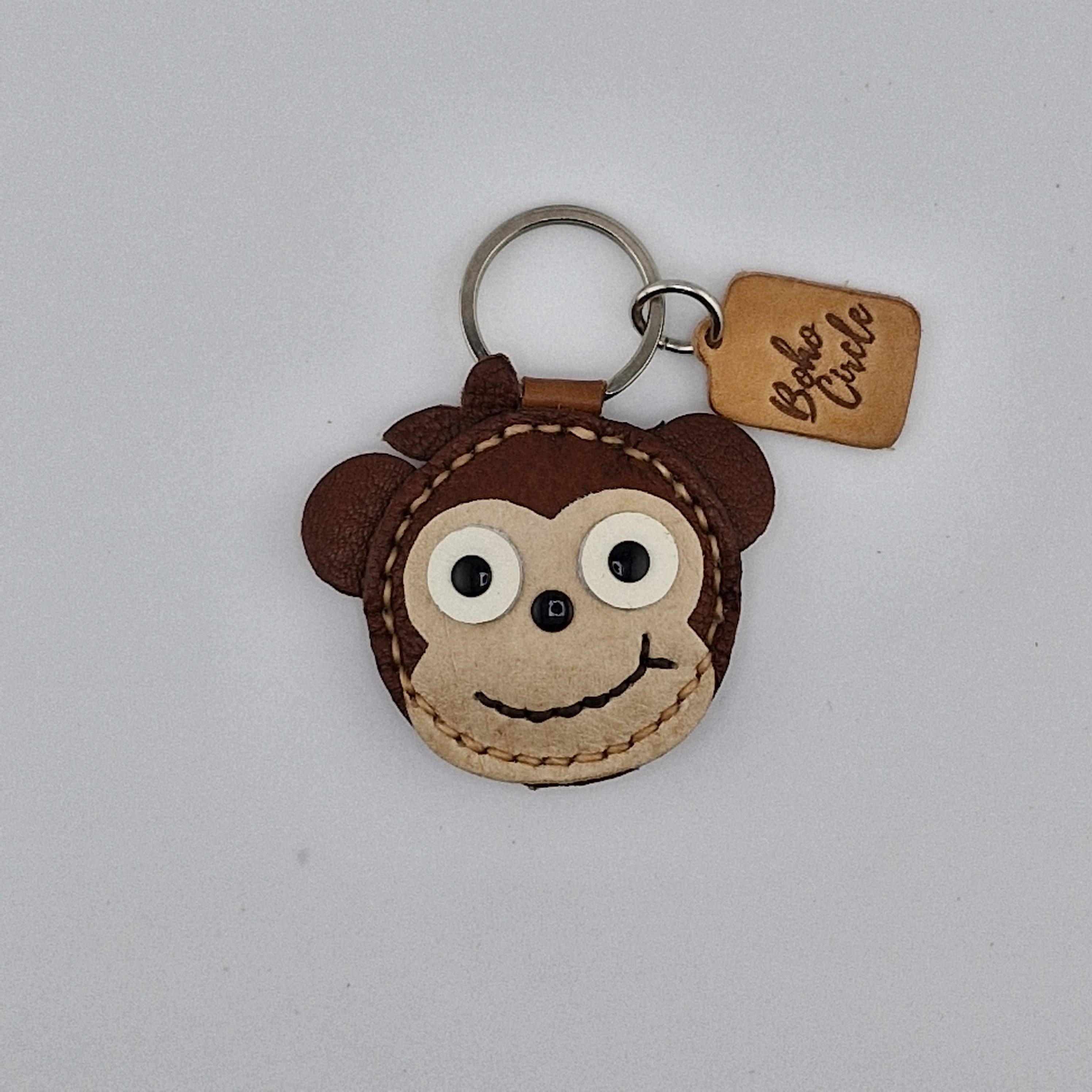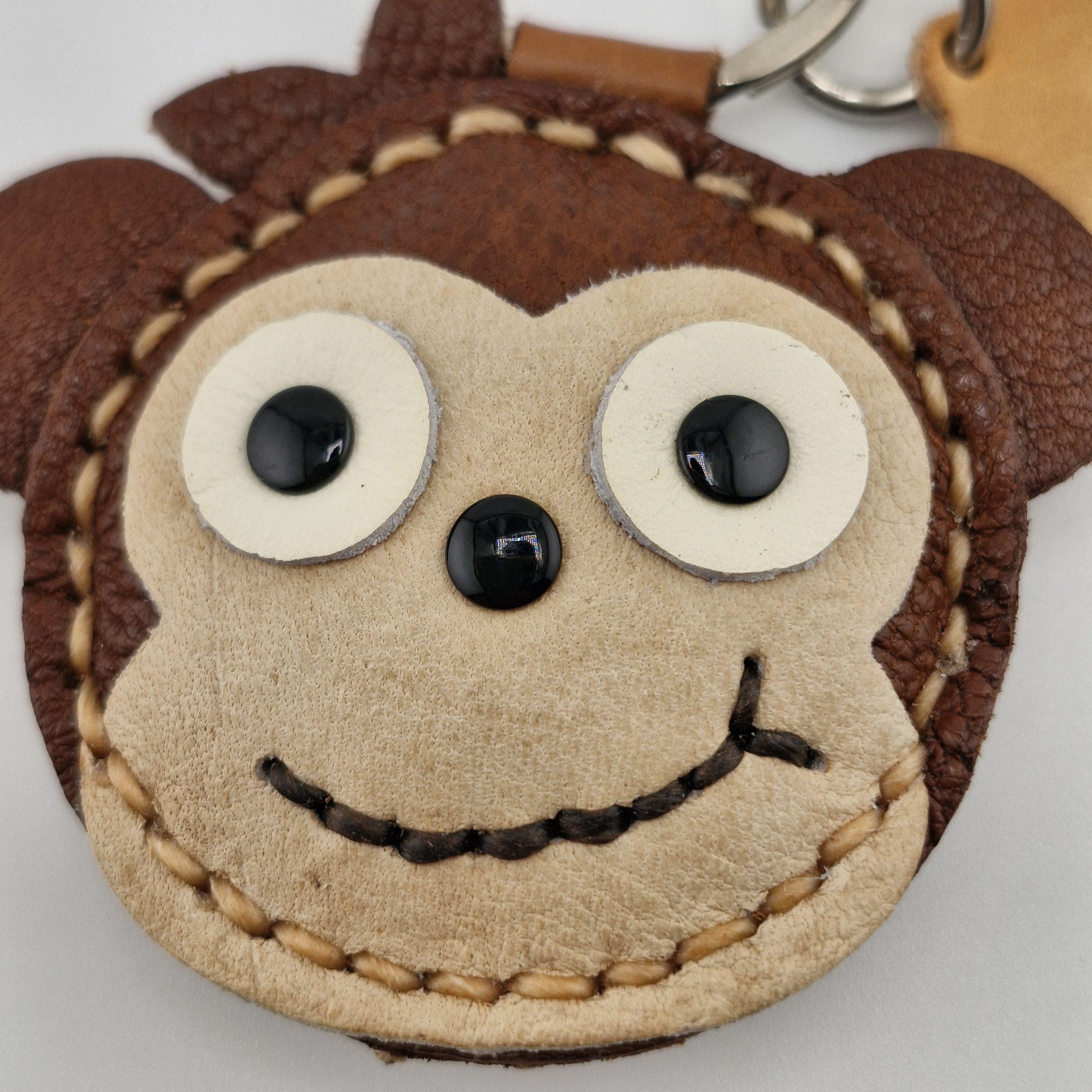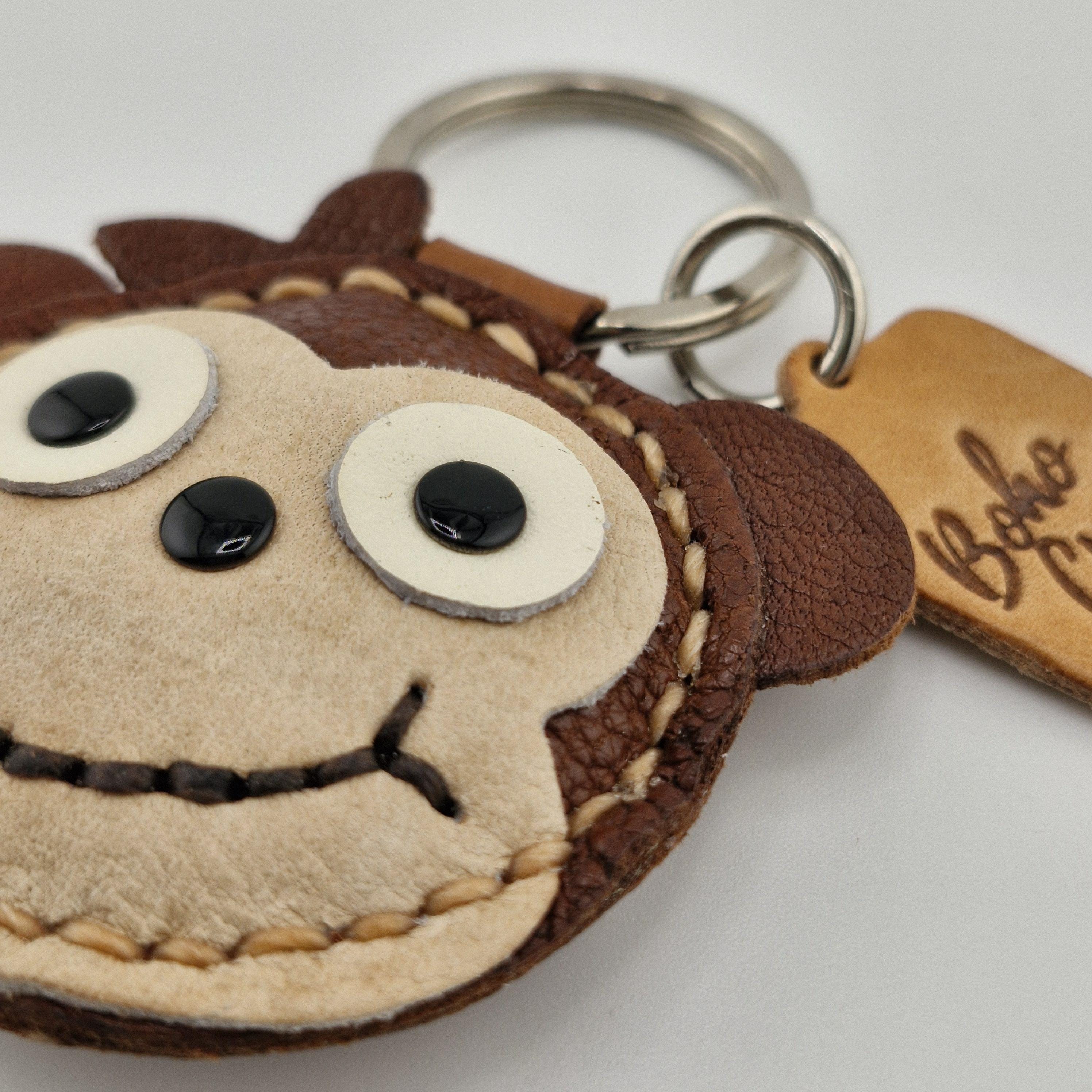 Add a playful and adventurous touch to your keys or bag with this adorable, handmade leather monkey keychain! This charming accessory features a happy, stitched smile and big, expressive eyes, perfect for jungle lovers and those young at heart.