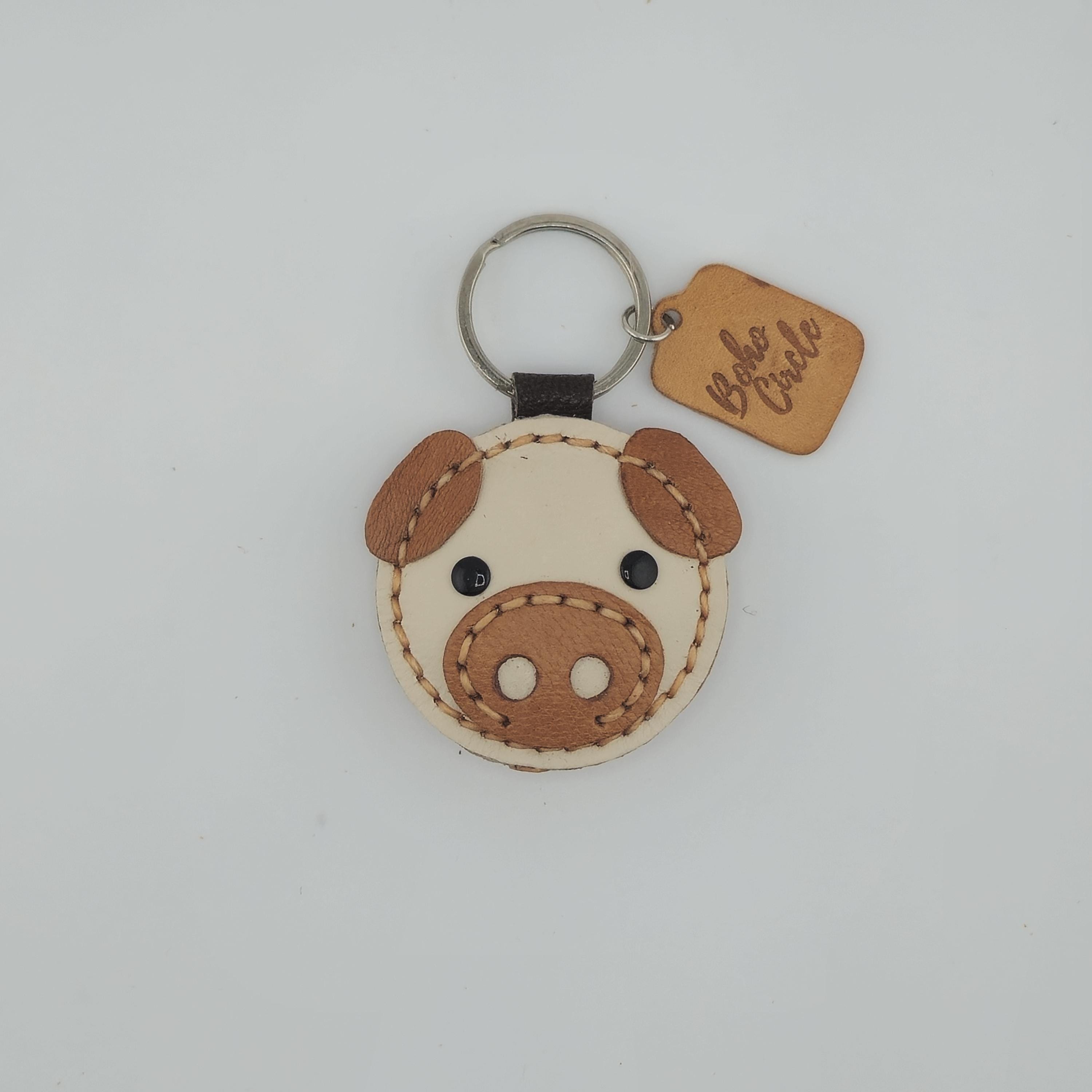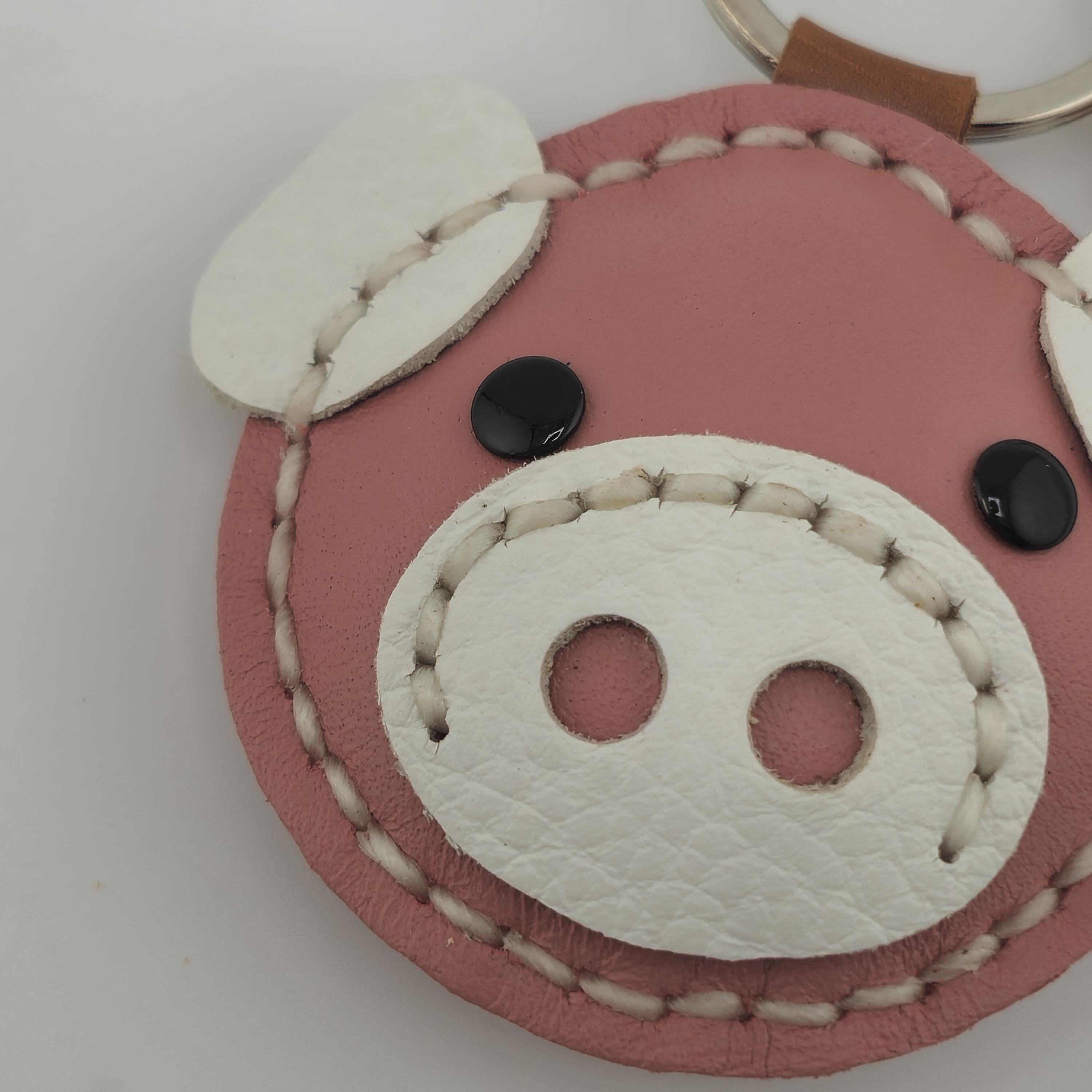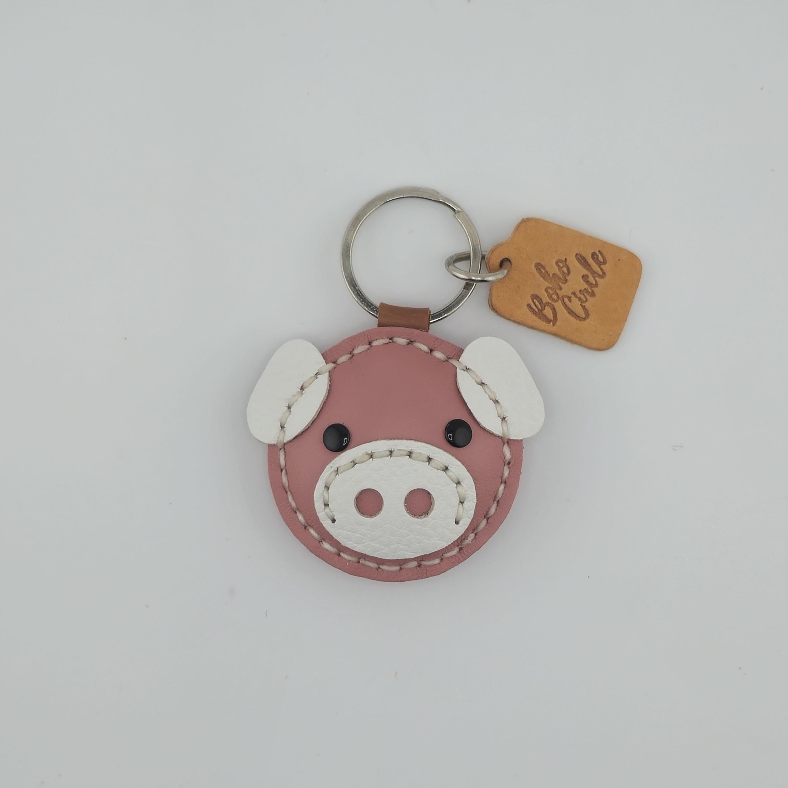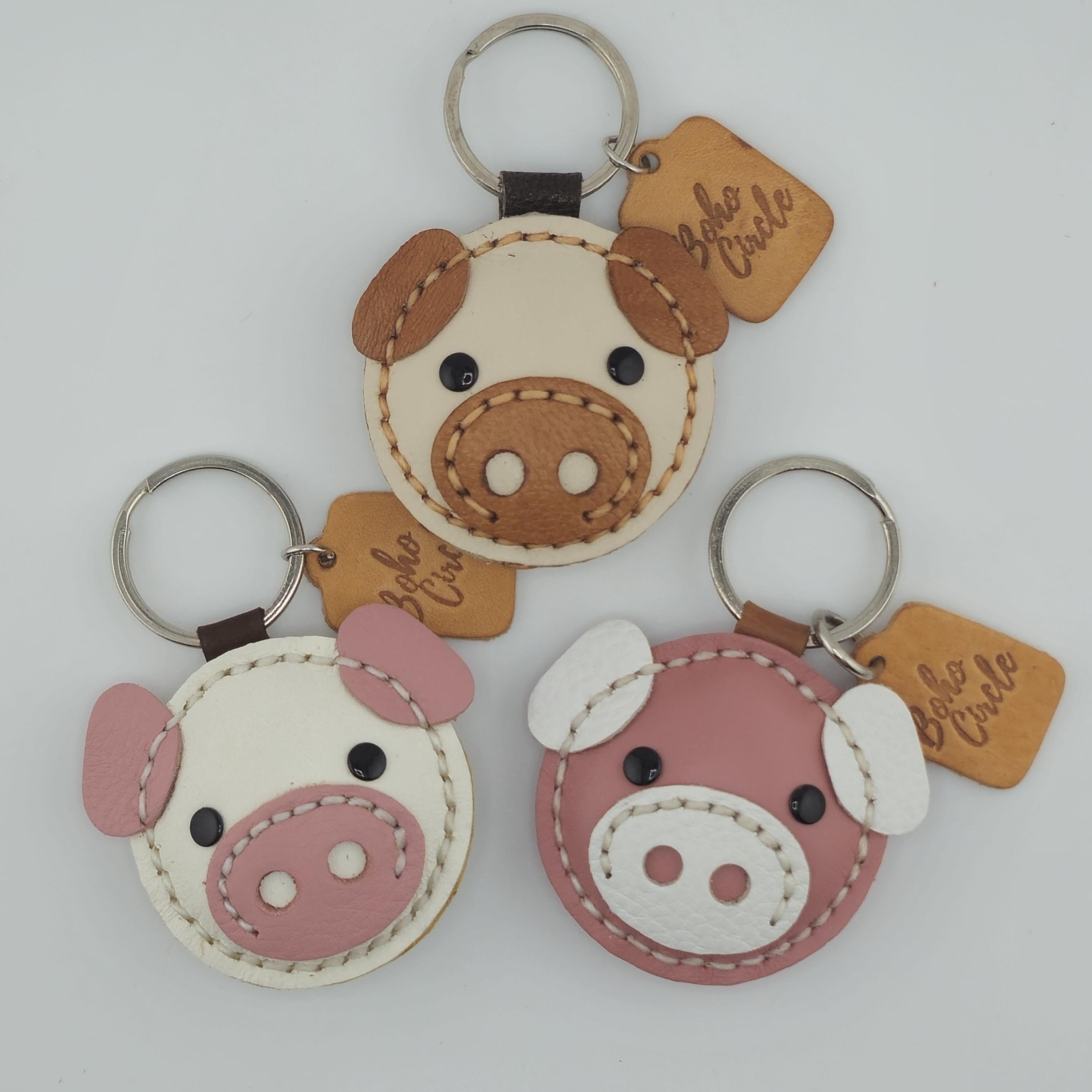 Bring some charm and luck to your keys with this irresistible, handmade leather pig keychain! This cheerful accessory features the cute, rotund face and distinctive snout of a piglet, perfect for farm enthusiasts and animal lovers alike.