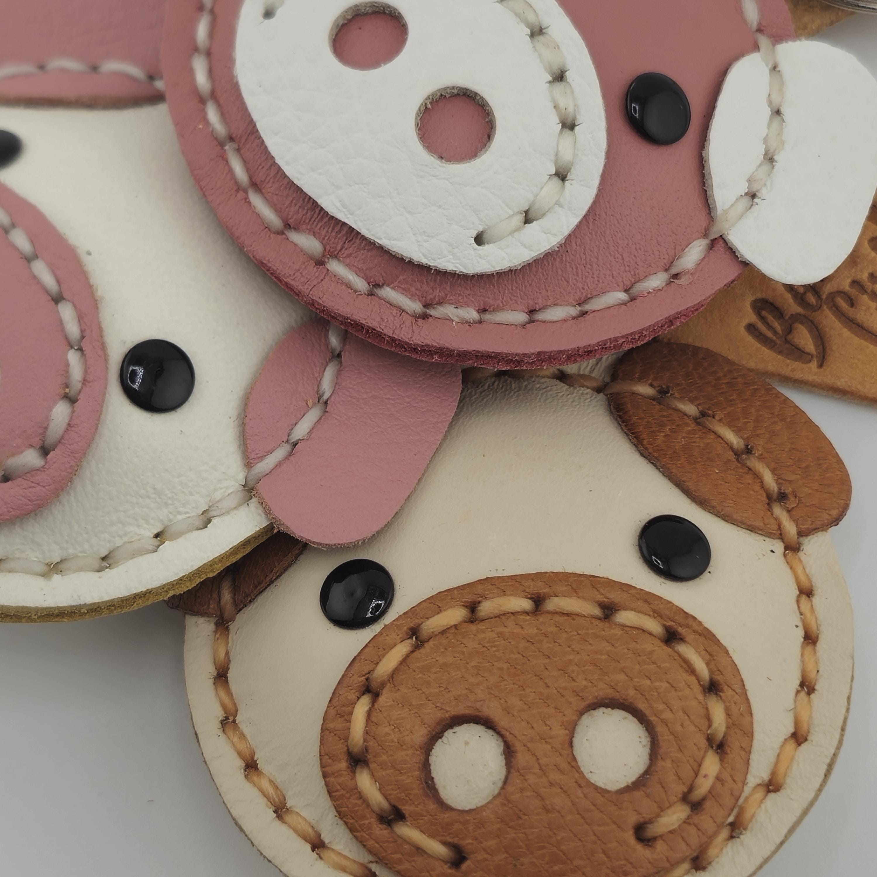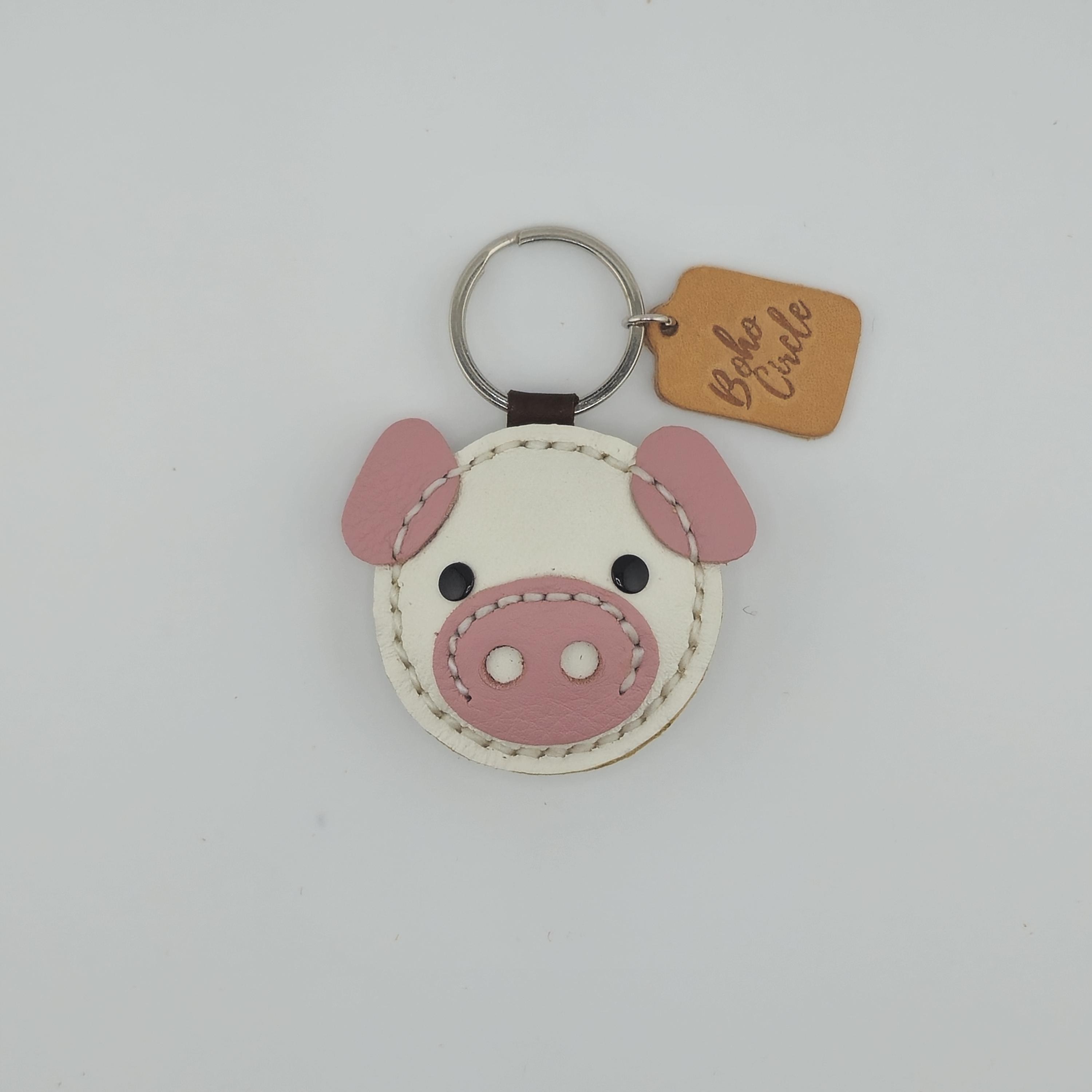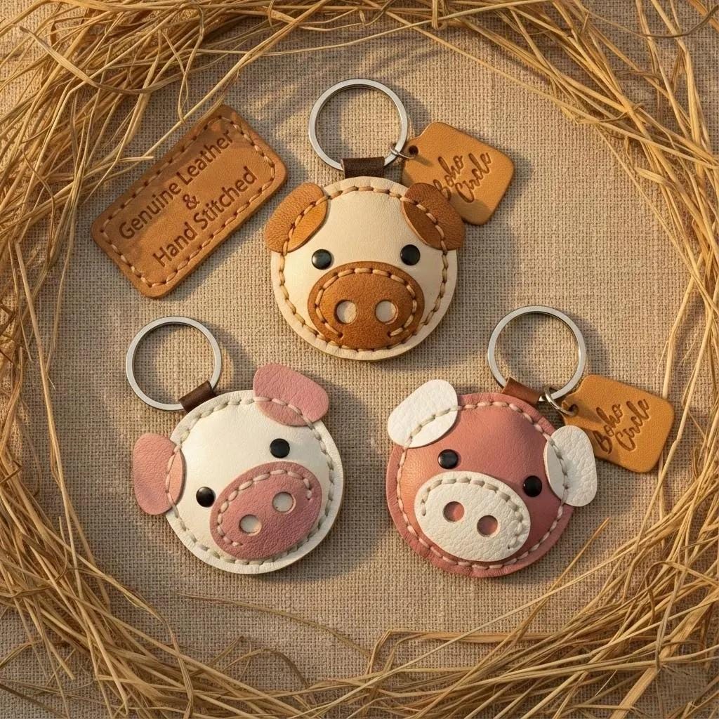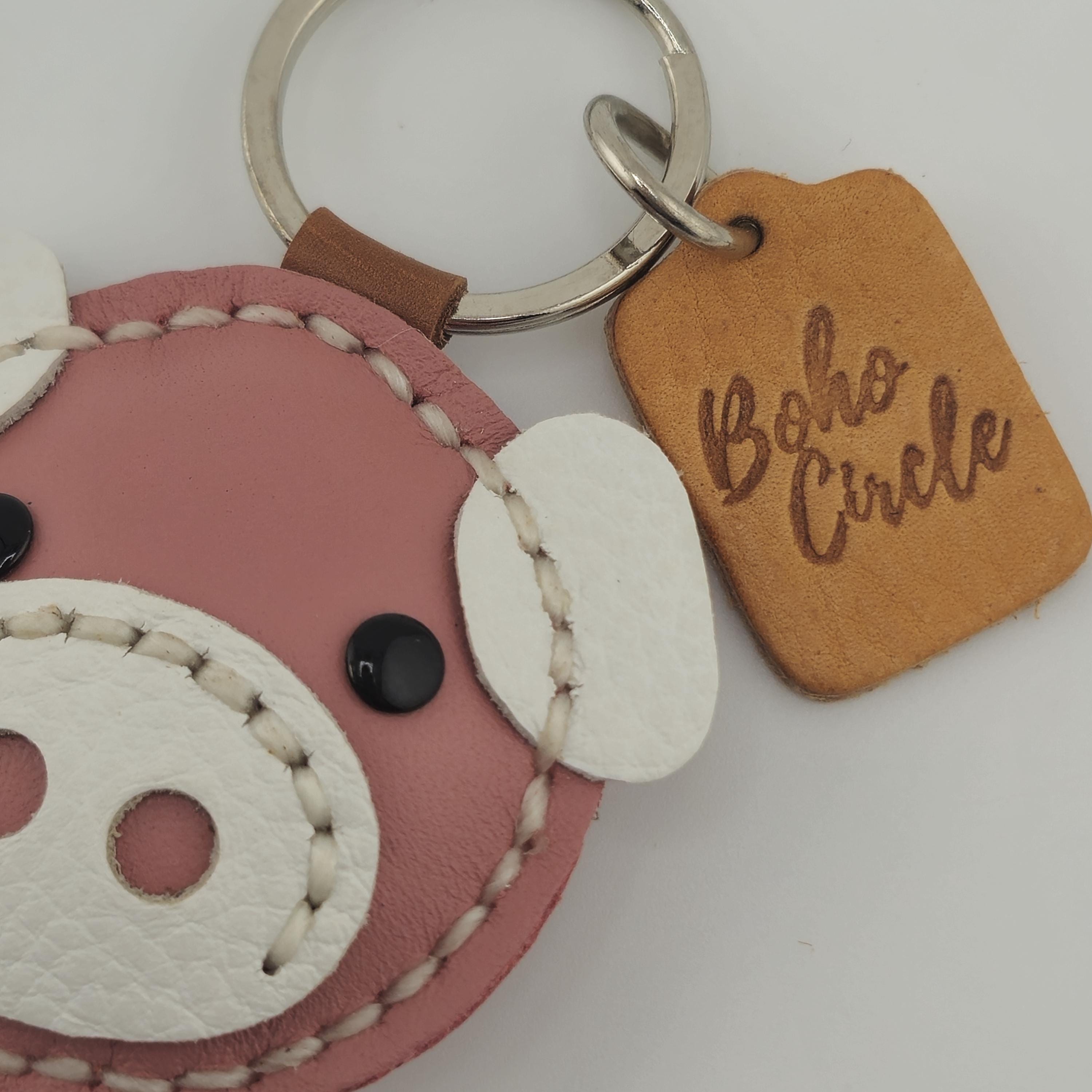 Bring some charm and luck to your keys with this irresistible, handmade leather pig keychain! This cheerful accessory features the cute, rotund face and distinctive snout of a piglet, perfect for farm enthusiasts and animal lovers alike.