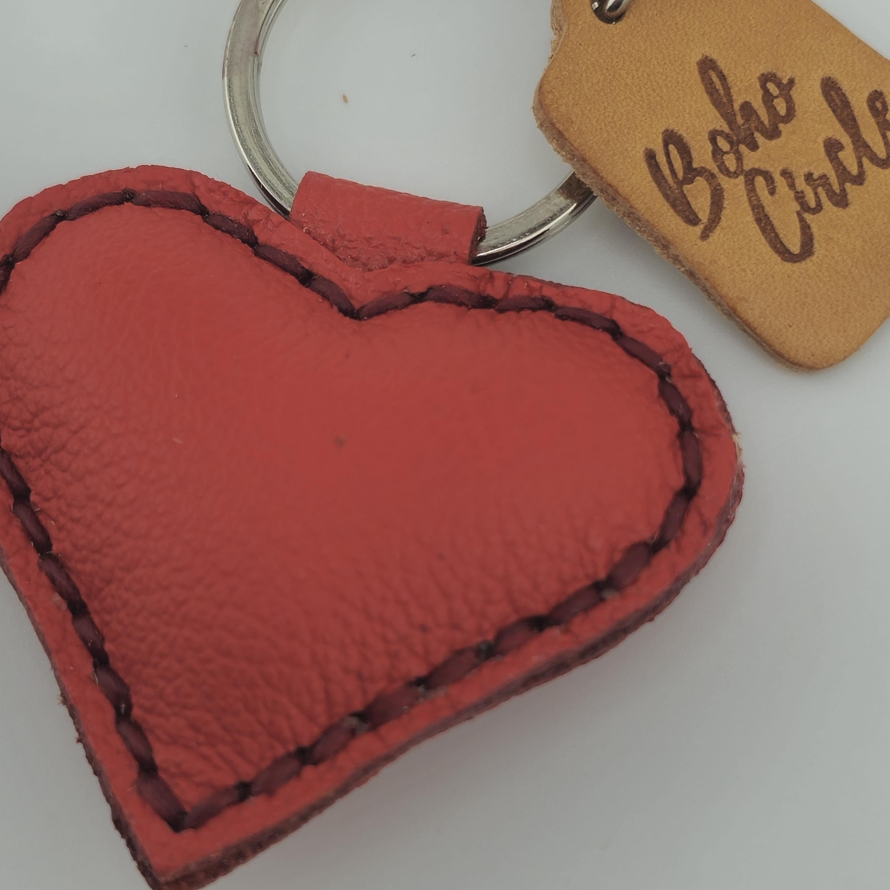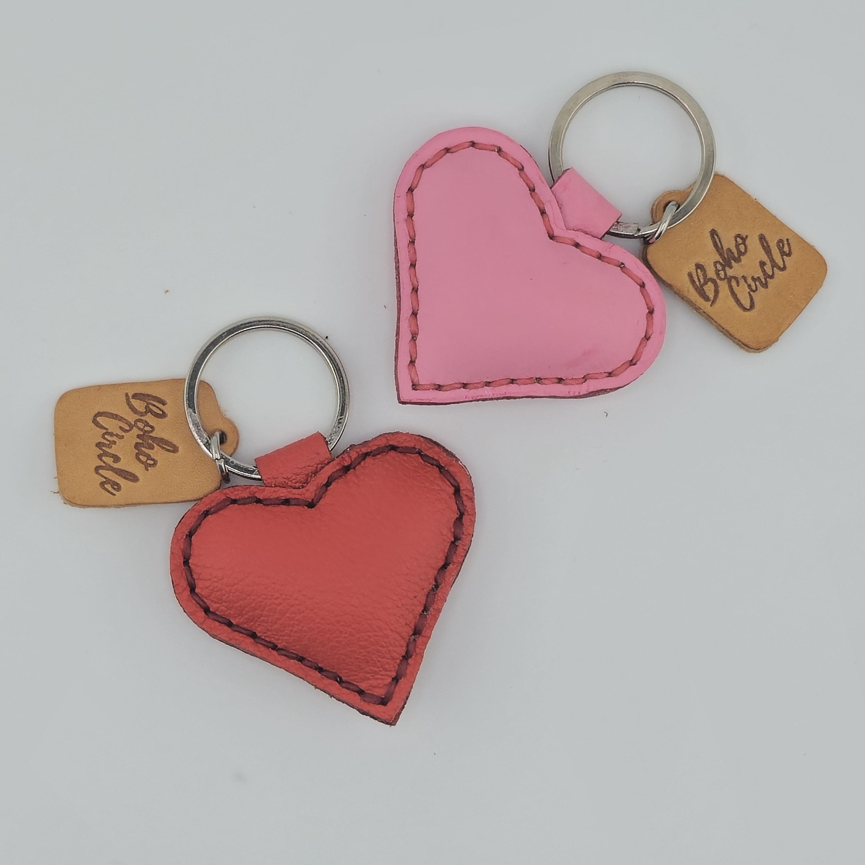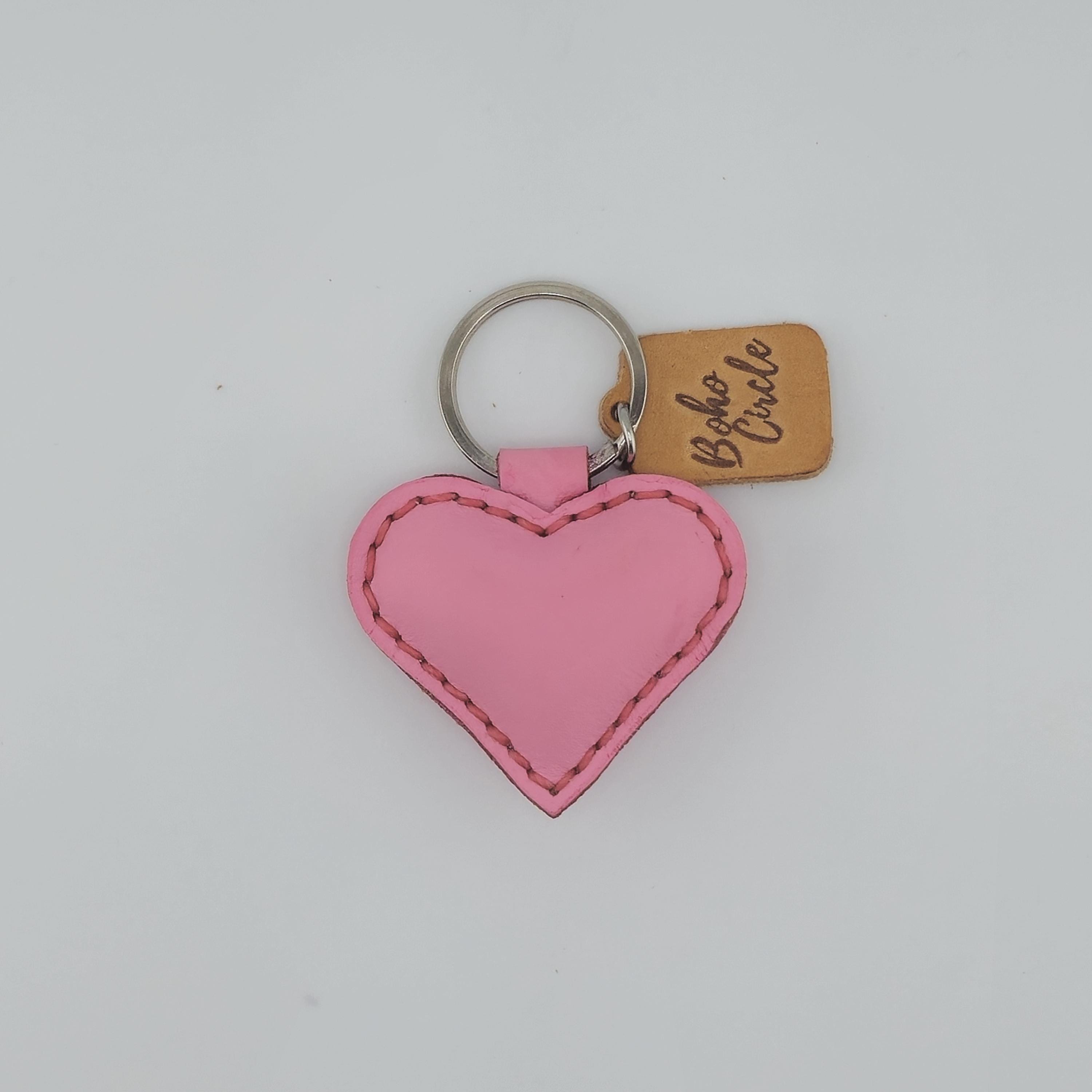 Show your love with this classic, beautifully handmade leather heart keychain. Featuring thick, decorative stitching and a satisfyingly plump feel, this accessory is the perfect symbol of affection, available in romantic Red and sweet Pink.