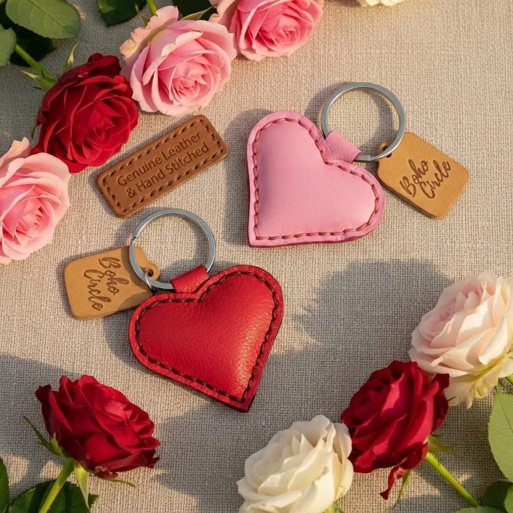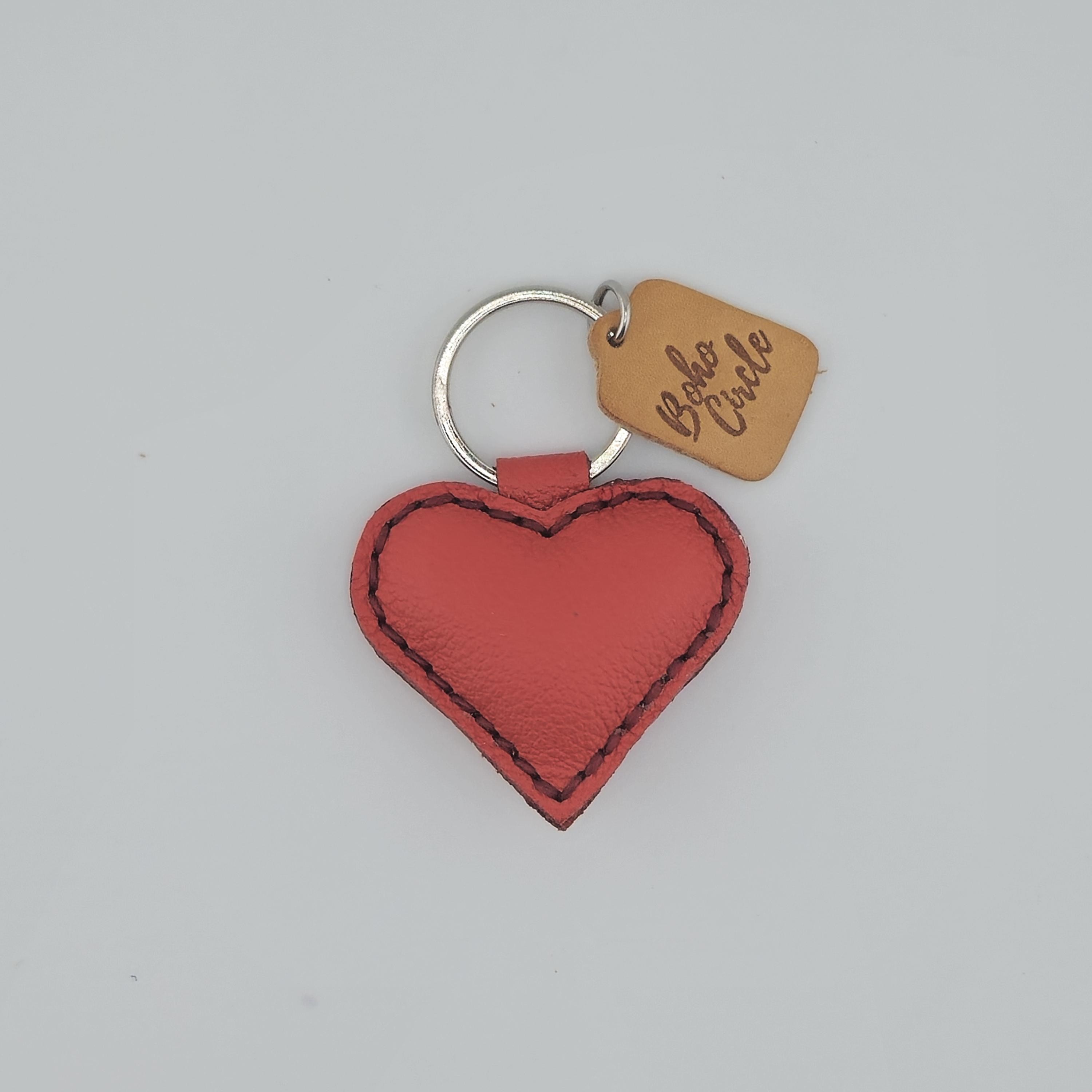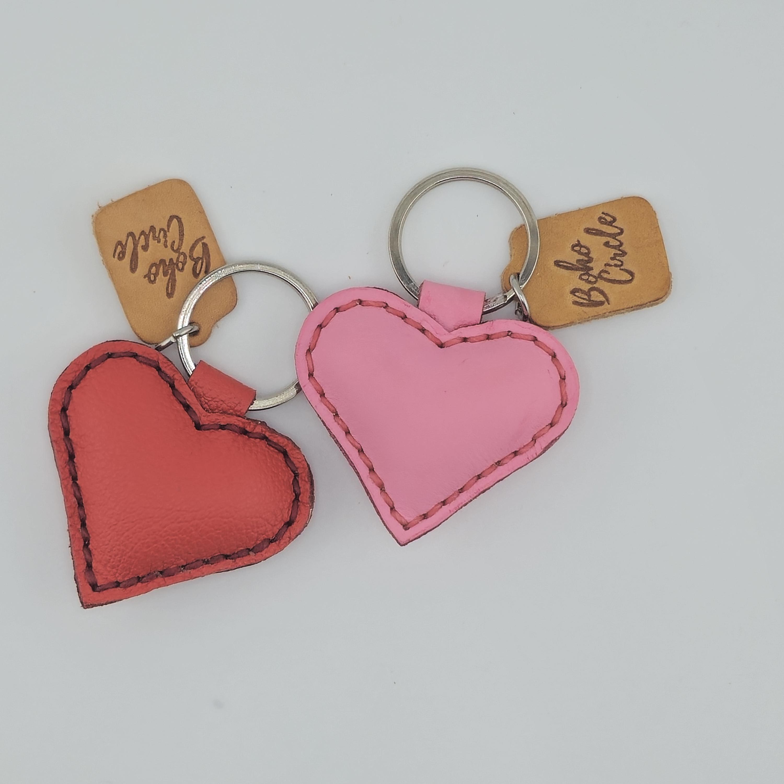 Show your love with this classic, beautifully handmade leather heart keychain. Featuring thick, decorative stitching and a satisfyingly plump feel, this accessory is the perfect symbol of affection, available in romantic Red and sweet Pink.