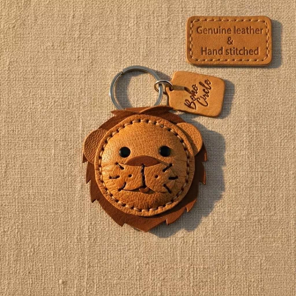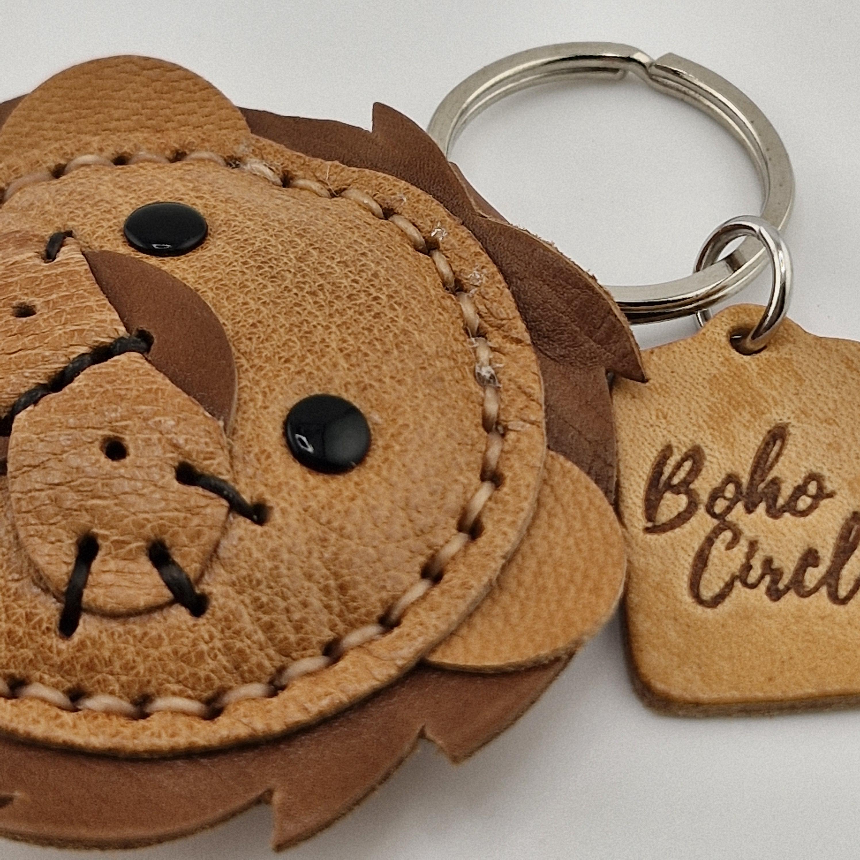 Unleash your inner strength with this striking, handmade leather lion keychain! This powerful accessory perfectly captures the regal look of the king of the jungle, complete with a dramatic, layered mane.