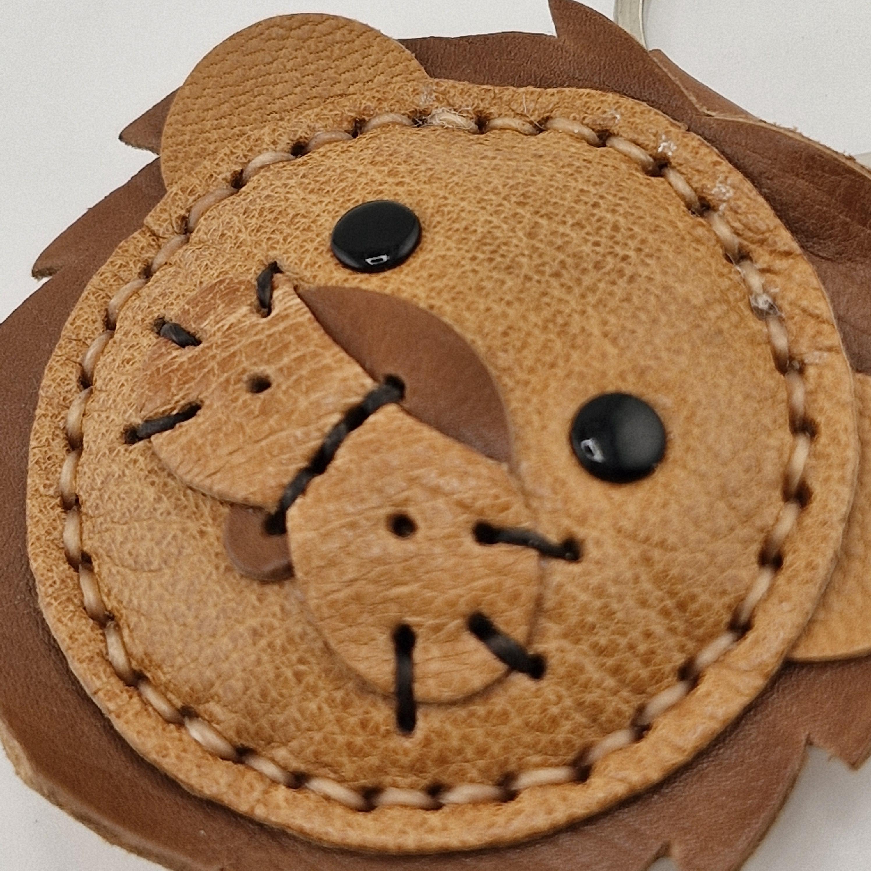 Majestic Lion Design: Features a rich, layered mane crafted from fringed leather, surrounding a friendly face with stitched whiskers and a proud expression.