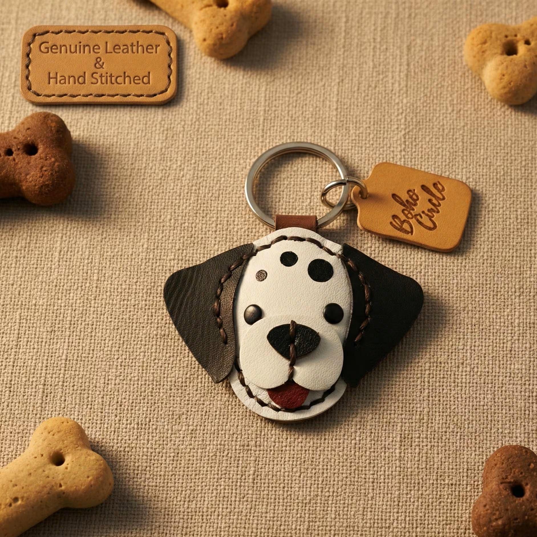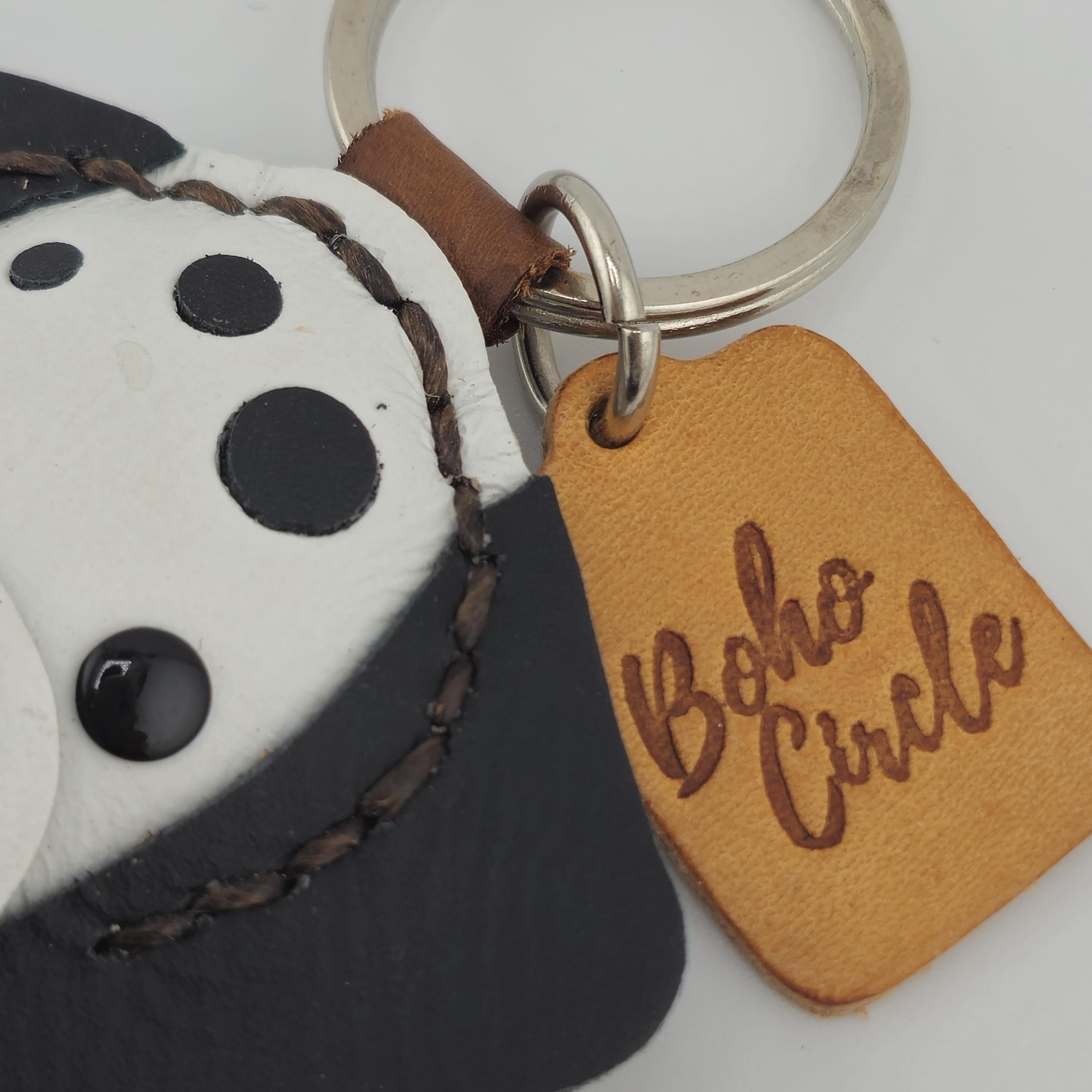 Carry a smile with you everywhere you go with this charming leather Dalmatian!