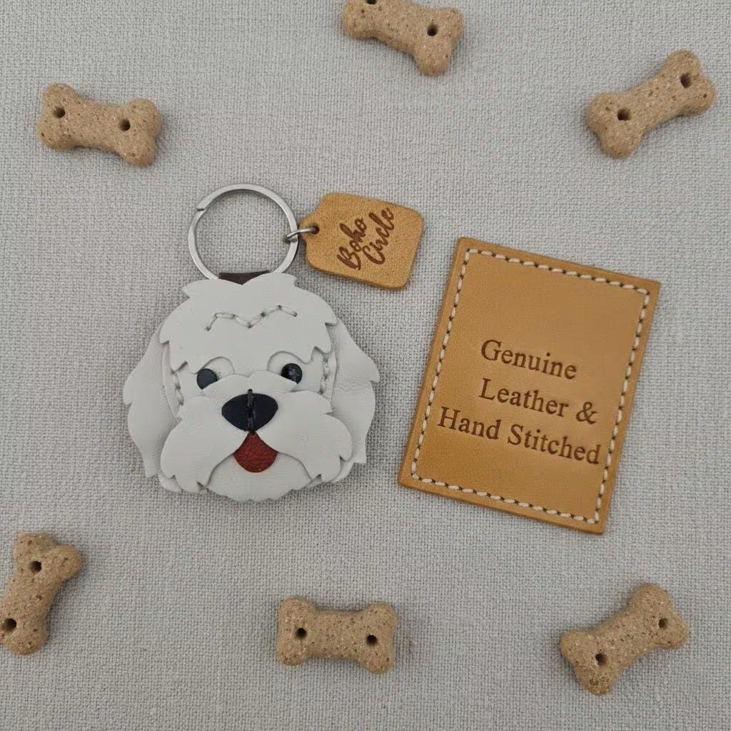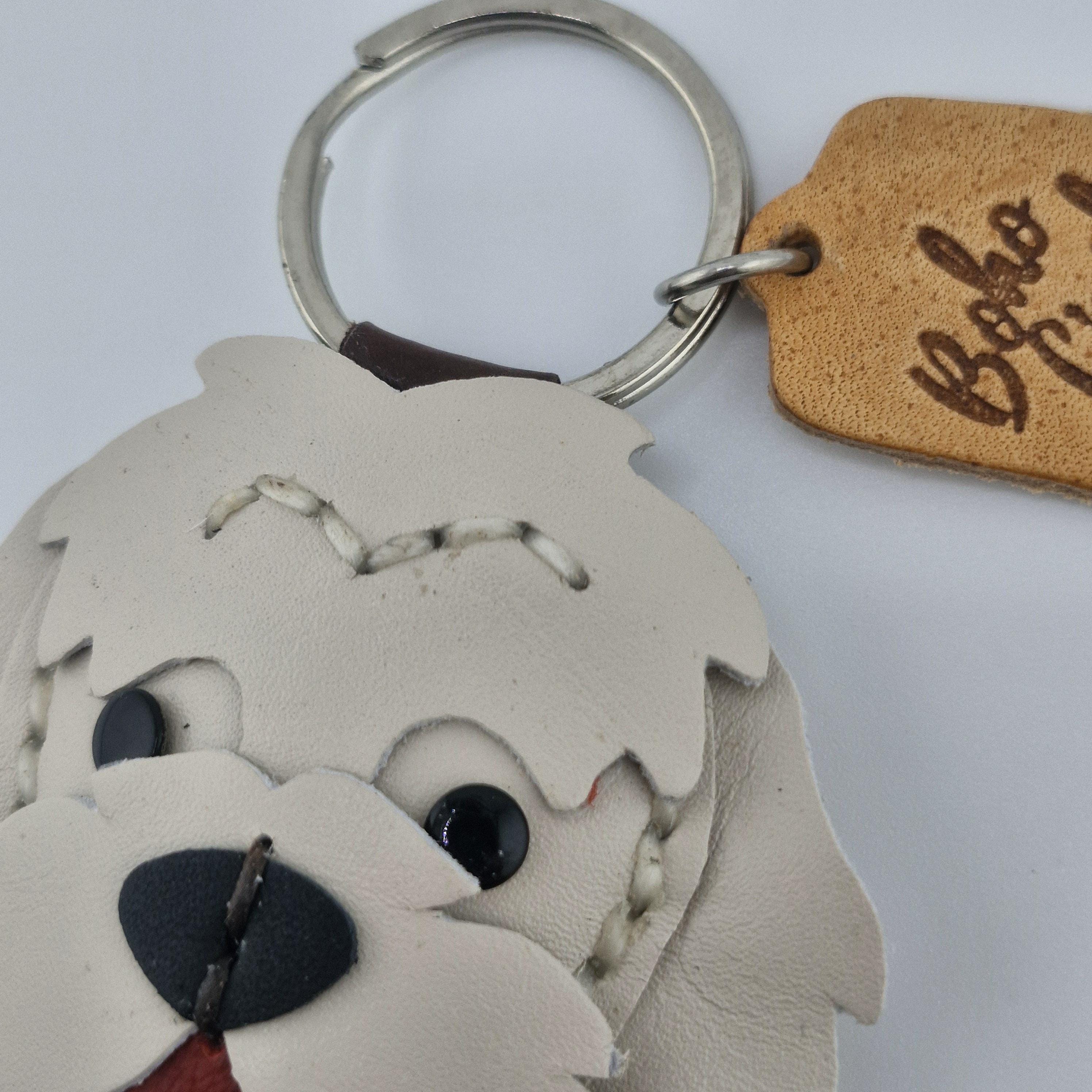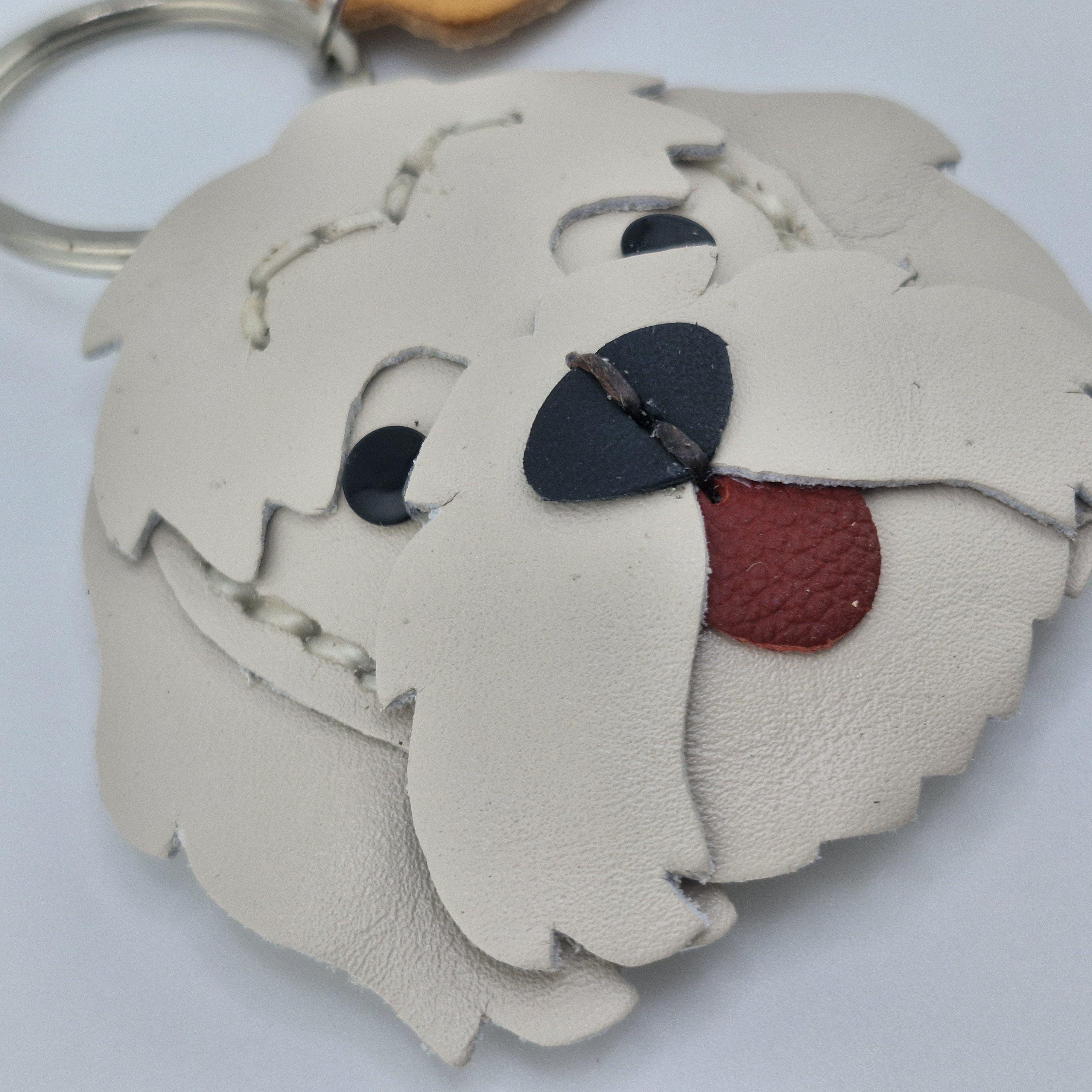 Premium Quality Leather: Crafted from genuine, layered leather in crisp white and light gray tones, designed to capture the sweet, scruffy charm and distinctive fur of the Westie breed.