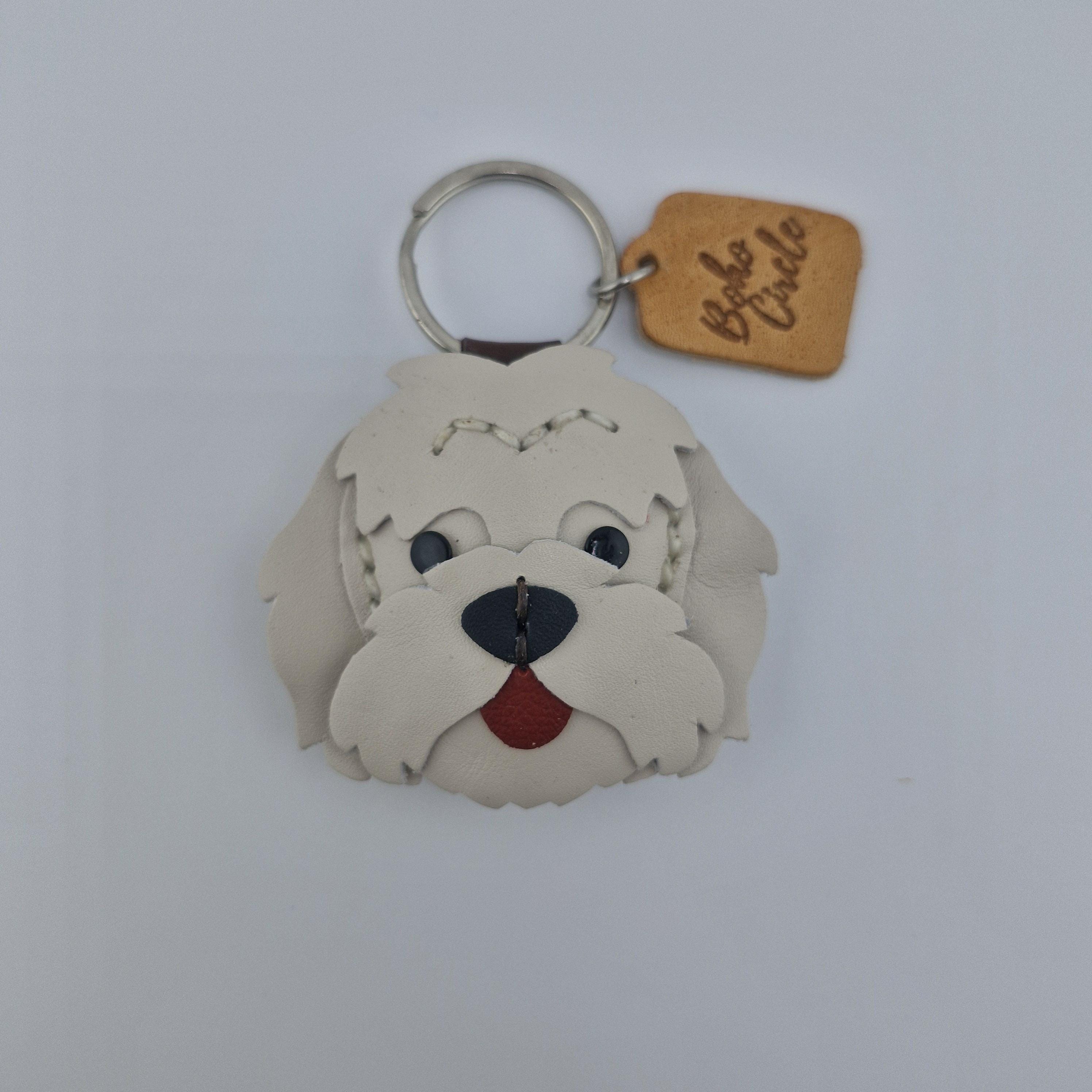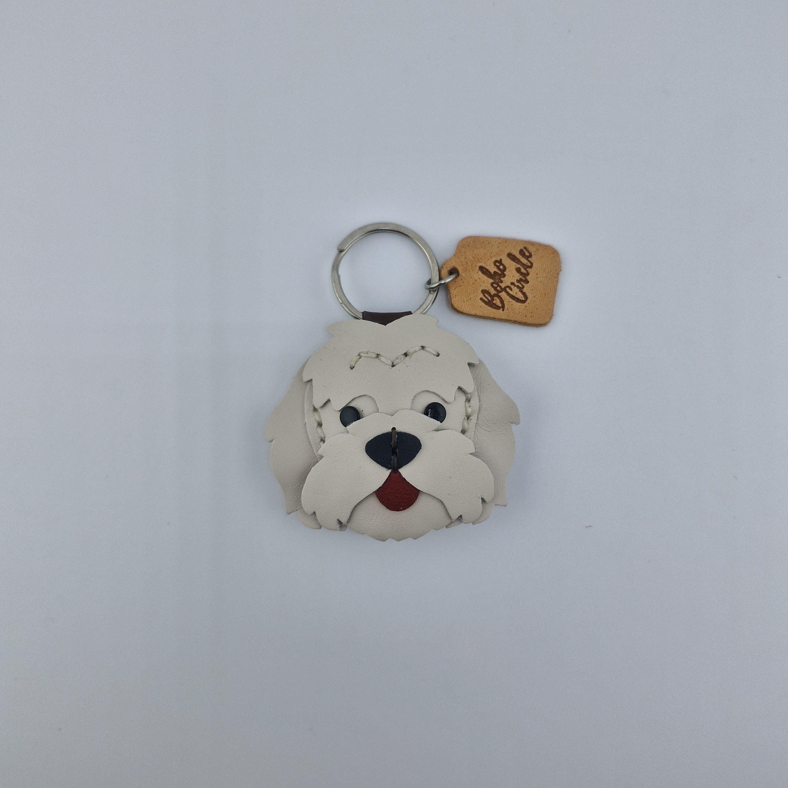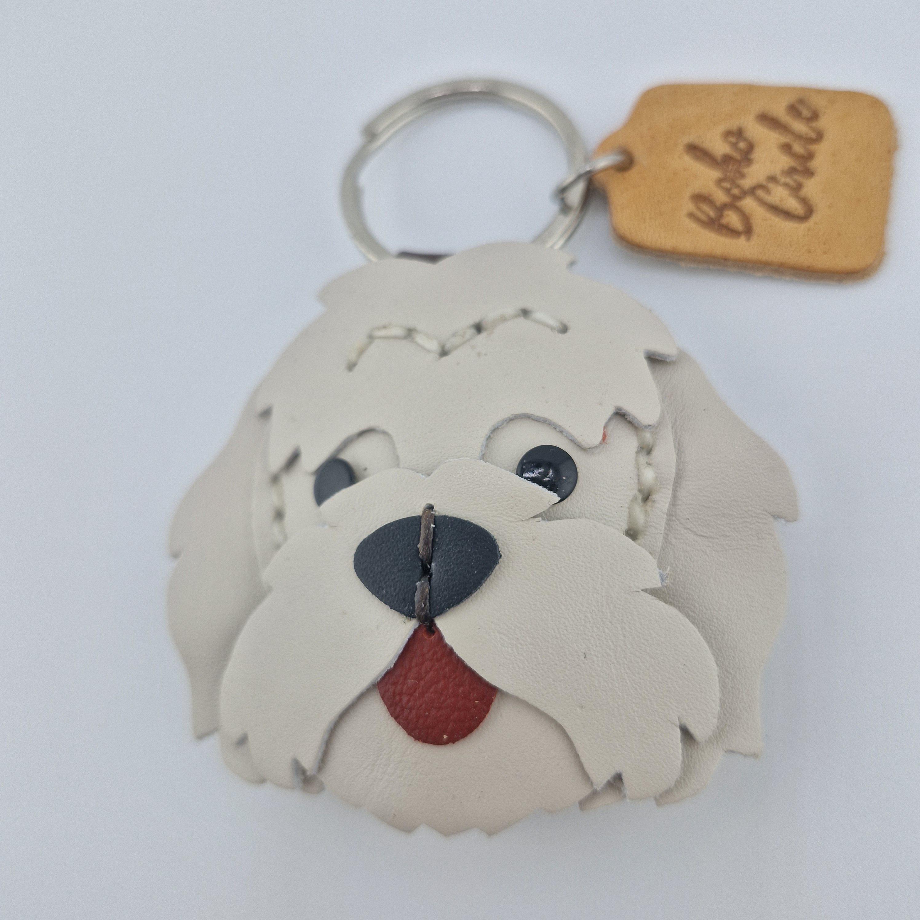 Premium Quality Leather: Crafted from genuine, layered leather in crisp white and light gray tones, designed to capture the sweet, scruffy charm and distinctive fur of the Westie breed.