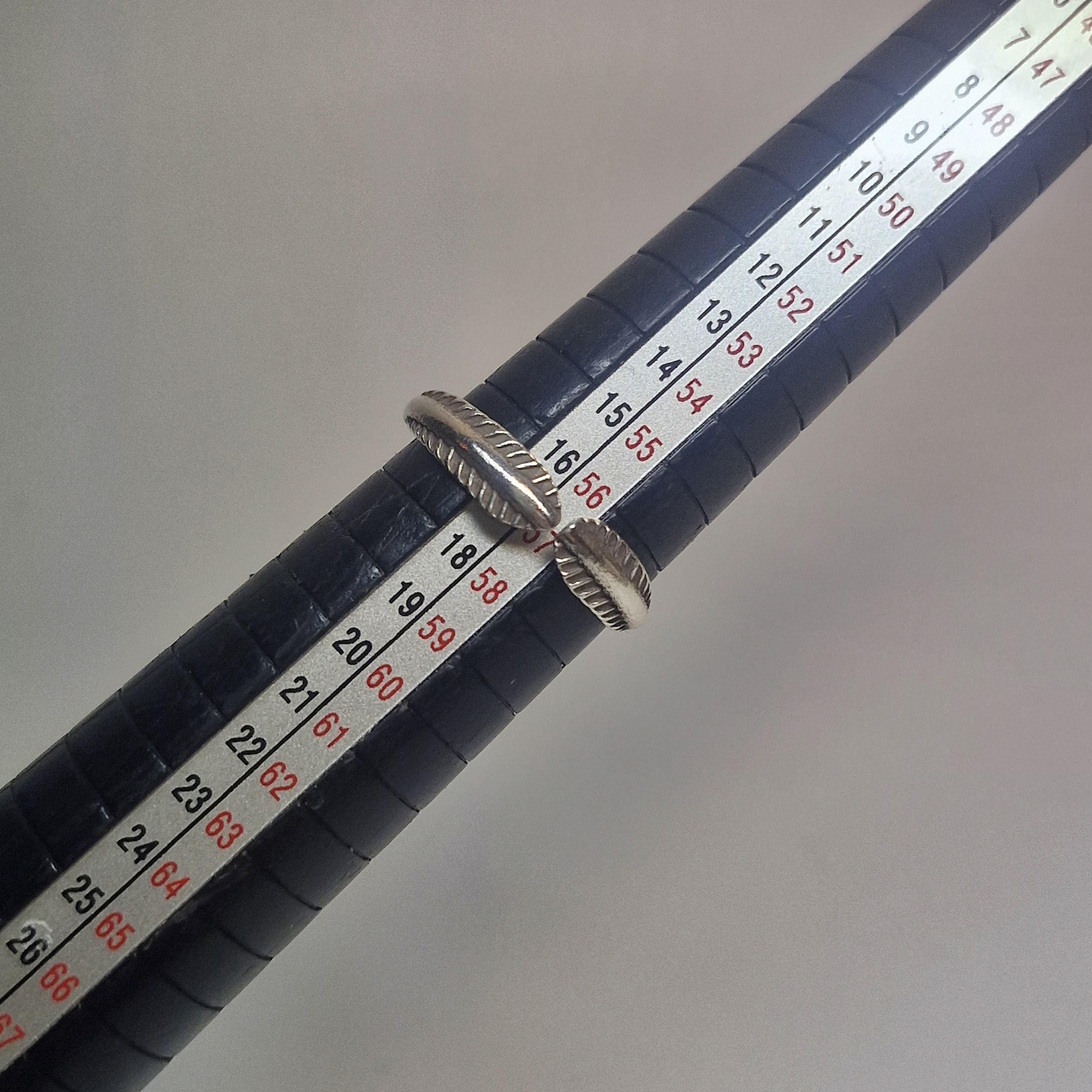 Not sure of your size? Wrap a piece of string snugly around your finger, mark the overlap, and measure the length in millimeters. Send me that measurement, and I’ll handle the rest!