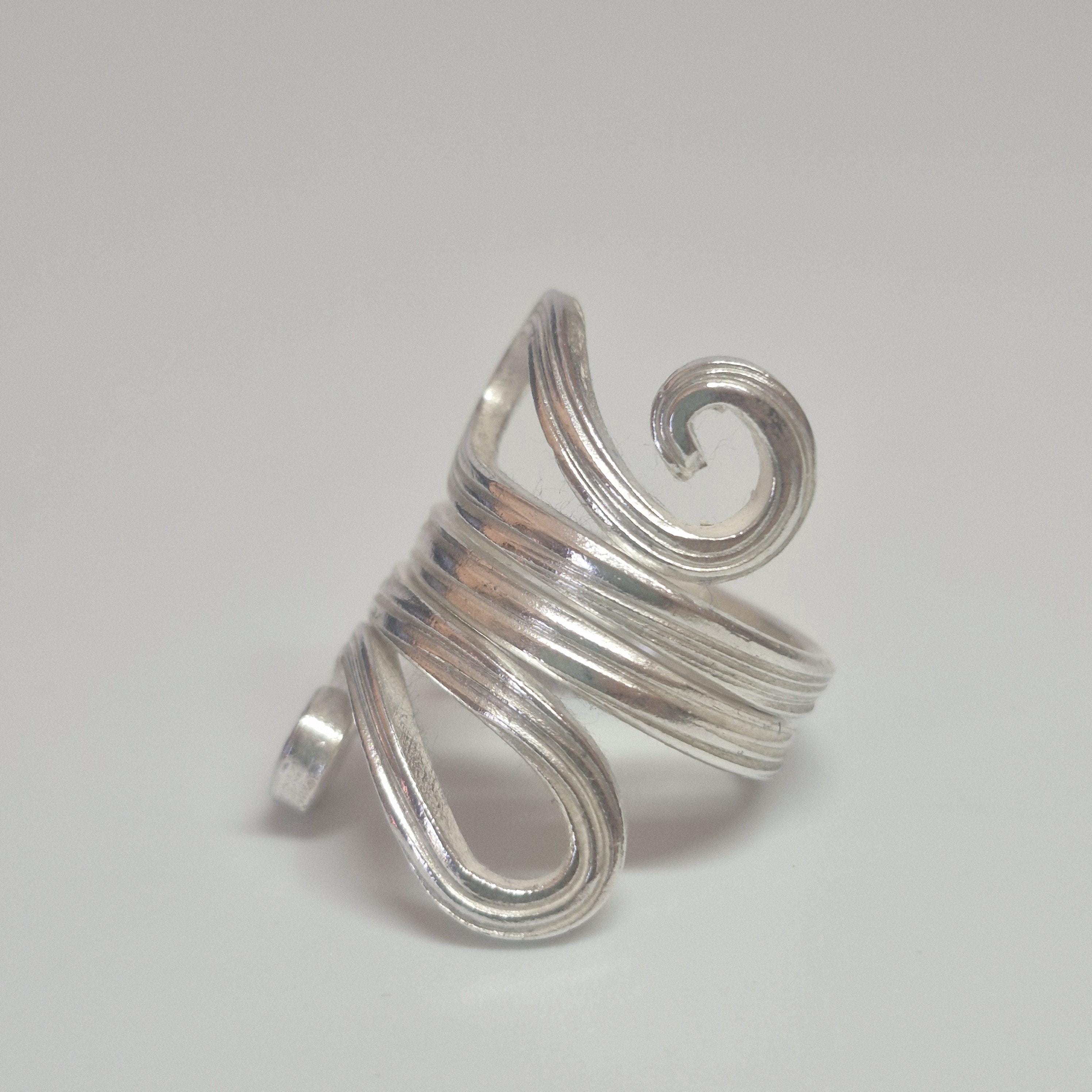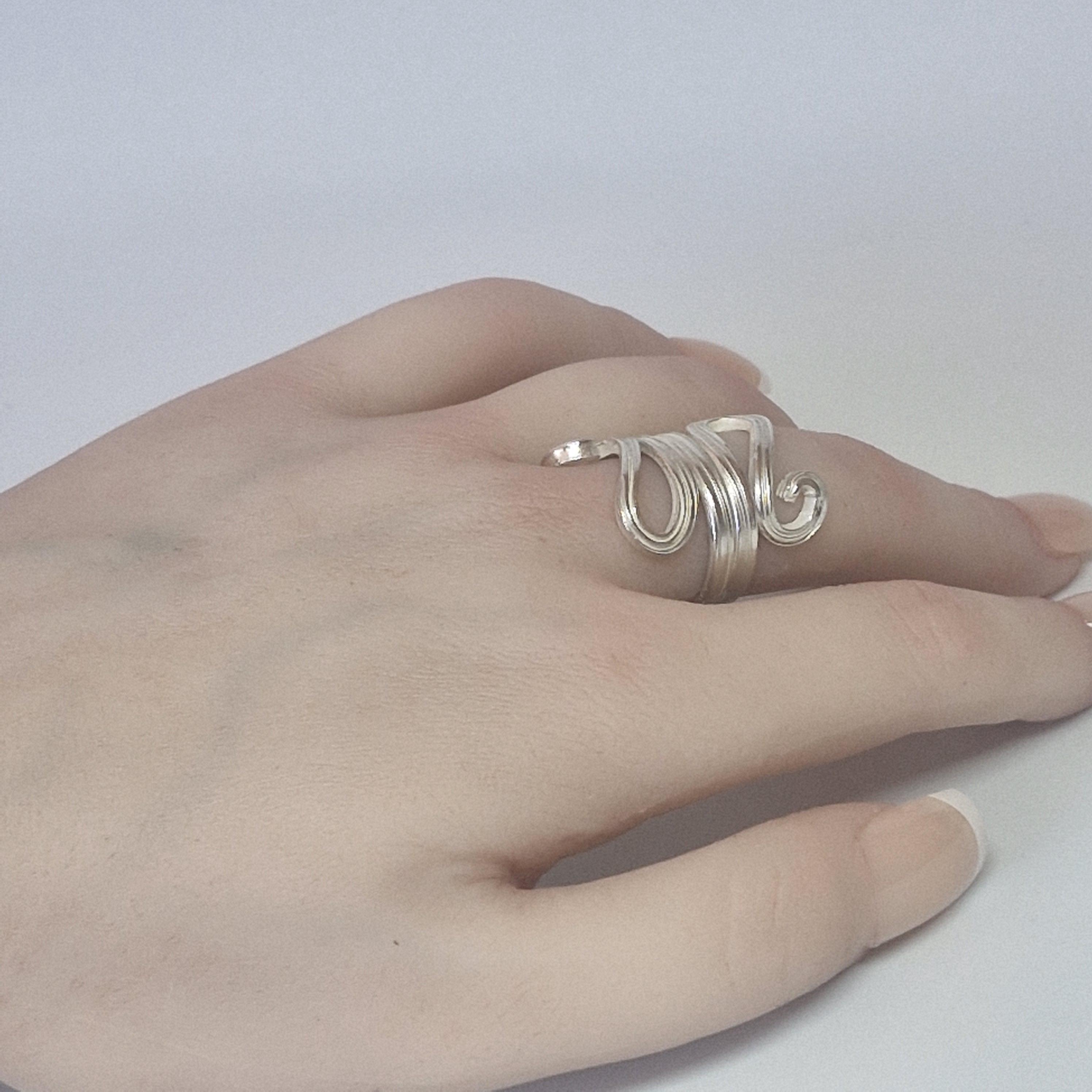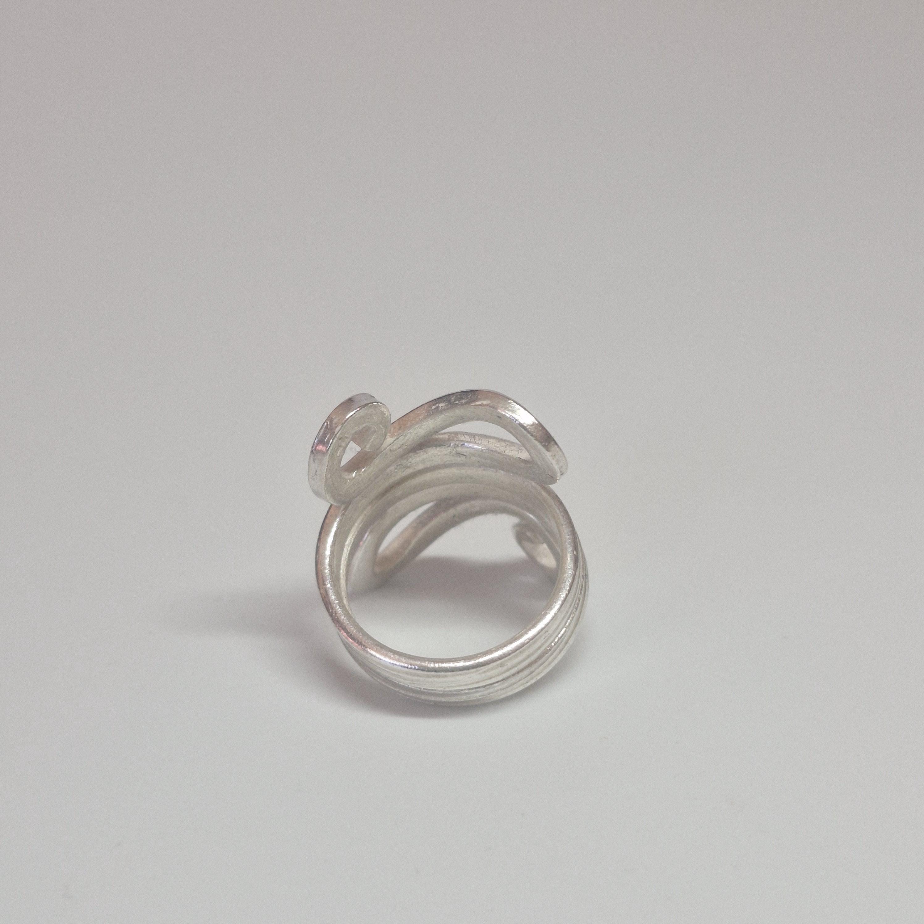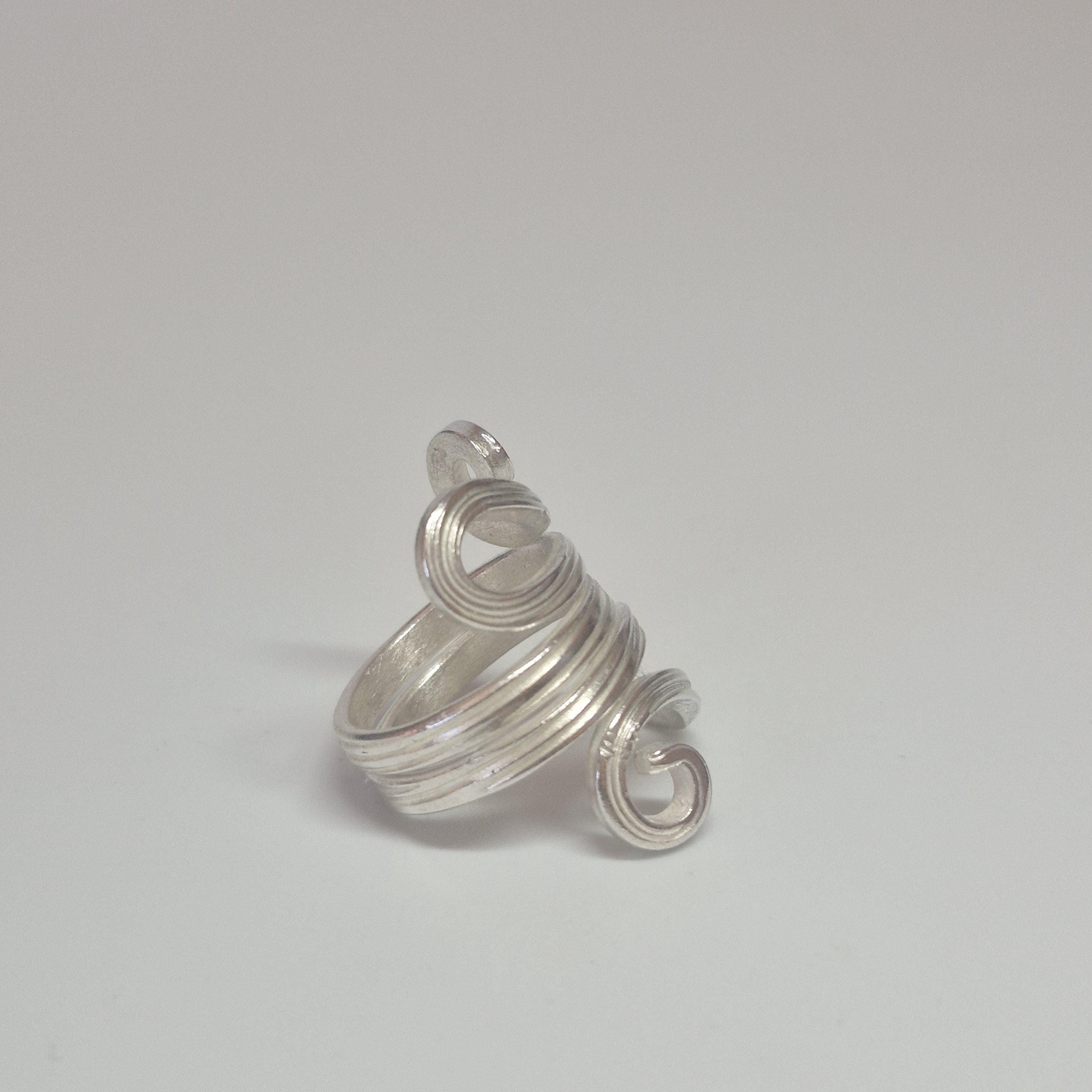 Embrace your inner wanderer with this striking, hand-forged statement piece. Designed for the woman whose heart belongs to the horizon, this lustrous white metal ring features a captivating double-swirl design, meticulously textured to catch the light during golden hour beach walks or late-night festival dances.