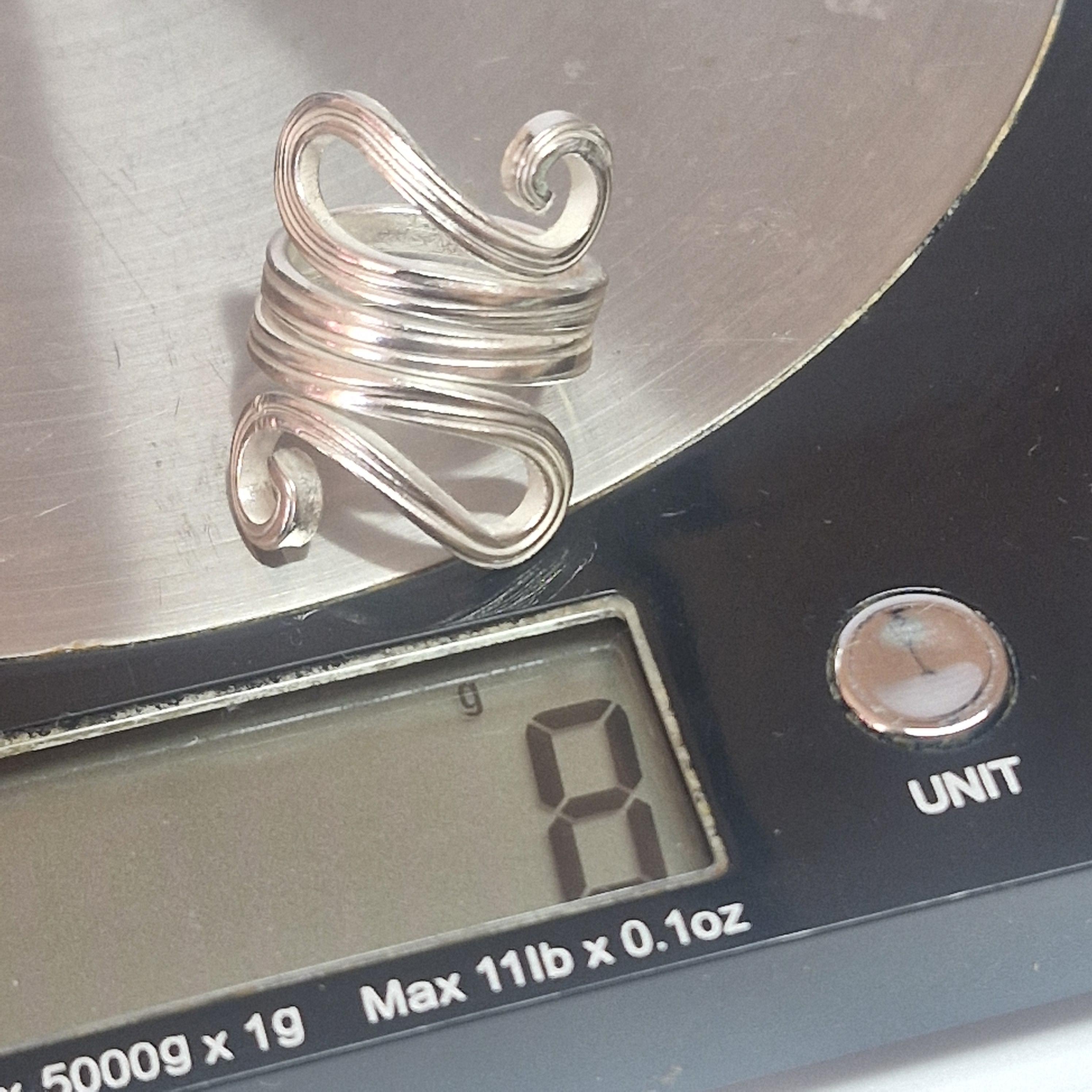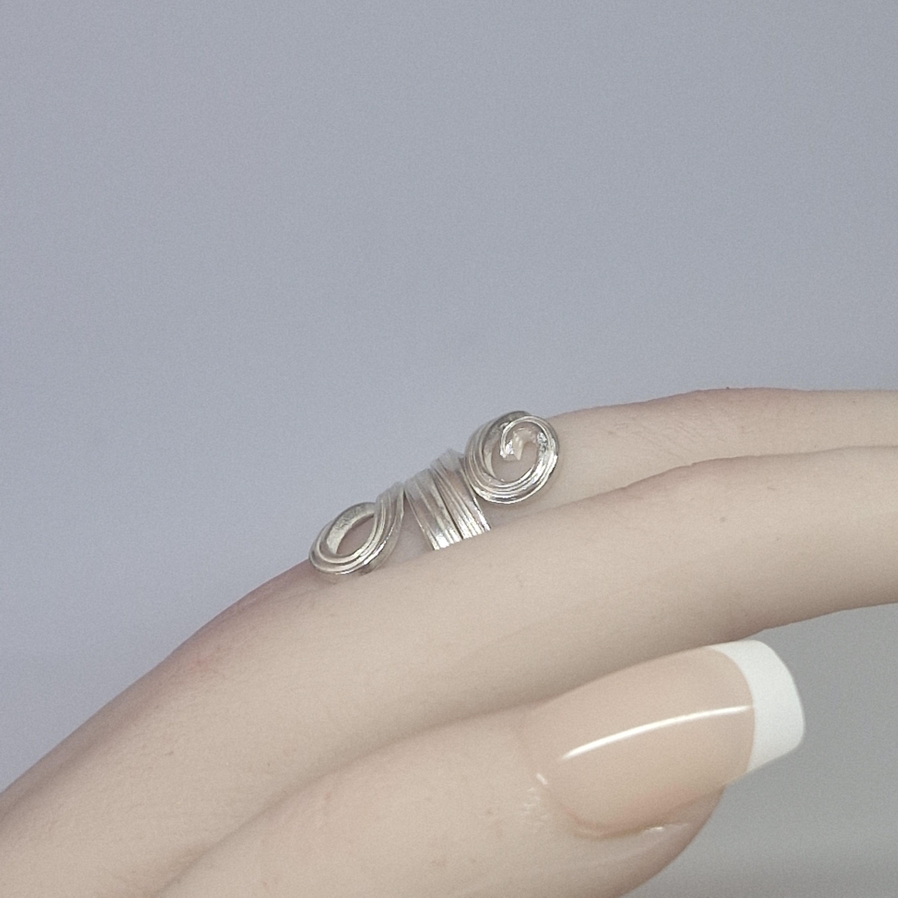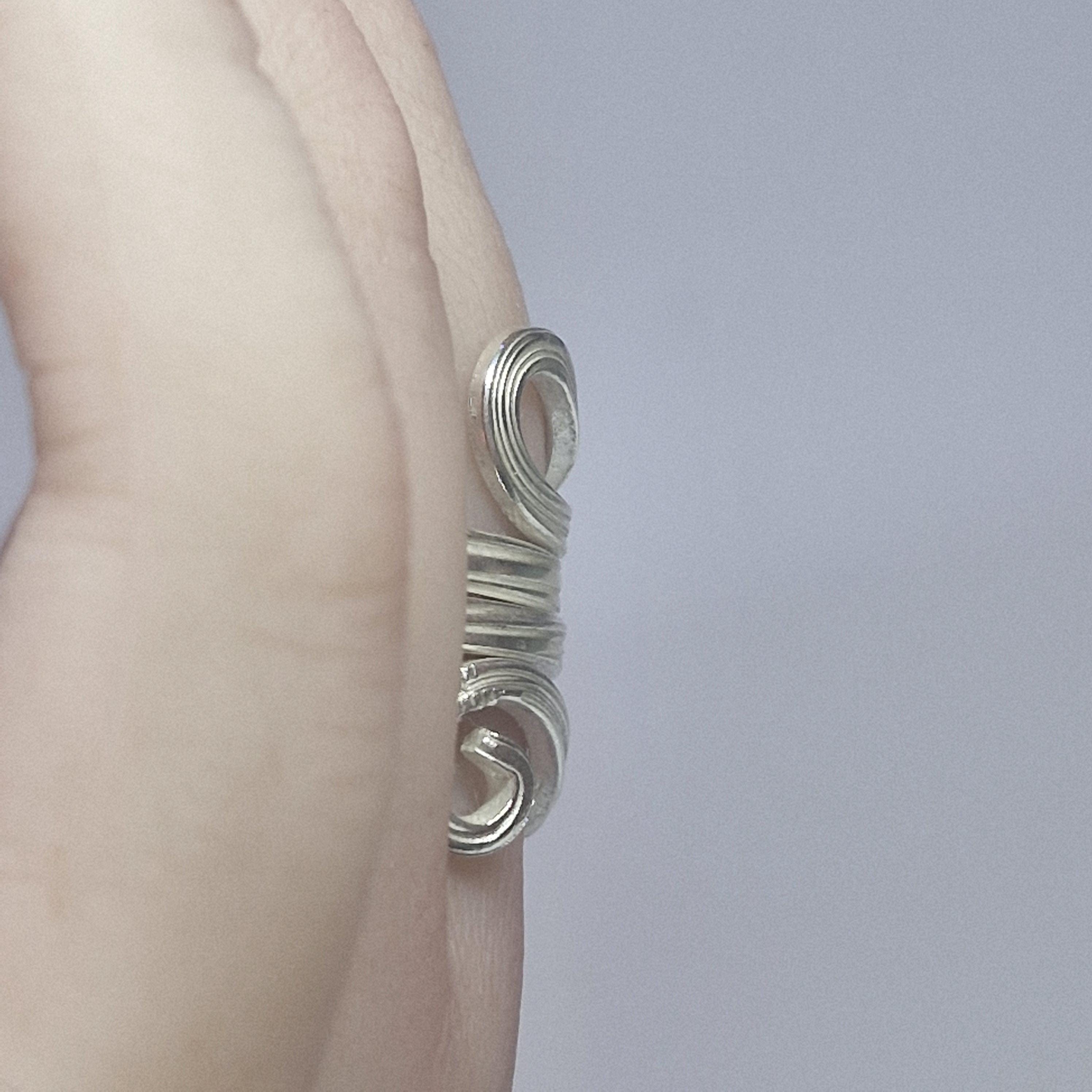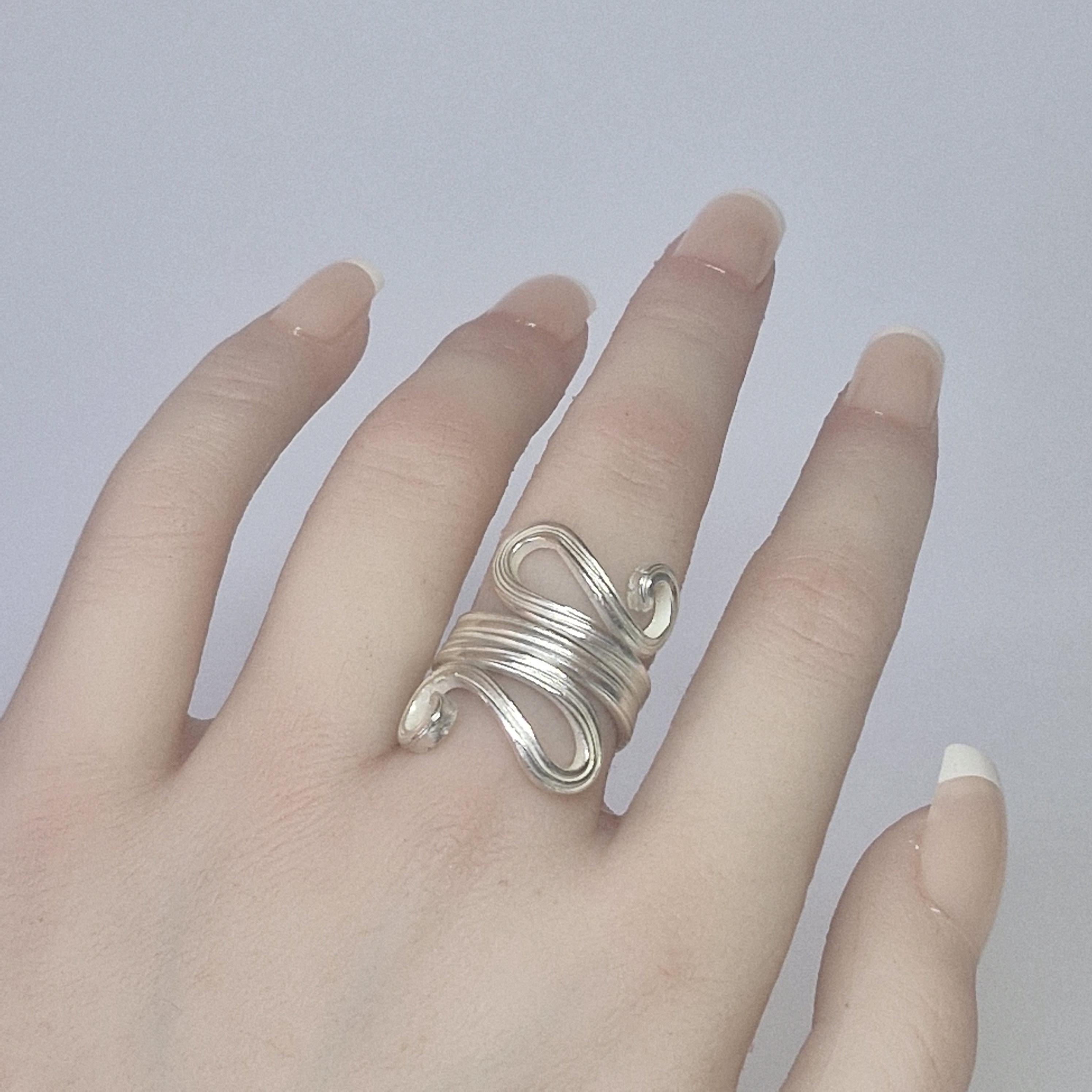 Embrace your inner wanderer with this striking, hand-forged statement piece. Designed for the woman whose heart belongs to the horizon, this lustrous white metal ring features a captivating double-swirl design, meticulously textured to catch the light during golden hour beach walks or late-night festival dances.