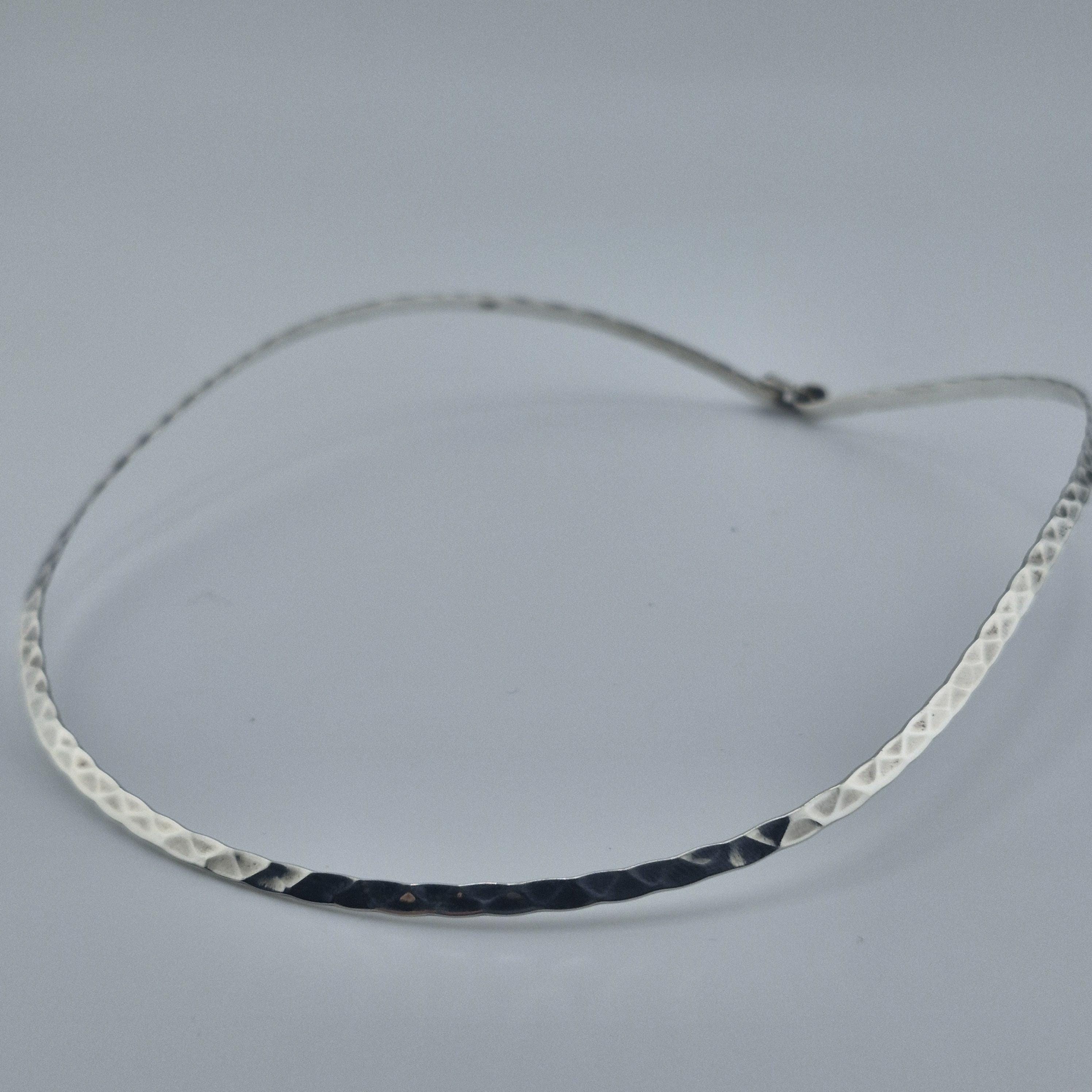 Expertly hammered to catch the light from every angle, this lustrous white metal choker offers a tactile, irregular texture that celebrates true craftsmanship. Its minimalist circular silhouette is designed to sit comfortably against the collarbone, making it a versatile staple for your jewellery capsule.