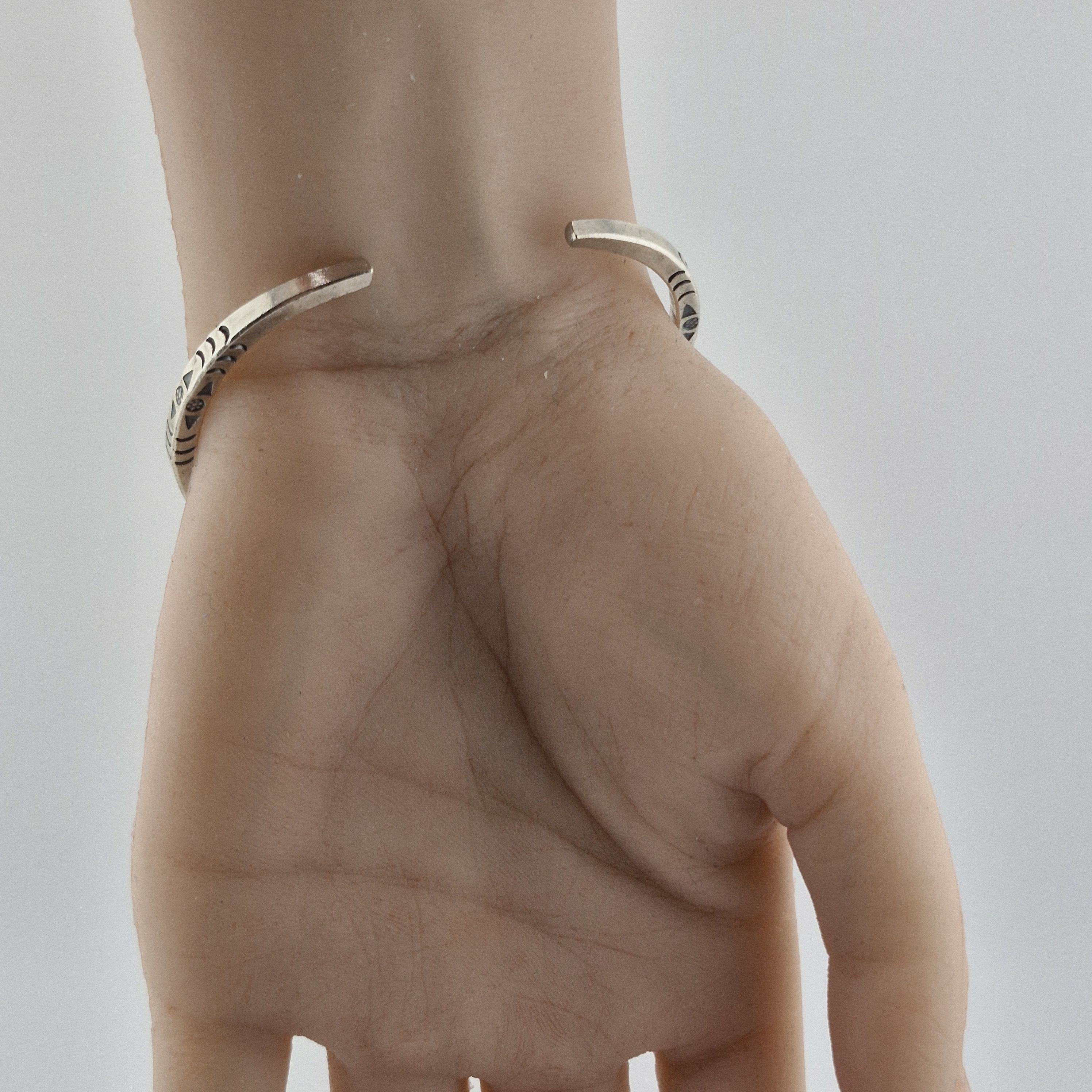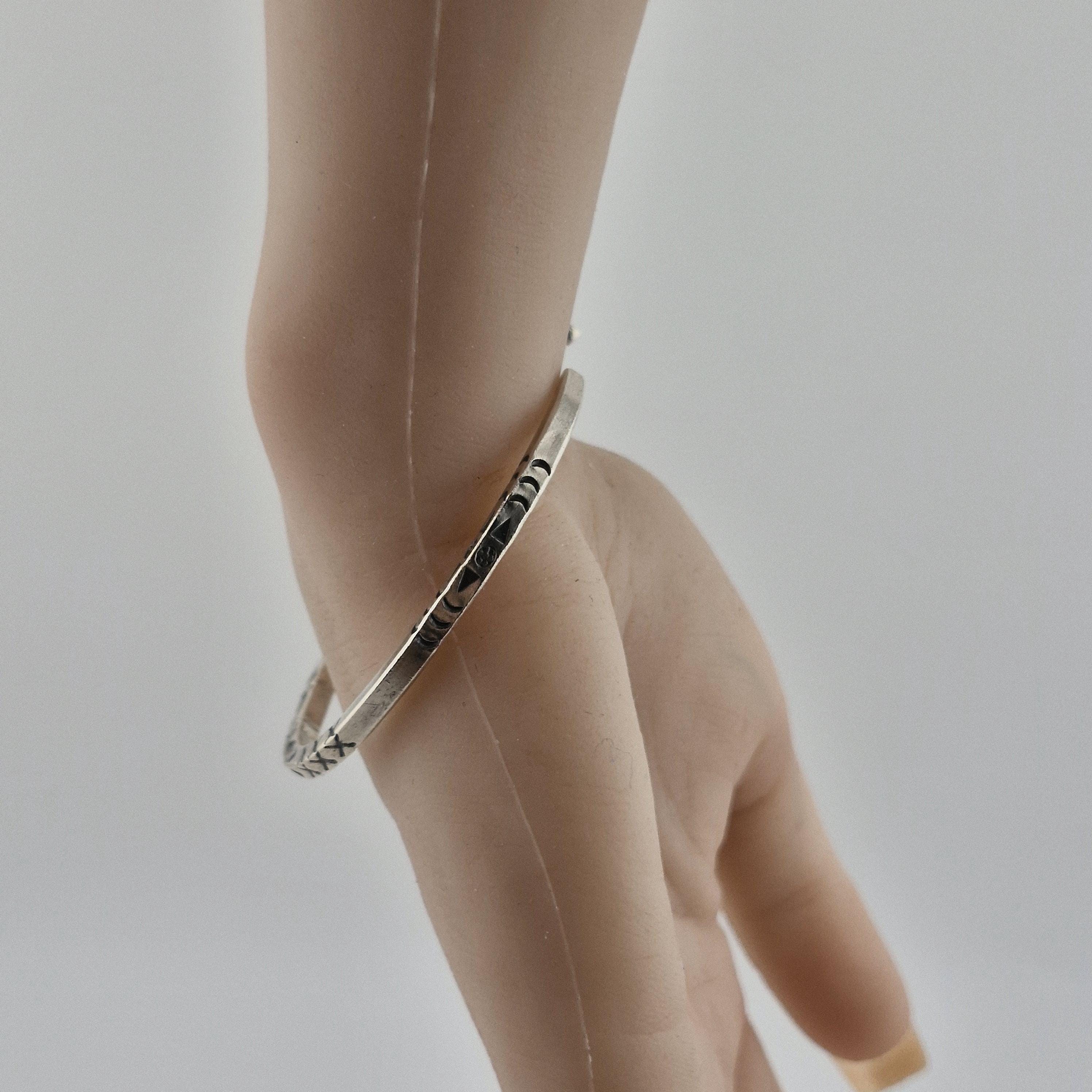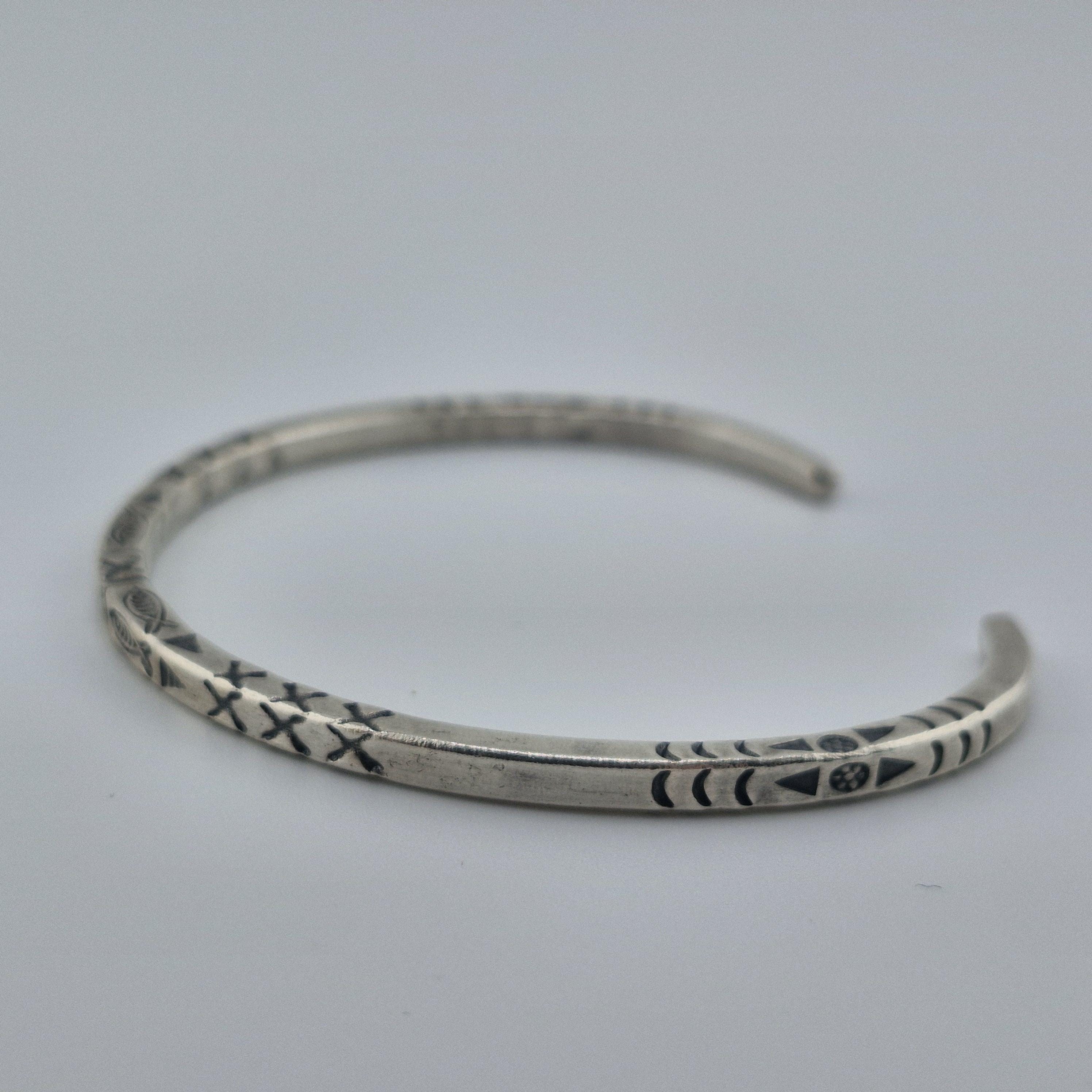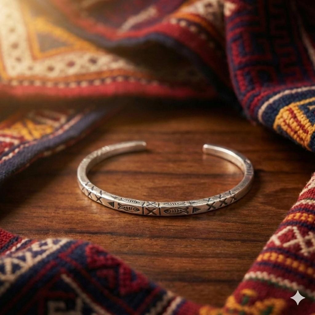 The Craftsmanship: This bangle is defined by its impressive 14-gram weight and its deep, hand-stamped iconography. Using traditional techniques, our artisans have hammered symbolic fish and tribal "X" patterns into a high-purity (96-99%) white metal. The result is a sculptural piece with a matte-lustre finish that feels as premium as it looks.