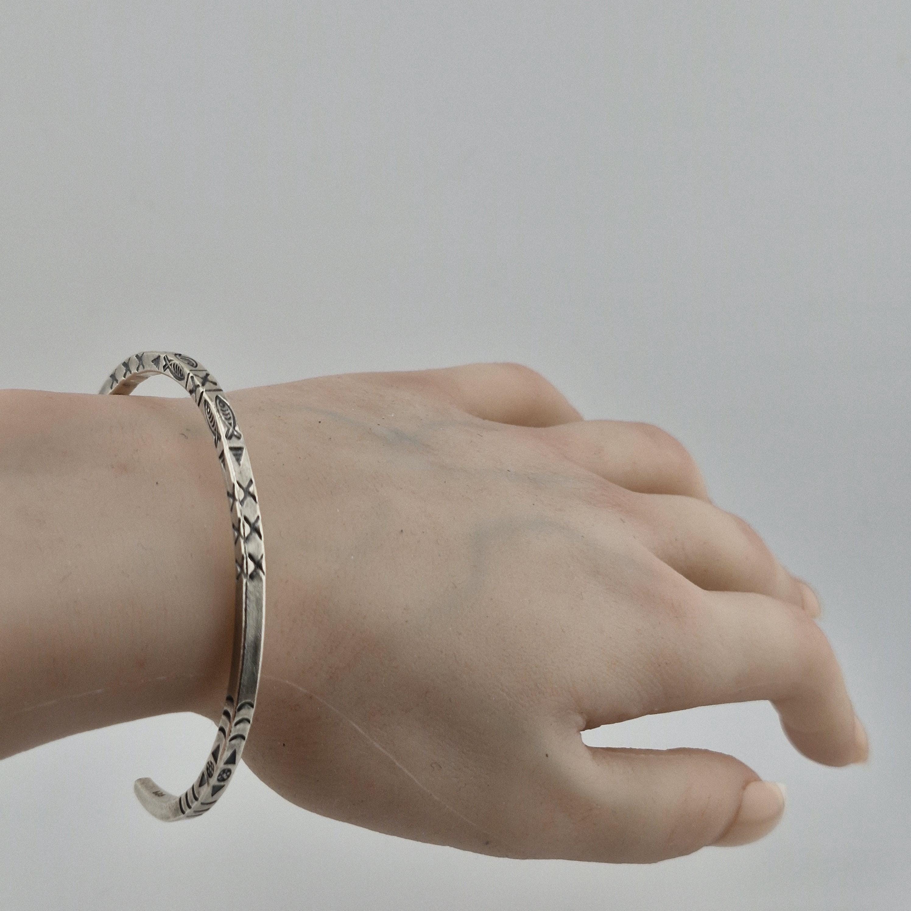 You’re at a secluded lakeside retreat, the morning mist clinging to the water as you wrap your hands around a warm ceramic mug. You feel the reassuring, cool weight of the 14g hand-forged cuff on your wrist. The etched fish motifs—ancient symbols of abundance and the fluid nature of life—serve as a grounding reminder of your own journey. This is "Quiet Luxury" for the bohemian soul: substantial, meaningful, and unmistakably handcrafted.