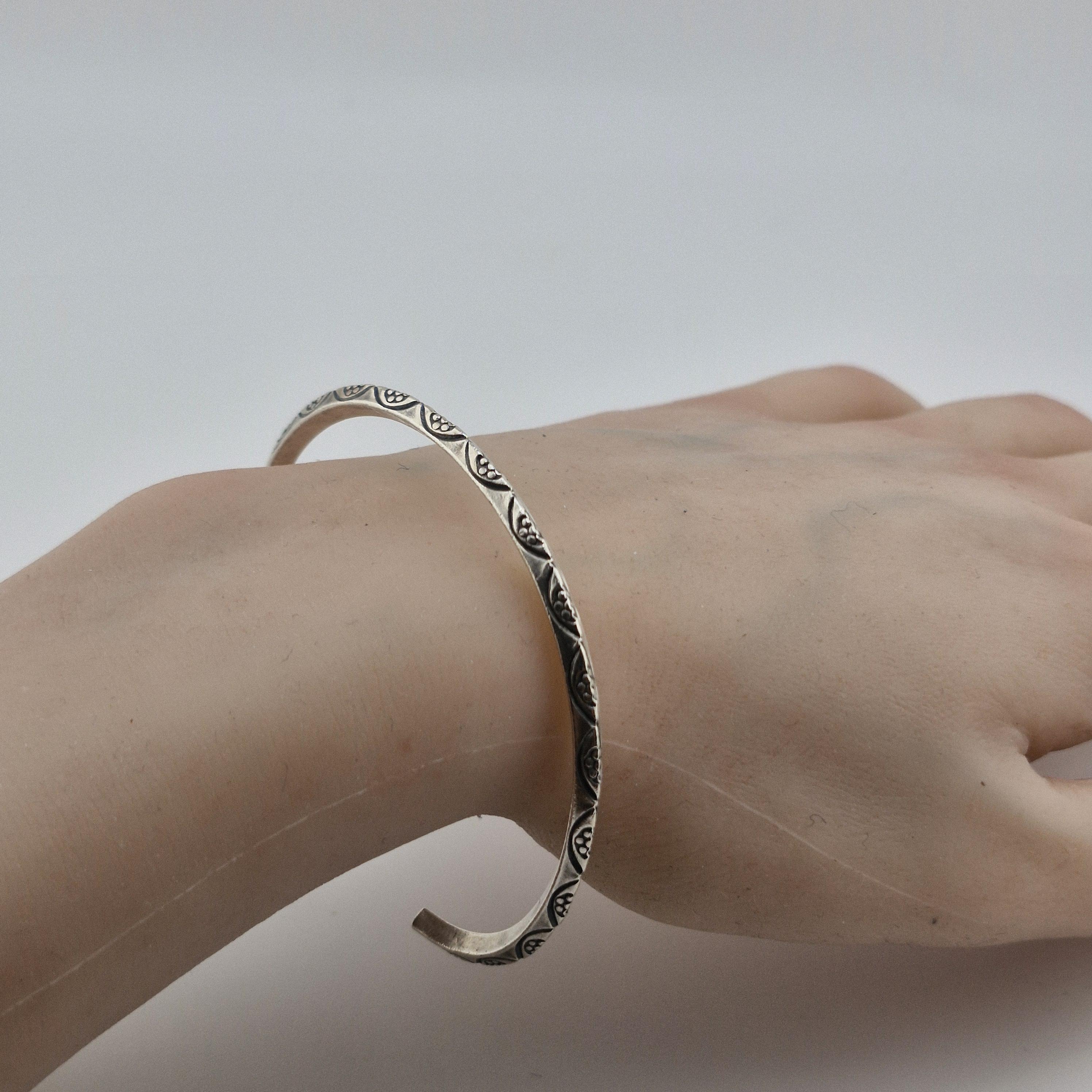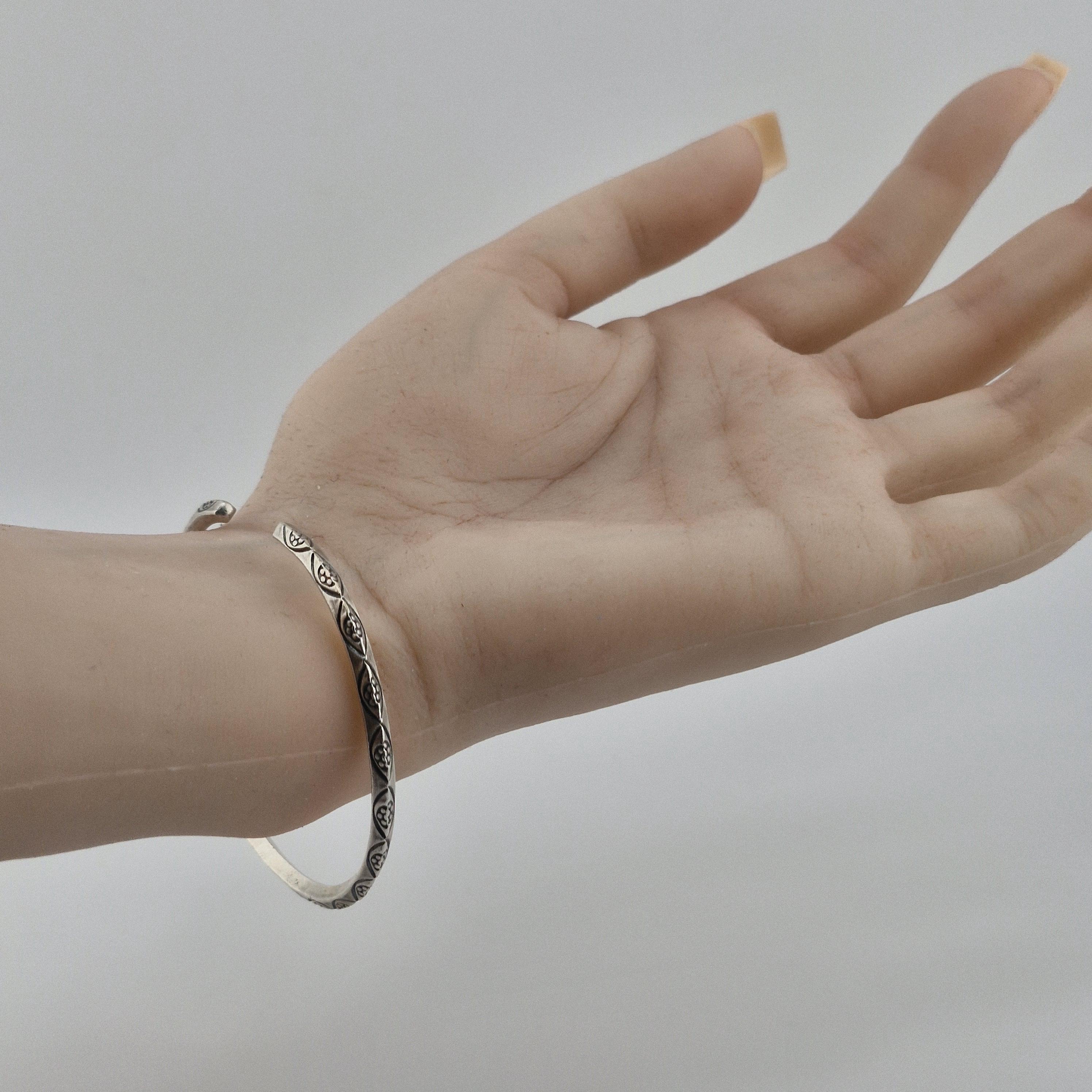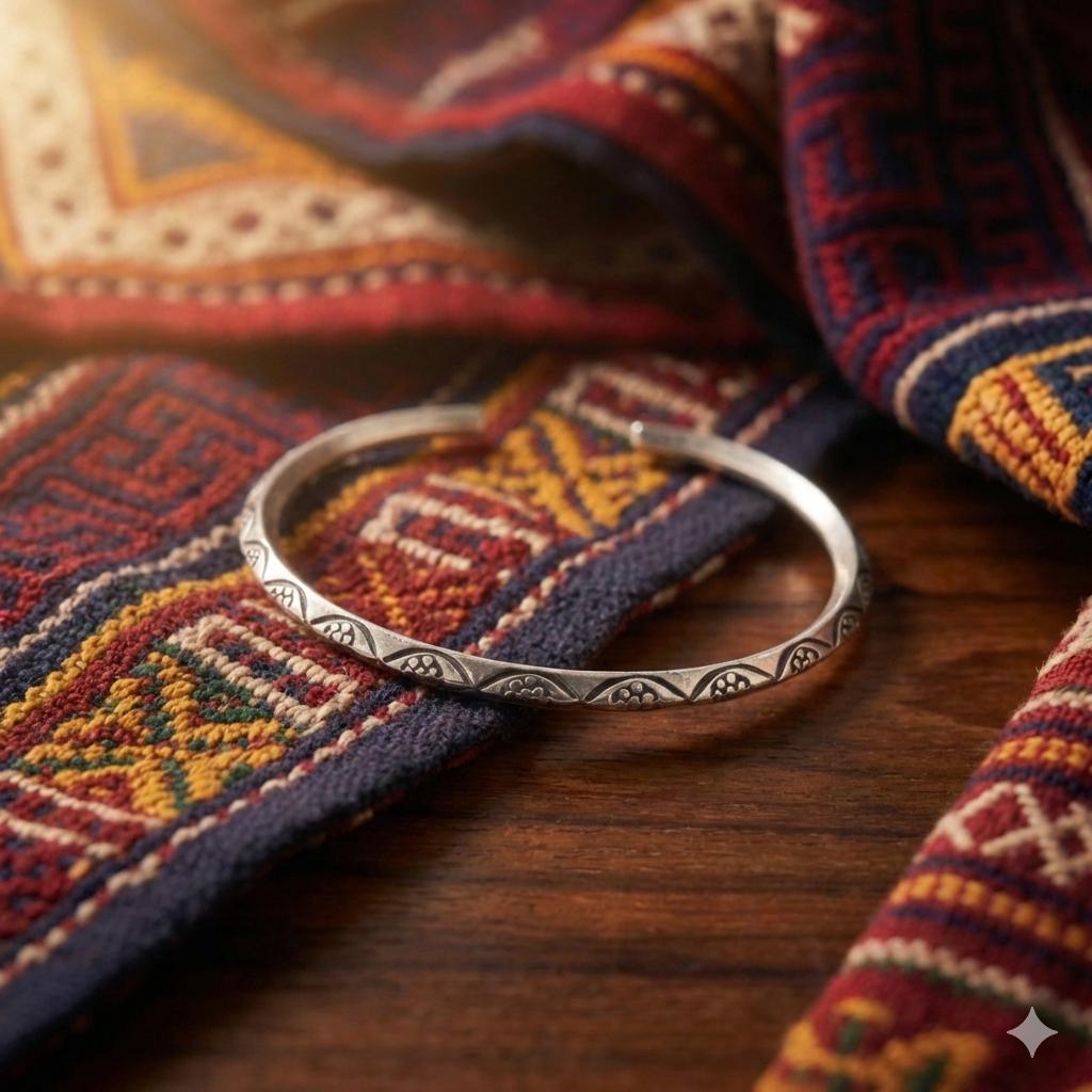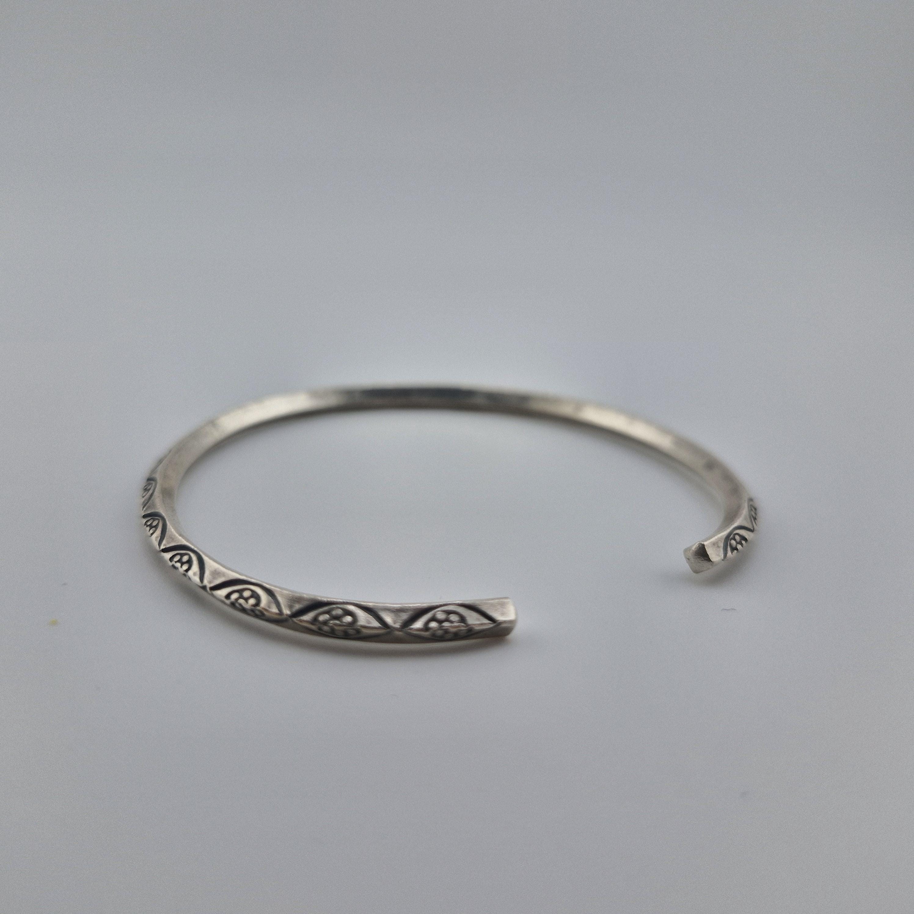 Elevate your daily ritual with a piece that speaks to the wanderer within. This hand-forged bangle features intricate, etched tribal motifs, capturing the essence of the 2026 'Nomadic Minimalist' trend. Crafted from a lustrous white metal with a high-purity finish (96-99%), its substantial weight offers a grounding presence on the wrist.