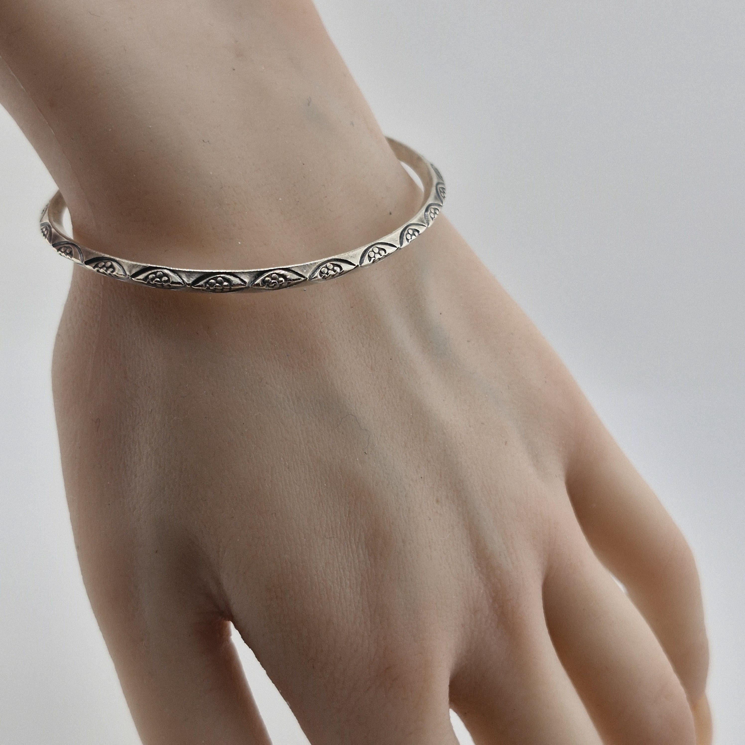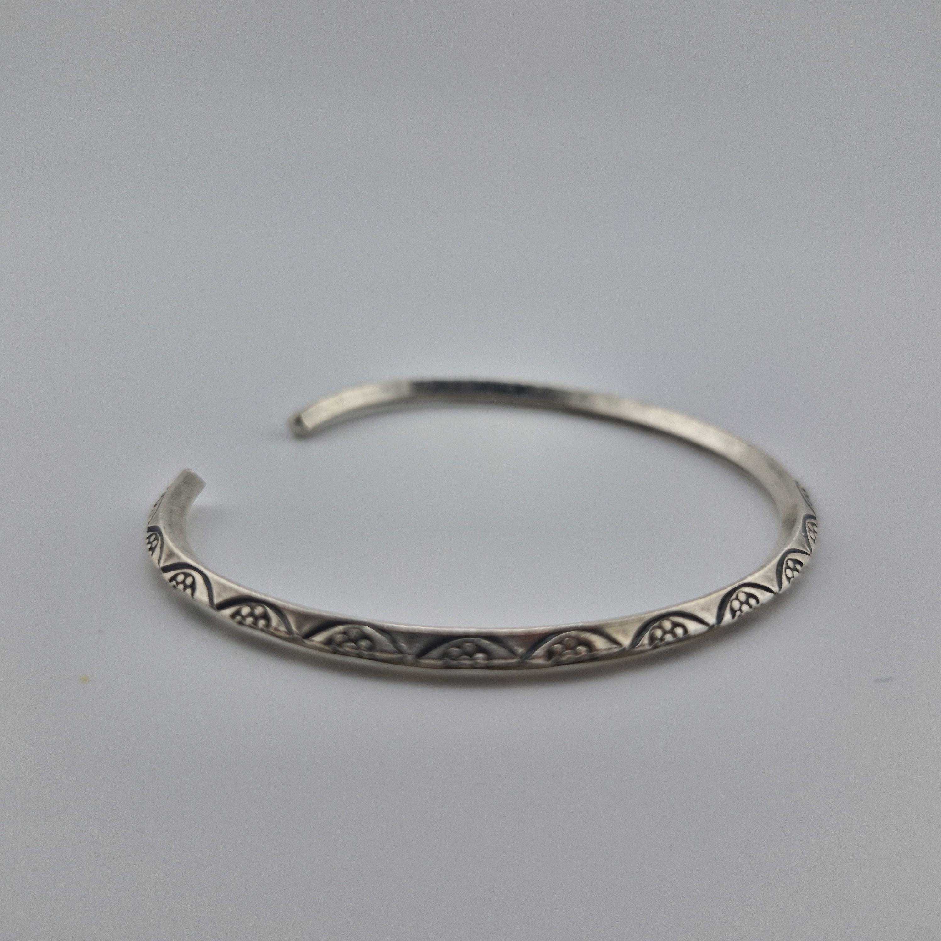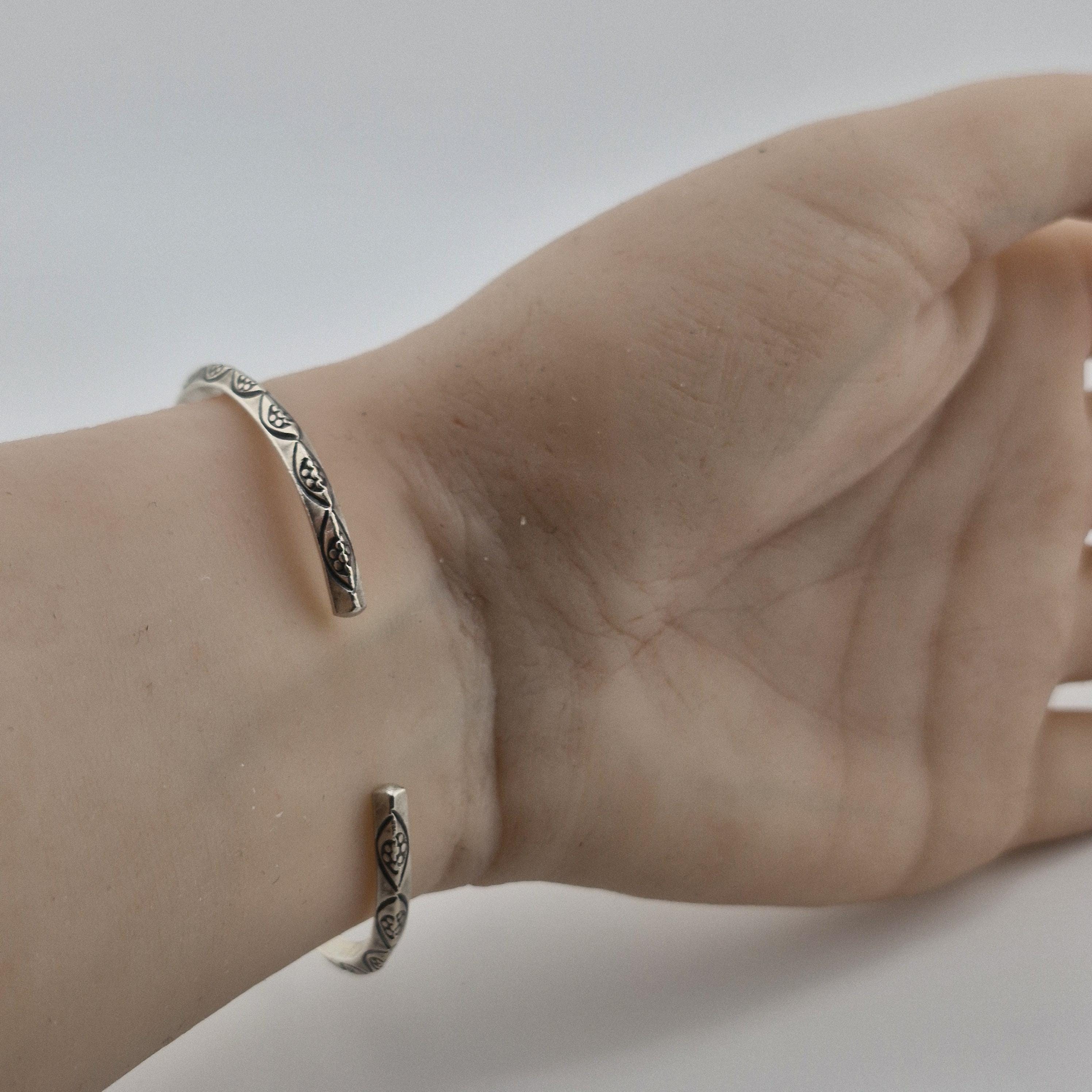 Elevate your daily ritual with a piece that speaks to the wanderer within. This hand-forged bangle features intricate, etched tribal motifs, capturing the essence of the 2026 'Nomadic Minimalist' trend. Crafted from a lustrous white metal with a high-purity finish (96-99%), its substantial weight offers a grounding presence on the wrist.