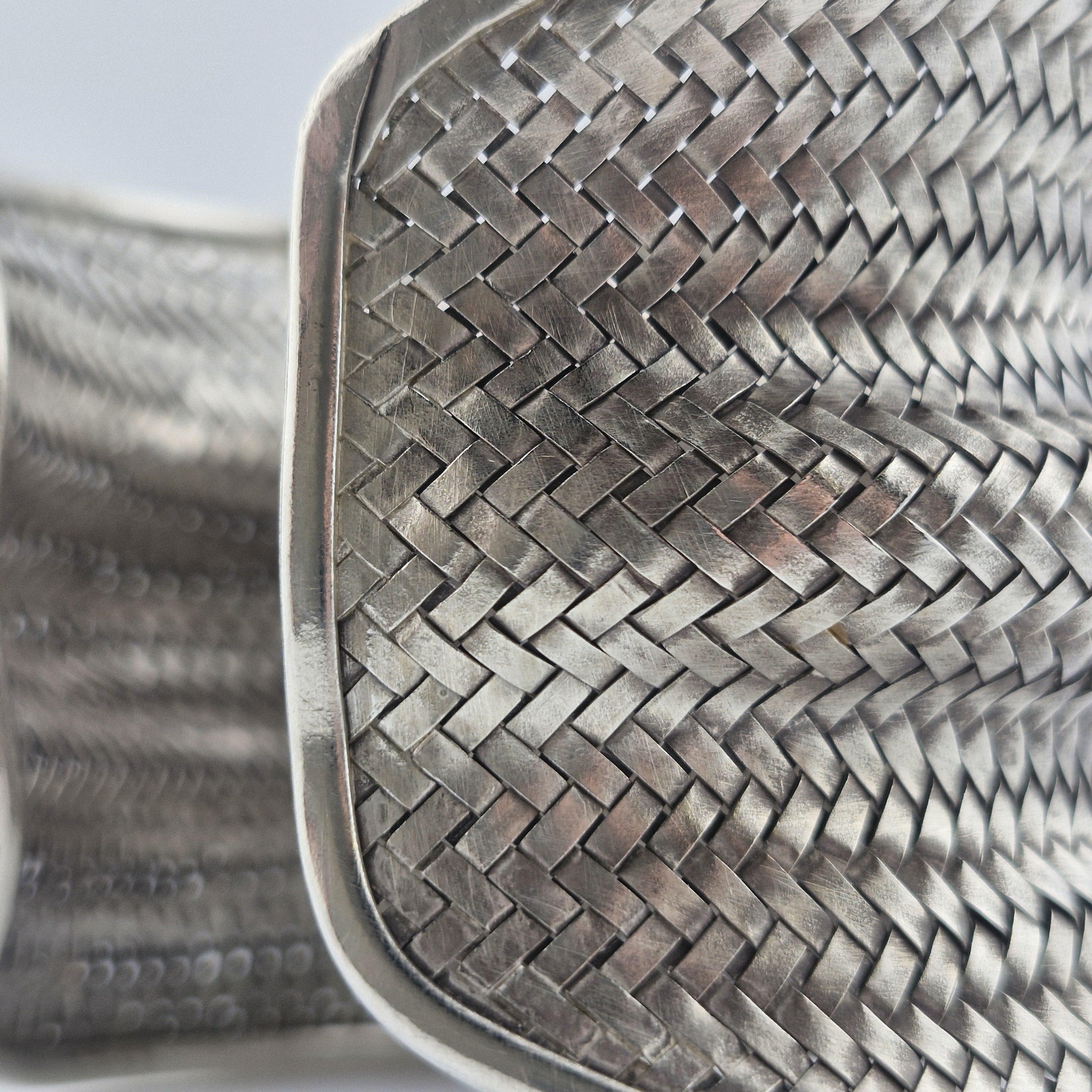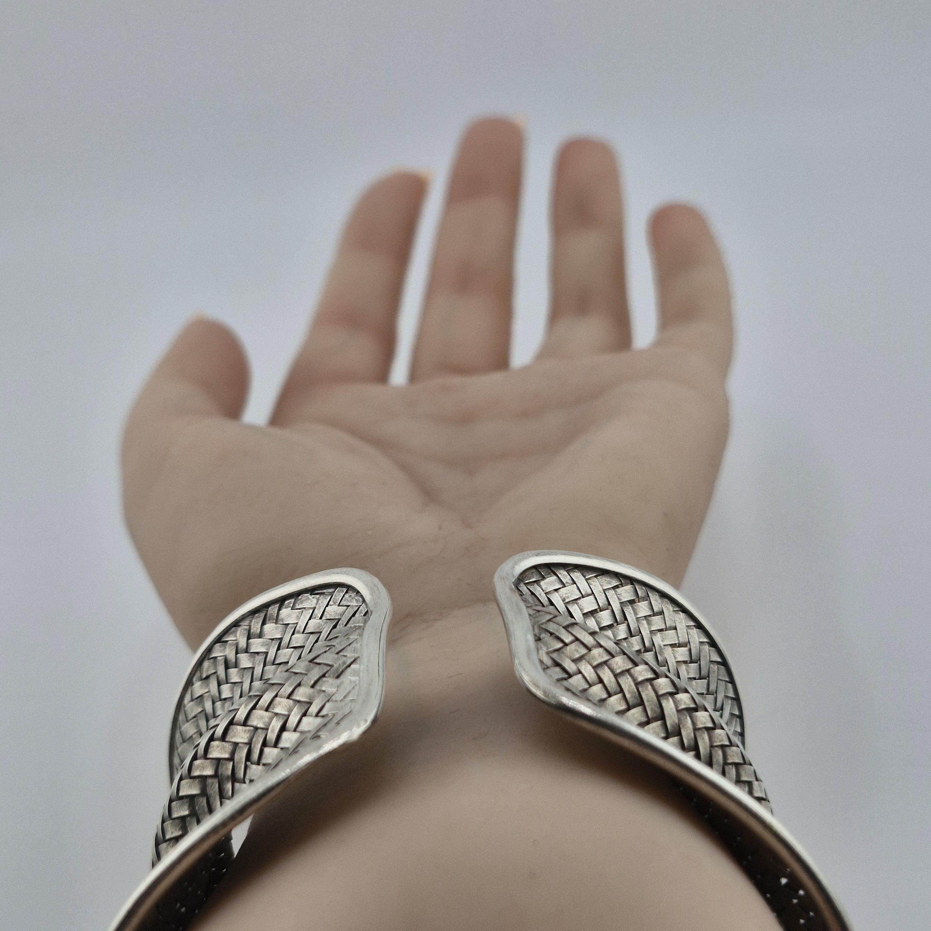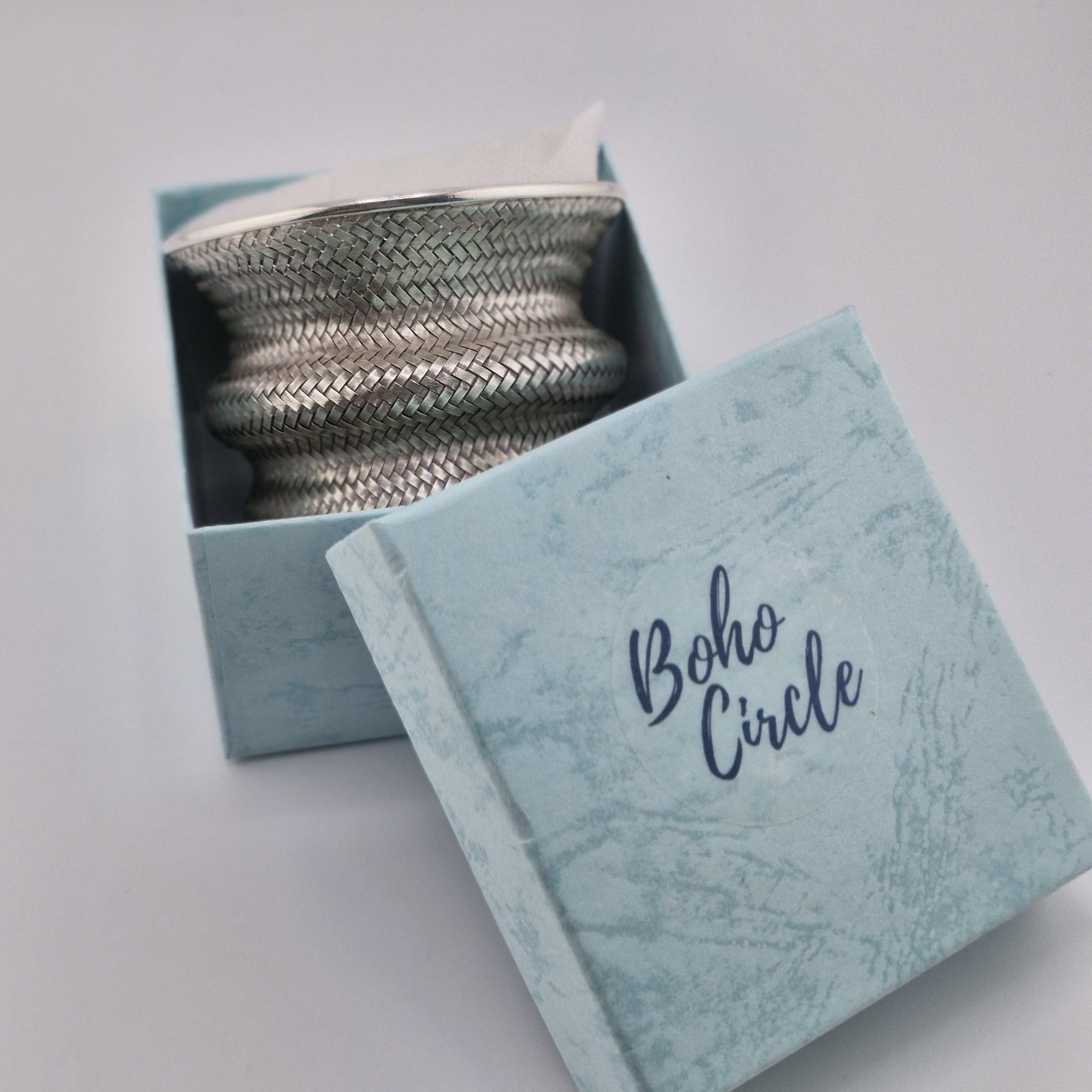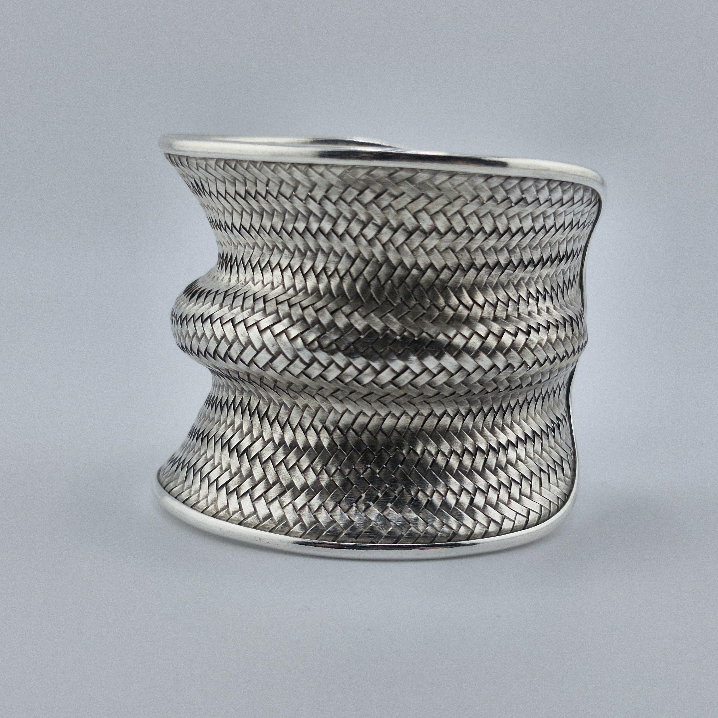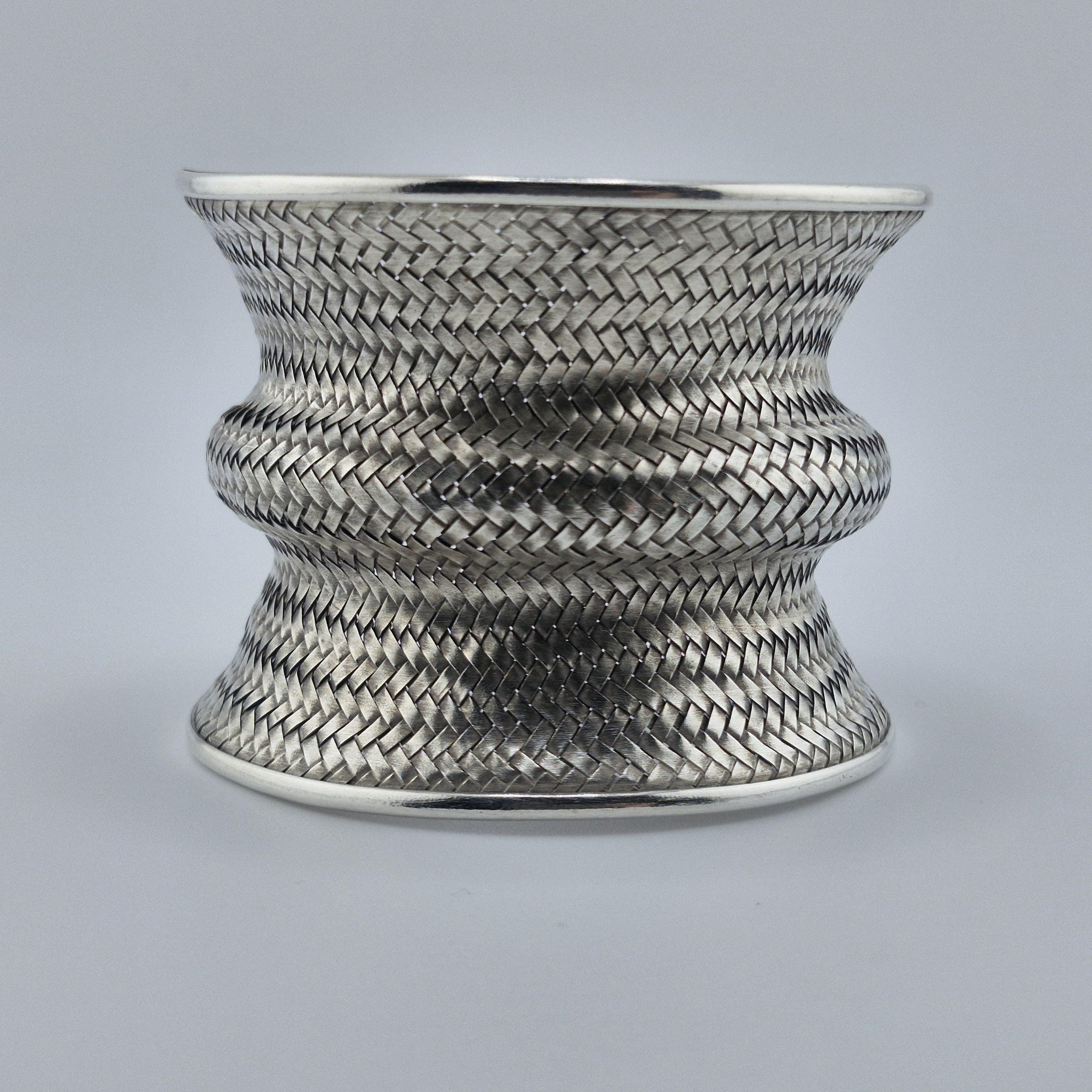 Expertly crafted with a dense, basket-weave pattern, this lustrous white metal cuff offers a substantial, grounding presence at 62 grams. The undulating, ergonomic shape is designed to catch the light from every angle, making it a definitive statement piece that transcends seasonal trends. It represents the "Quiet Luxury" of the boho world—sophisticated, heavy, and undeniably handmade.