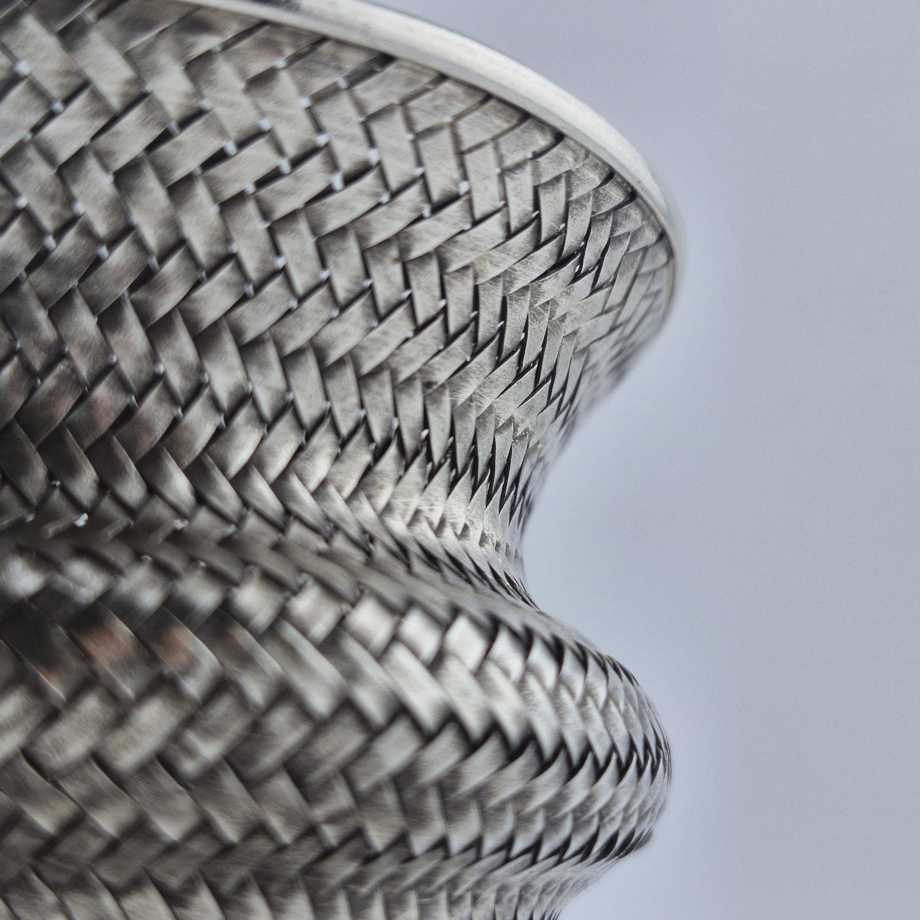 Design: Intricate hand-woven "basket" texture with a wide, flared silhouette.