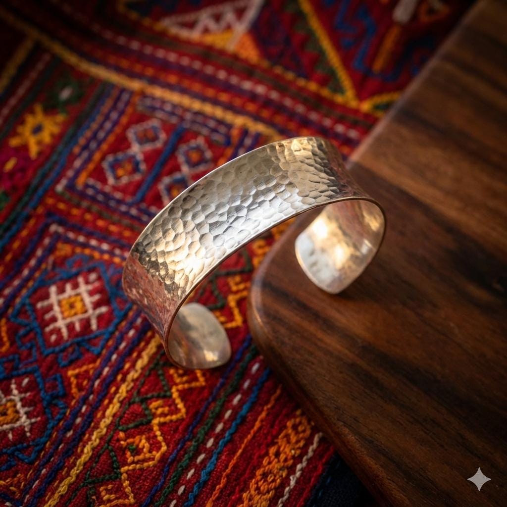 Picture this cuff as a sophisticated companion to a silk slip dress or a grounding element for a casual denim-and-tee look. It’s for the free-spirited woman who values "Slow Craft"—jewellery that carries the visible mark of the maker and provides a sense of "Artisanal Armour." It is effortless, tactile, and designed to be lived in.