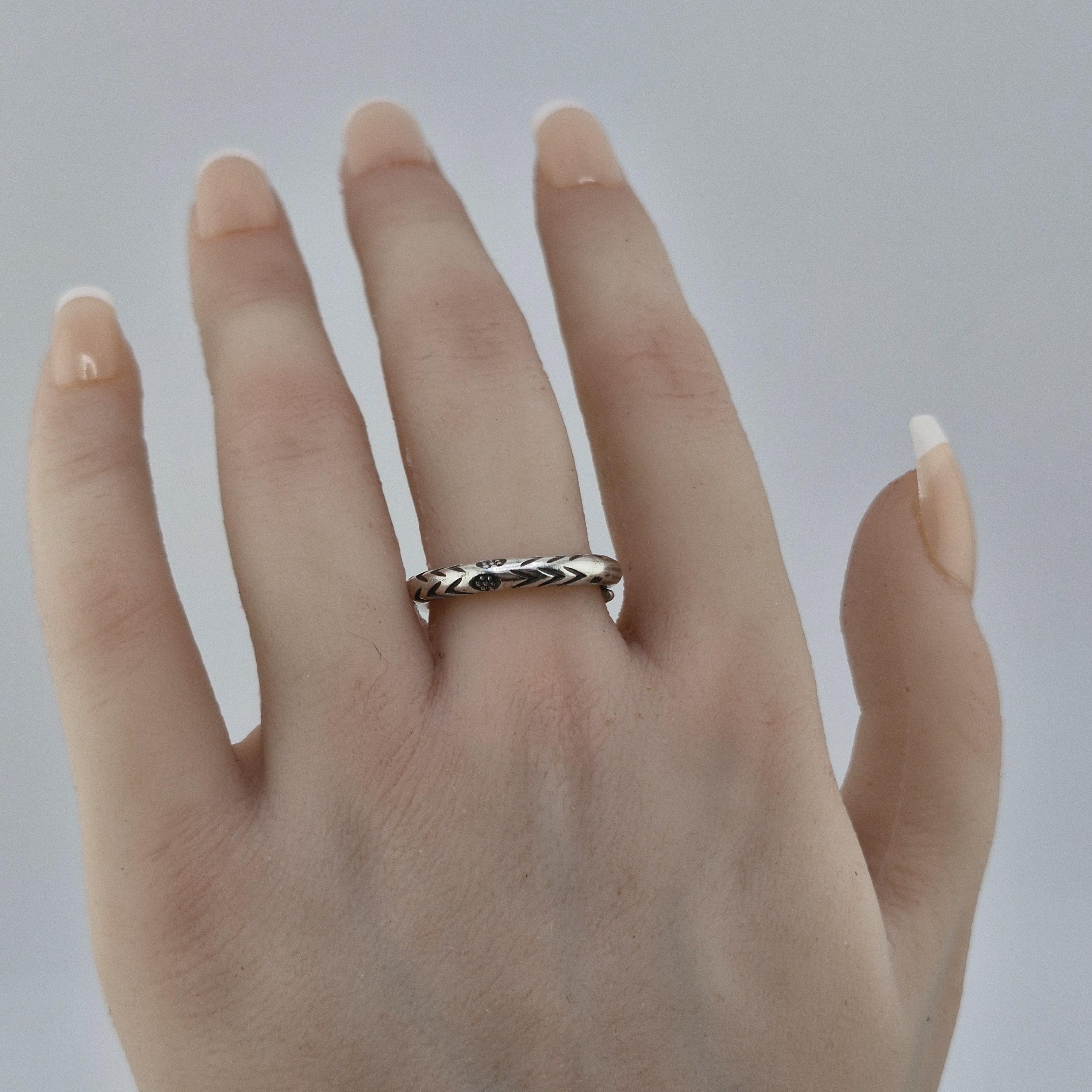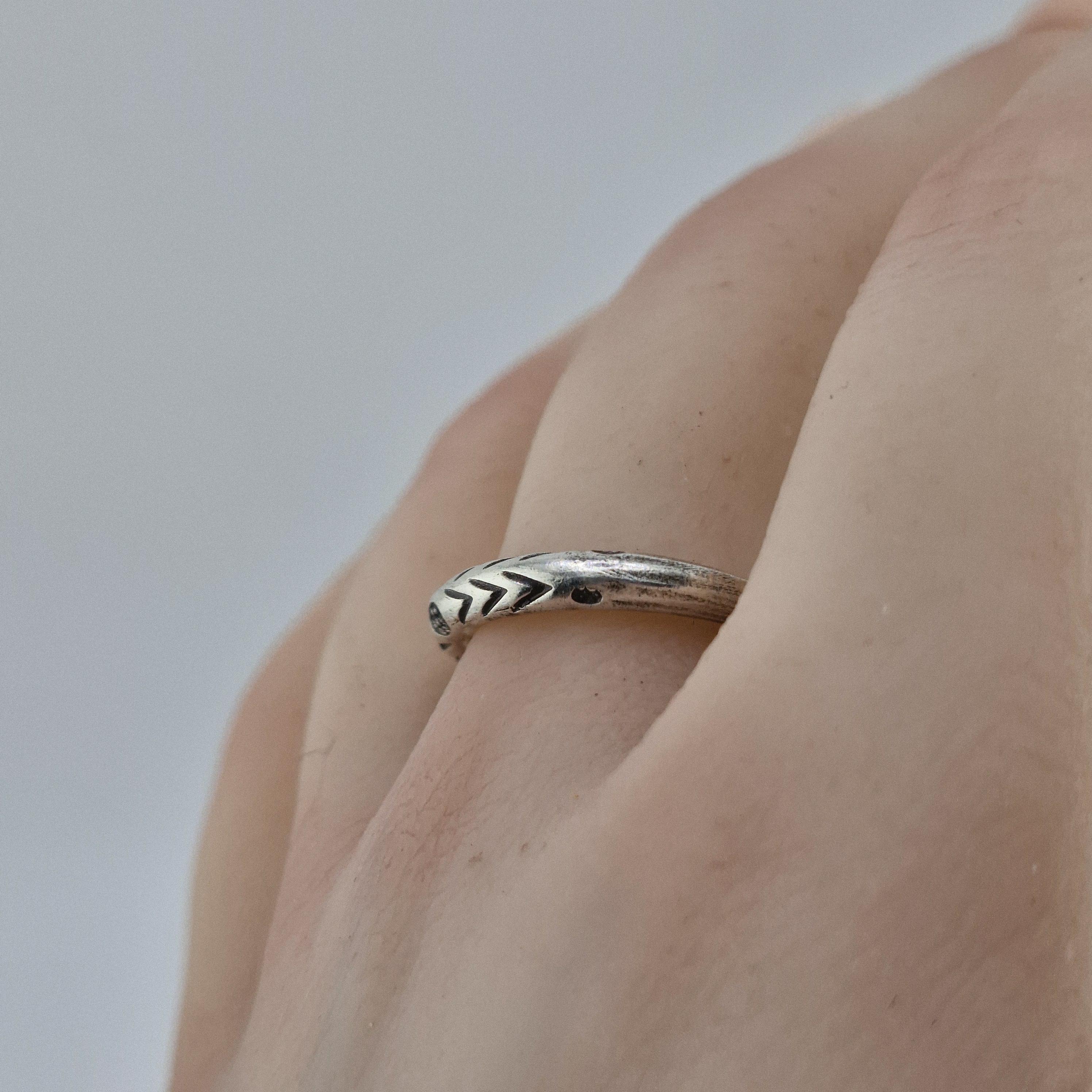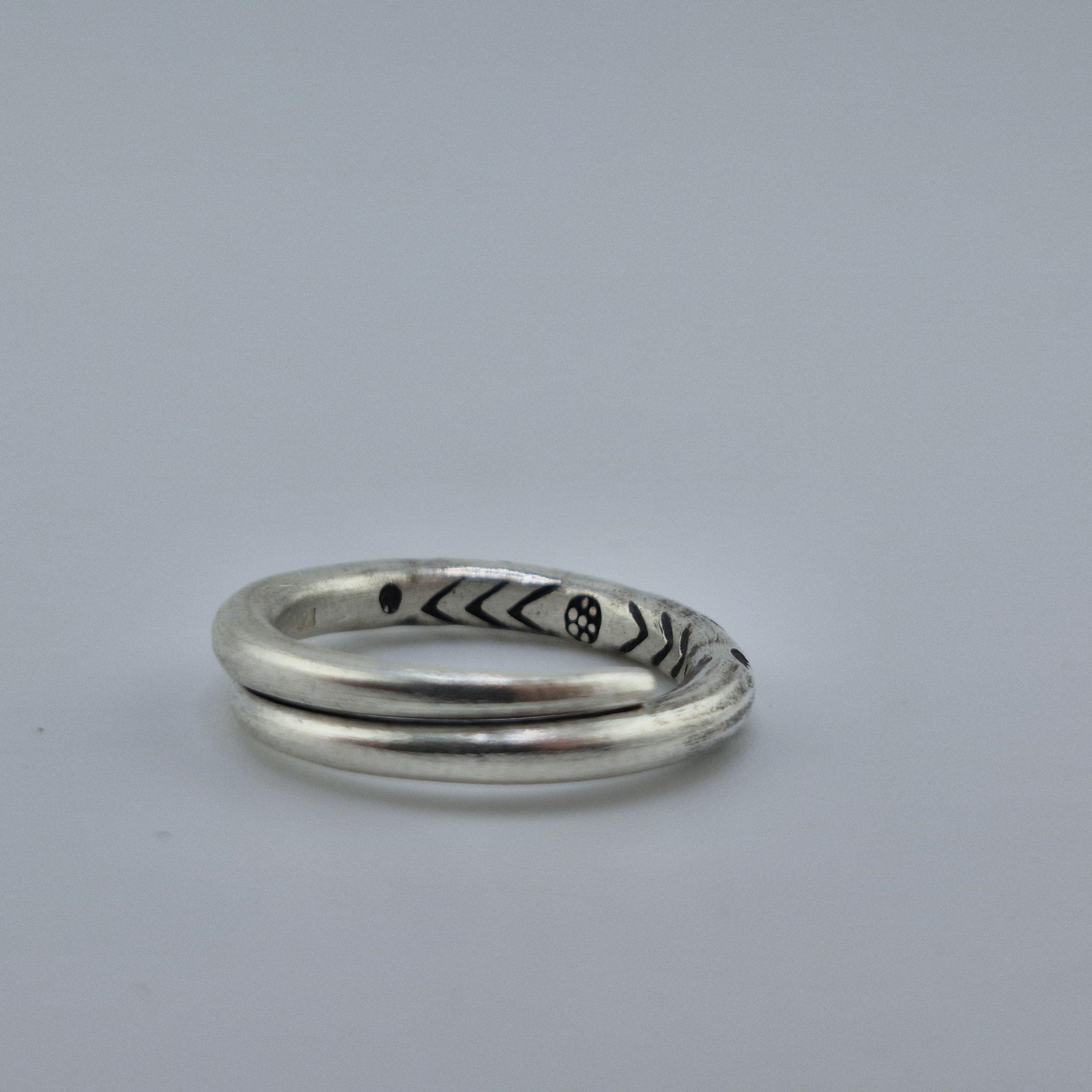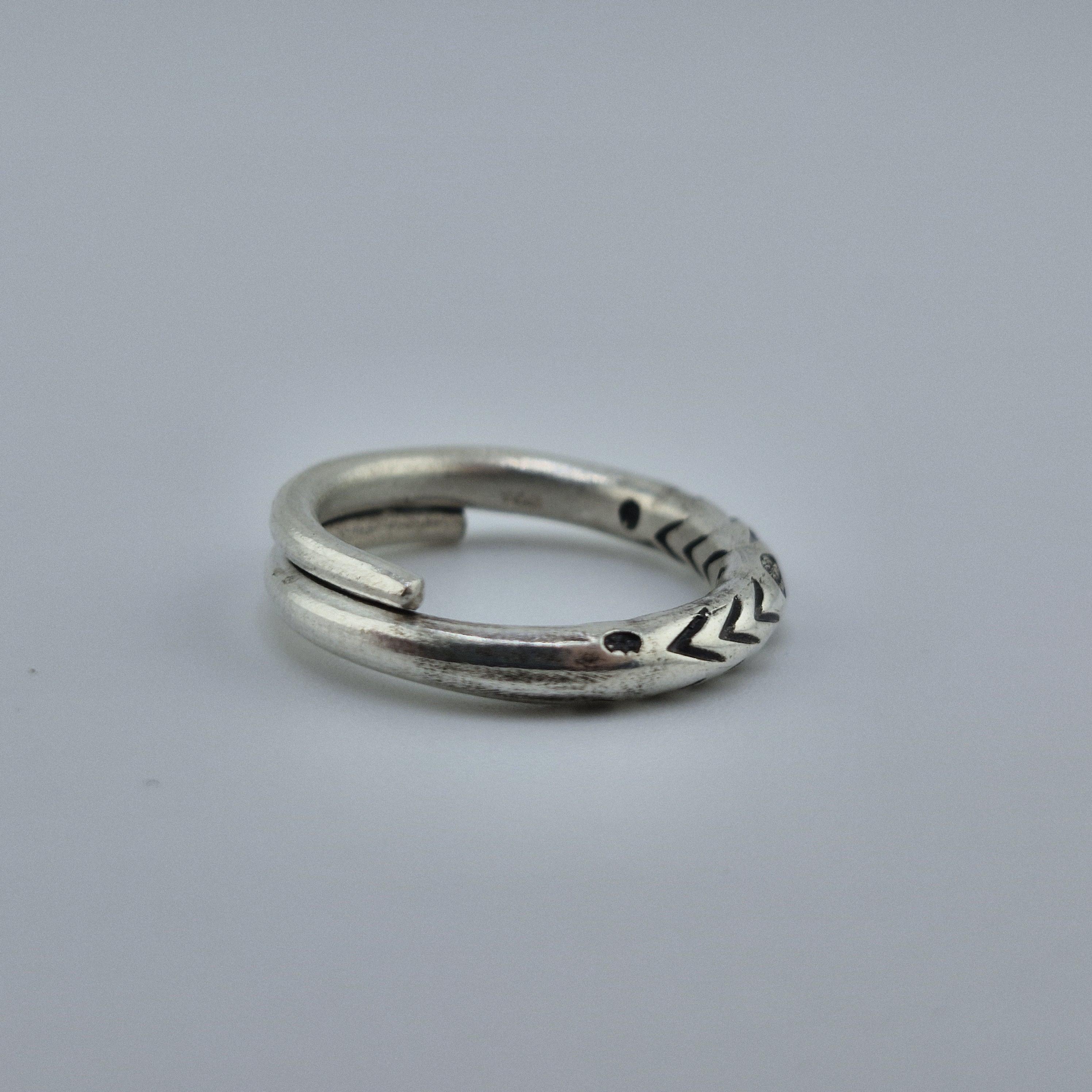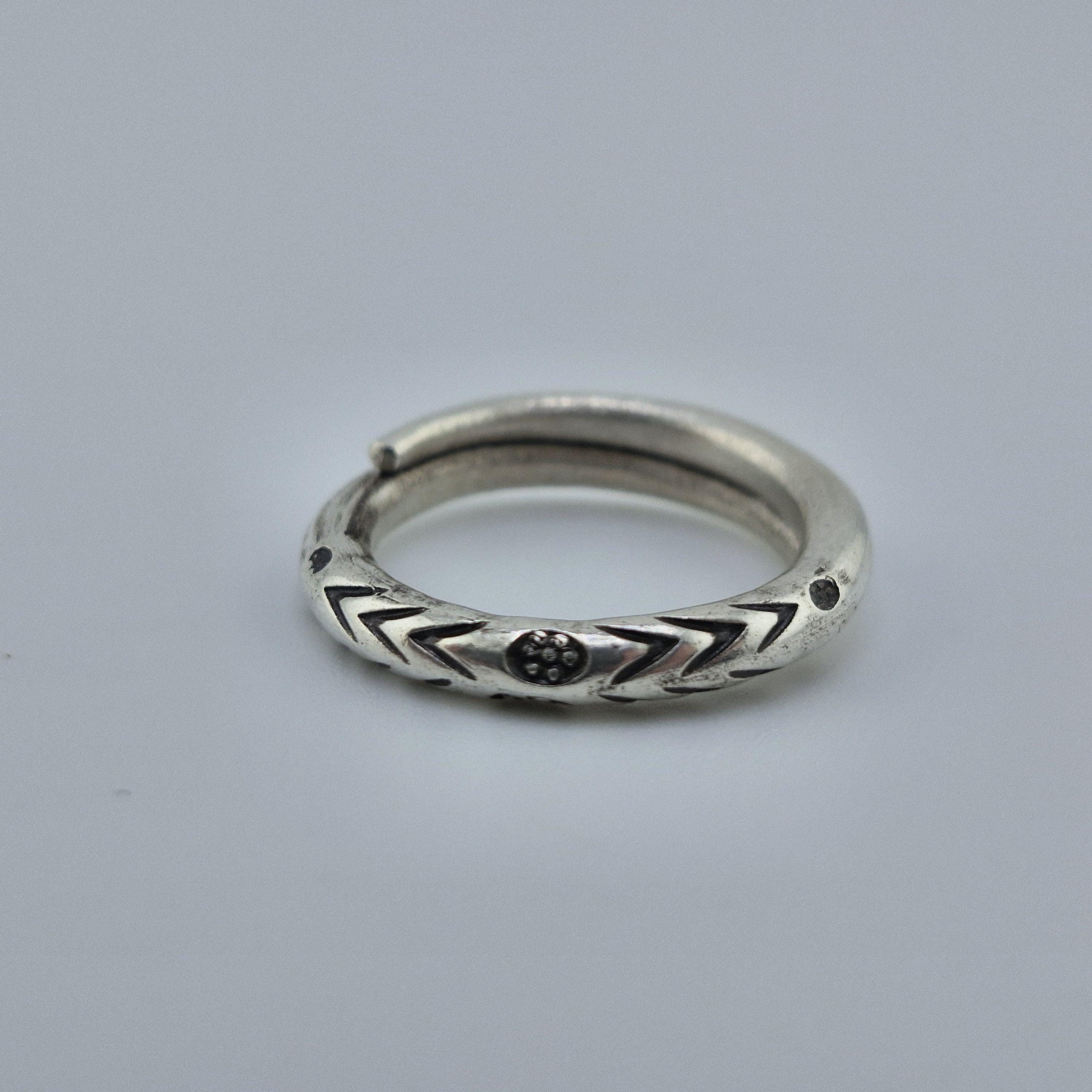 Design: A rustic, wrap-around open band featuring traditional tribal stamp work.