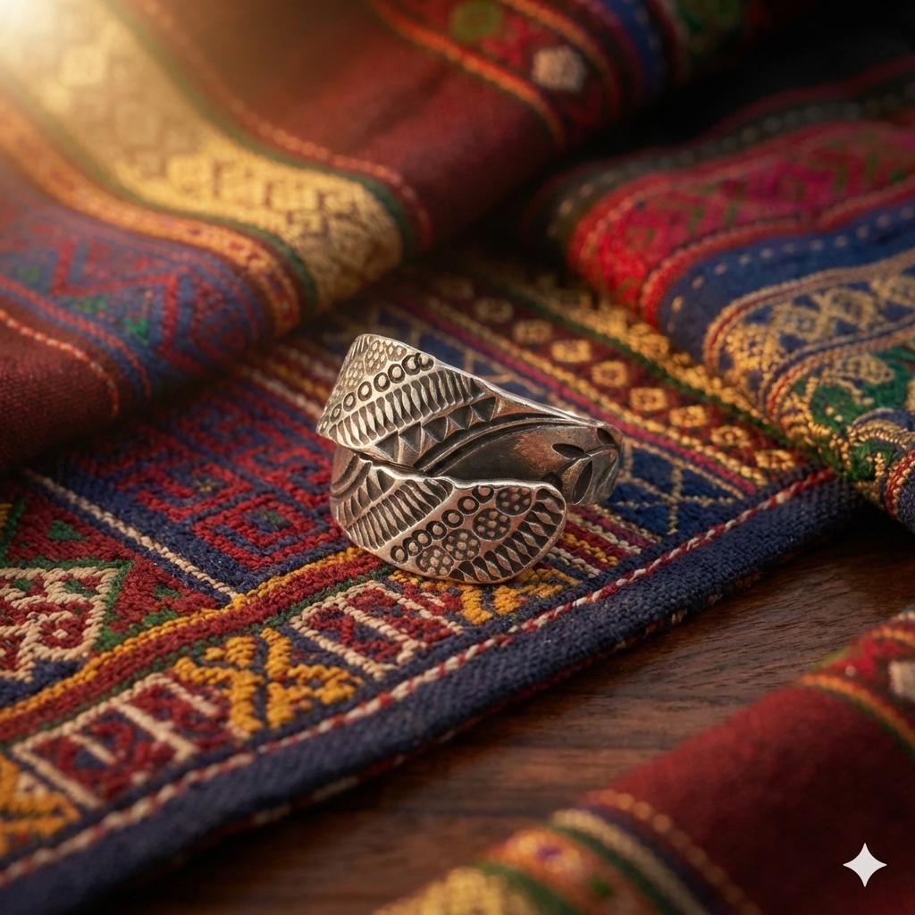 The Design: This substantial 10g wrap ring is hand-forged using traditional techniques, featuring intricate tribal motifs that wrap around the finger in a bold, sculptural silhouette. Its weighty, high-quality metallic finish is designed to age beautifully, gaining a unique patina that tells your story.