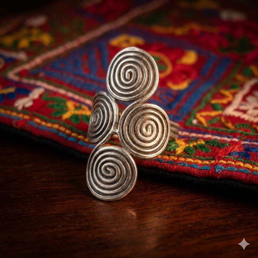 Picture yourself wandering through a sun-drenched artisan market or enjoying a sunset festival in 2026. This isn't just a ring; it’s a piece of wearable sculpture designed for the woman who finds beauty in the unconventional. Crafted from 999 Fine Silver, this piece carries the soul of traditional Karen Hill Tribe craftsmanship, refined for a modern, high-fashion boho aesthetic.