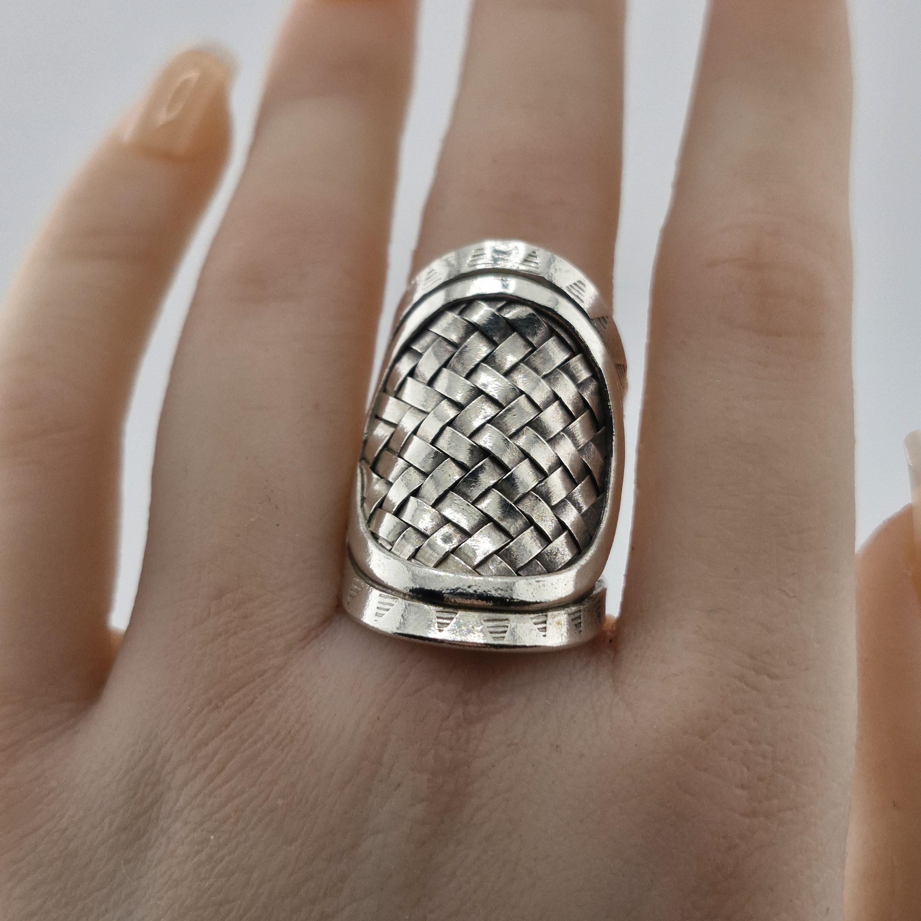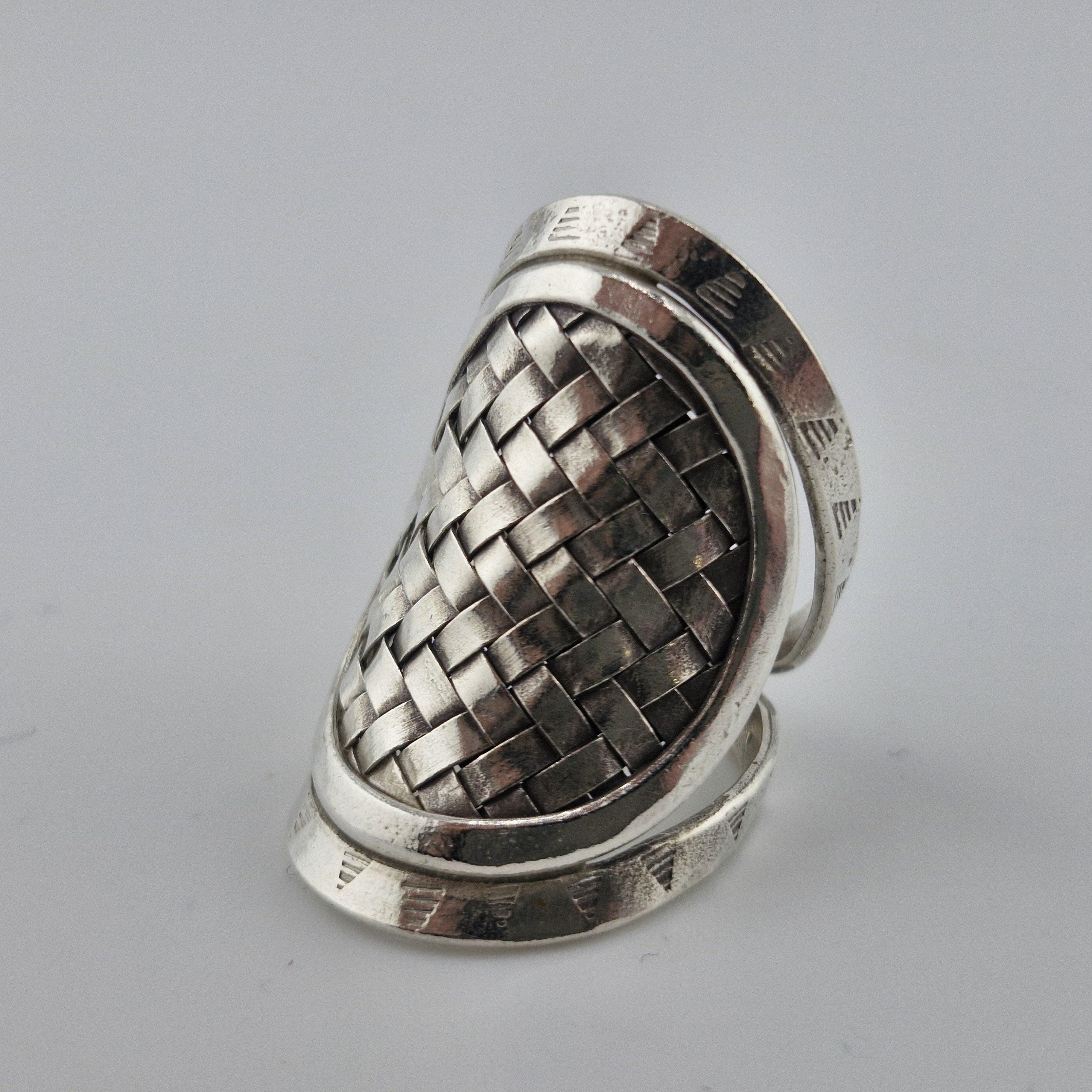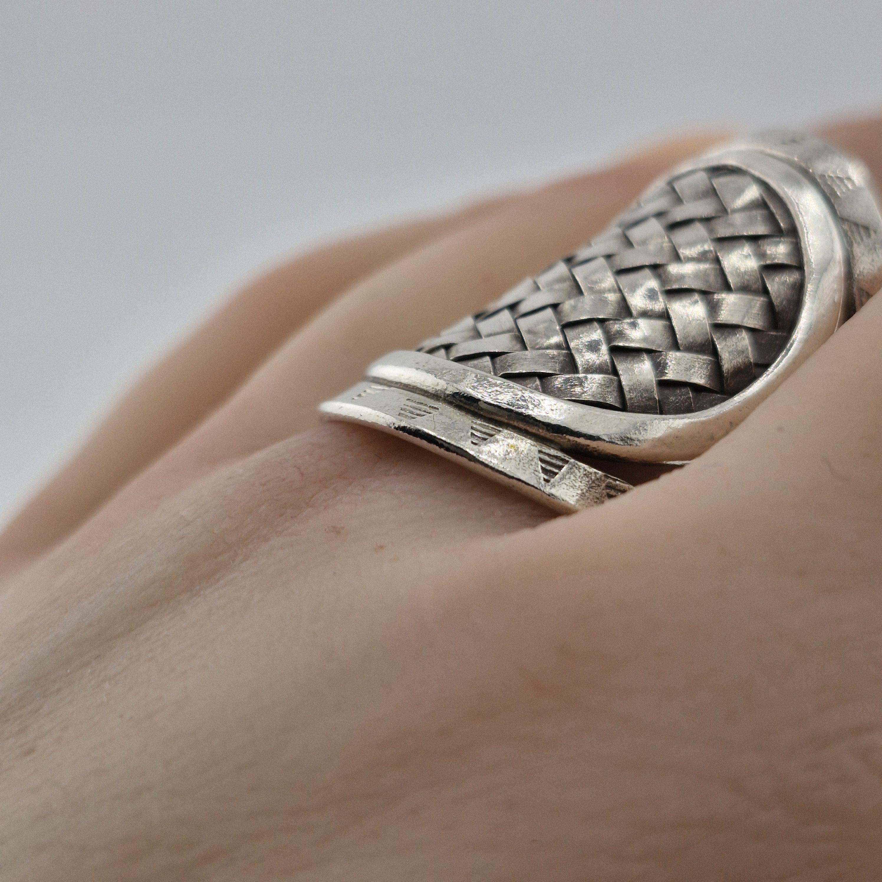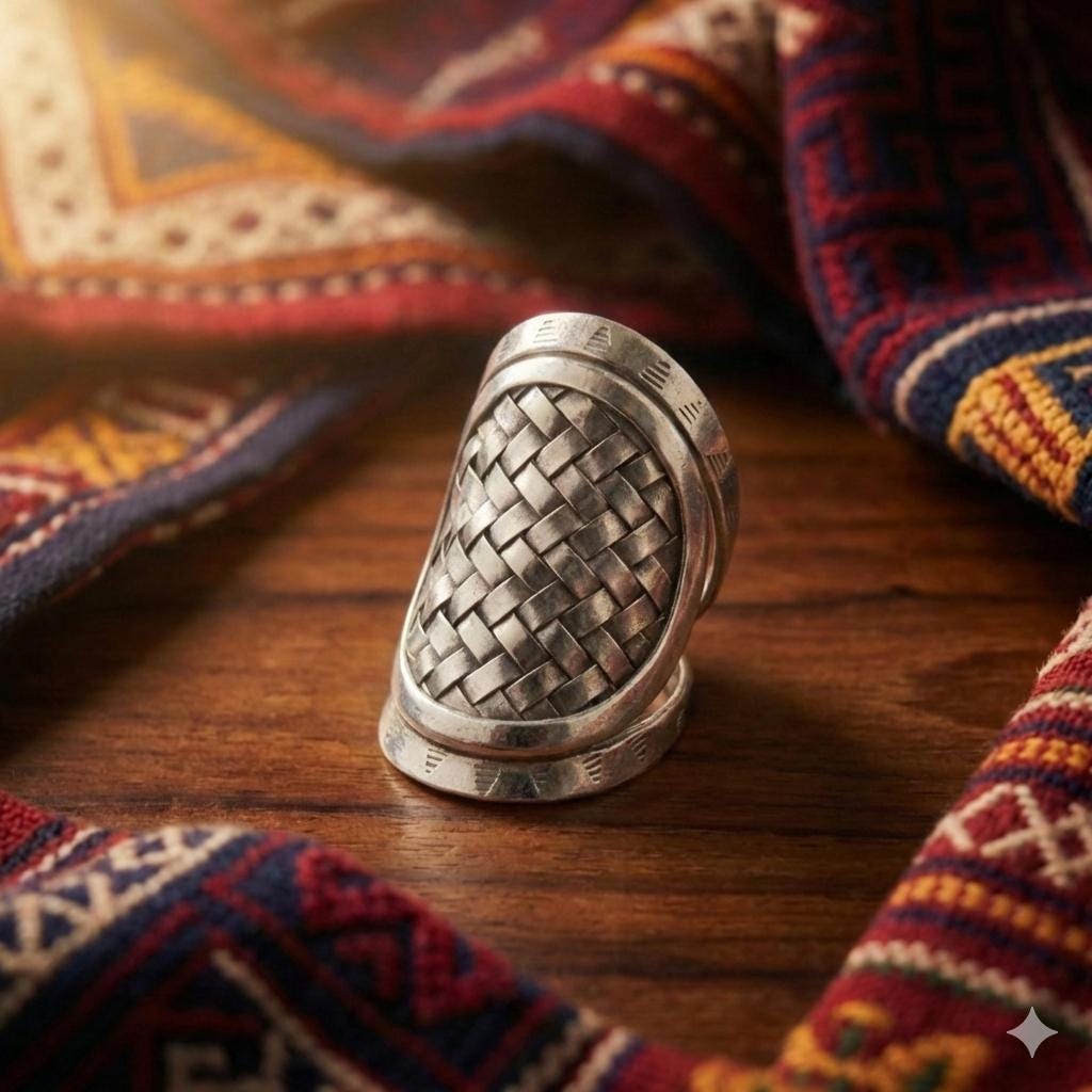 Crafted with a dense, 10-gram weight, this lustrous white metal ring features an intricate, woven-lattice texture inspired by ancient Hill Tribe artistry. Each piece is individually forged, ensuring that your ring is as unique as your own journey. The substantial feel makes it a true "investment piece" in your jewellery capsule for 2026.