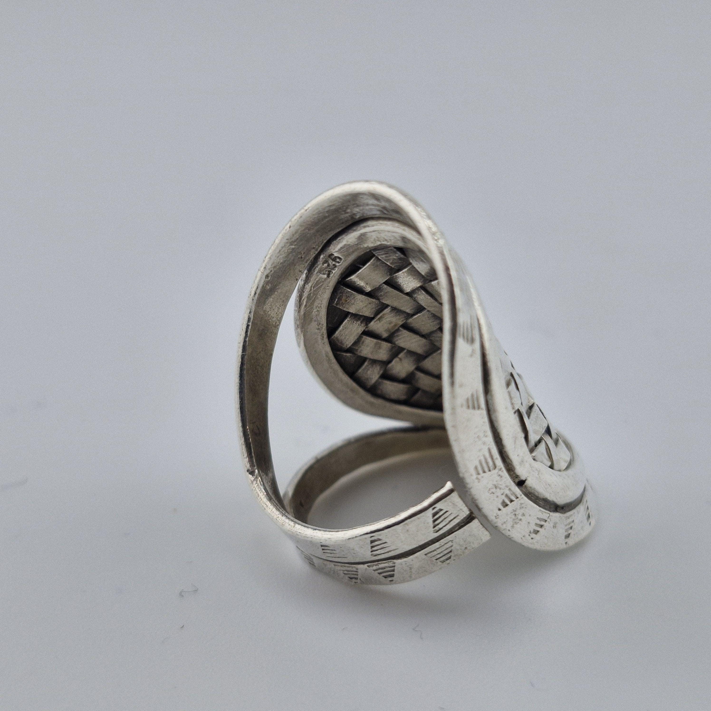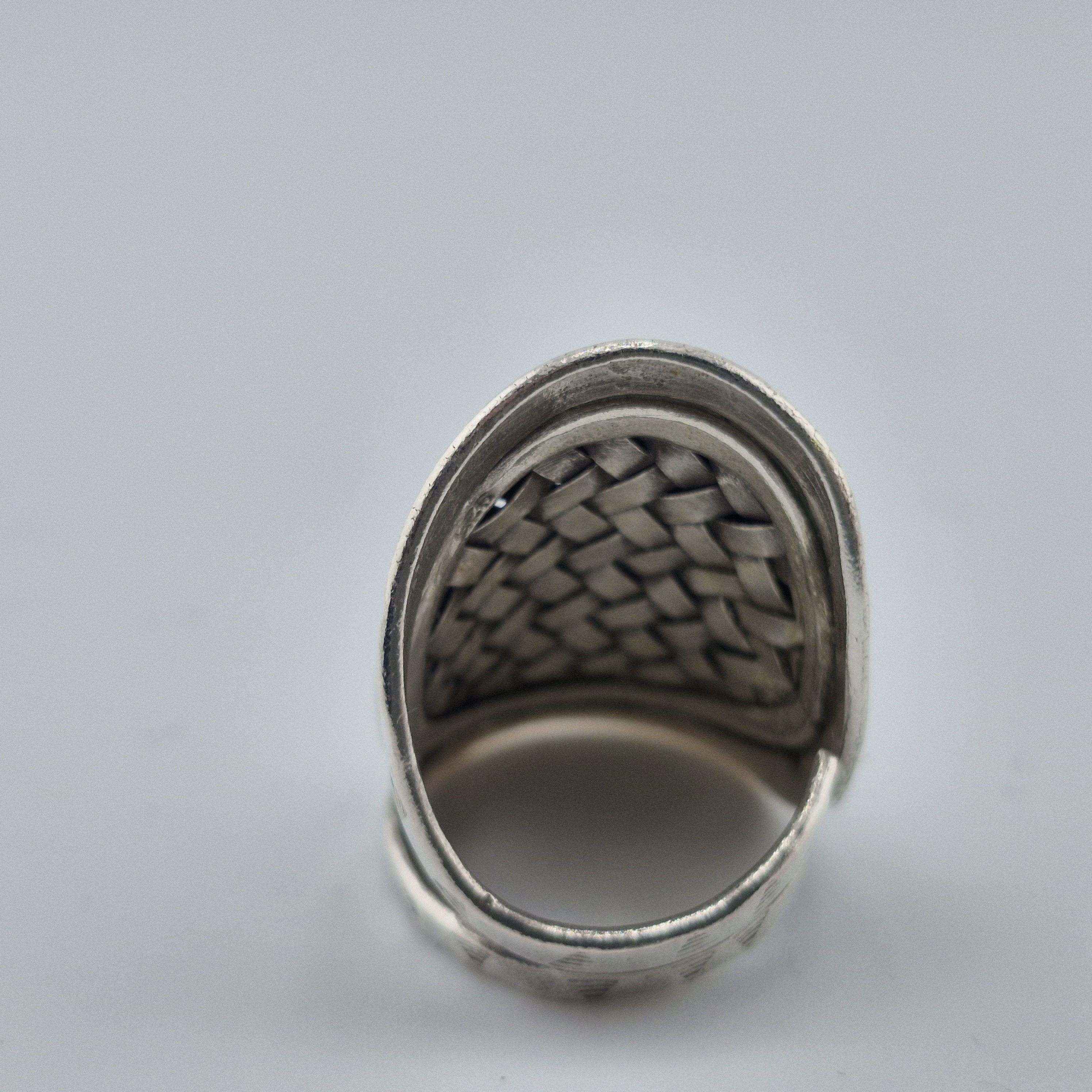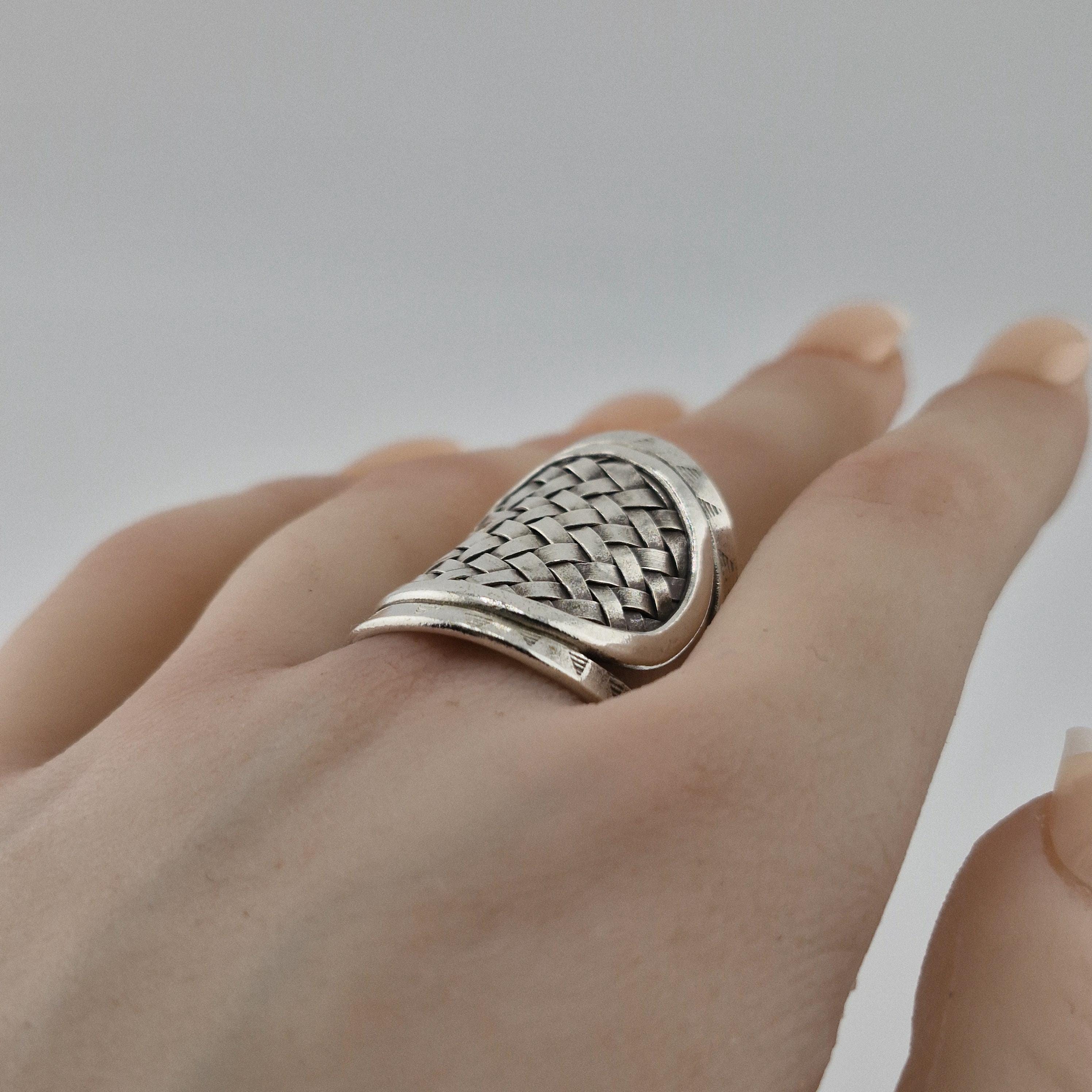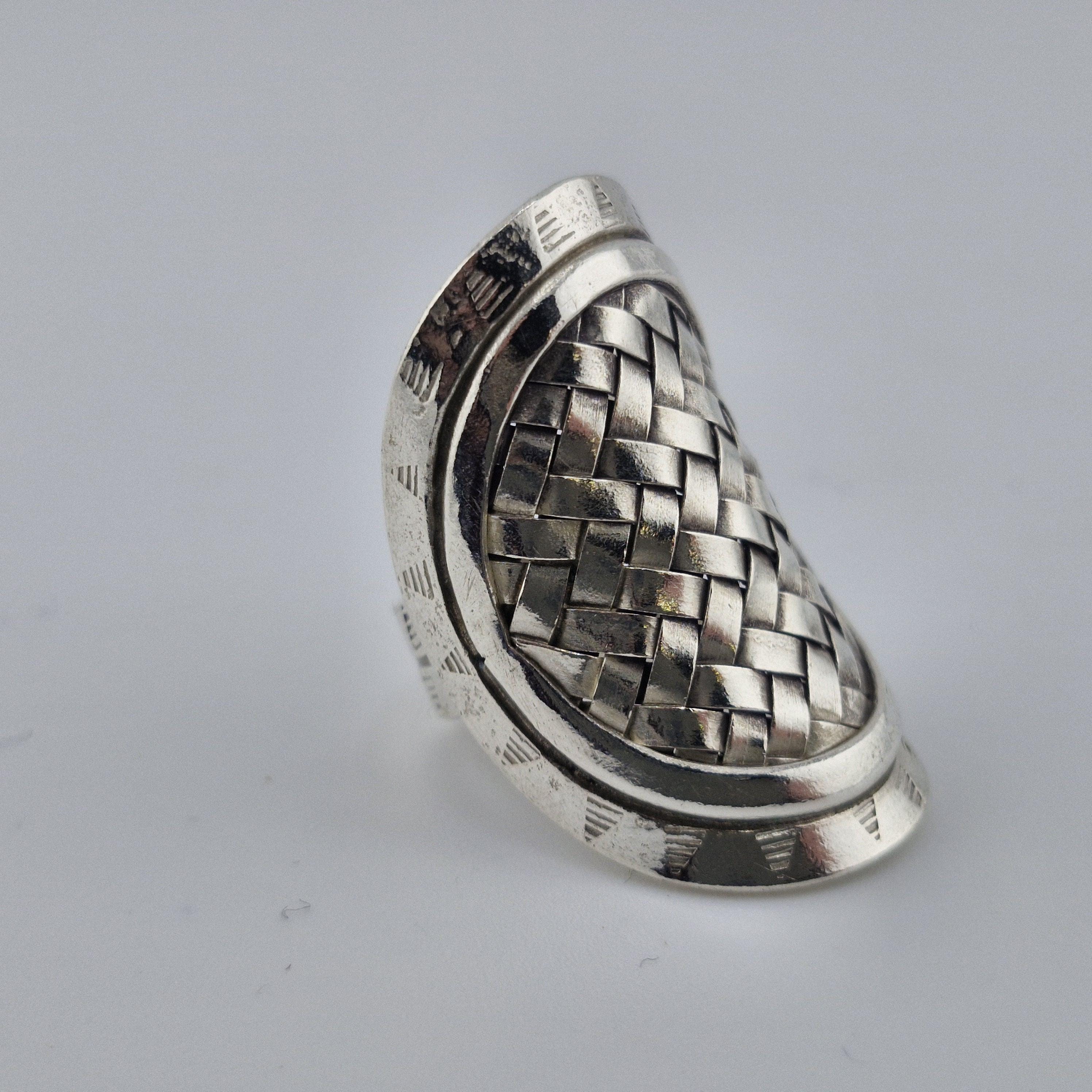 Crafted with a dense, 10-gram weight, this lustrous white metal ring features an intricate, woven-lattice texture inspired by ancient Hill Tribe artistry. Each piece is individually forged, ensuring that your ring is as unique as your own journey. The substantial feel makes it a true "investment piece" in your jewellery capsule for 2026.