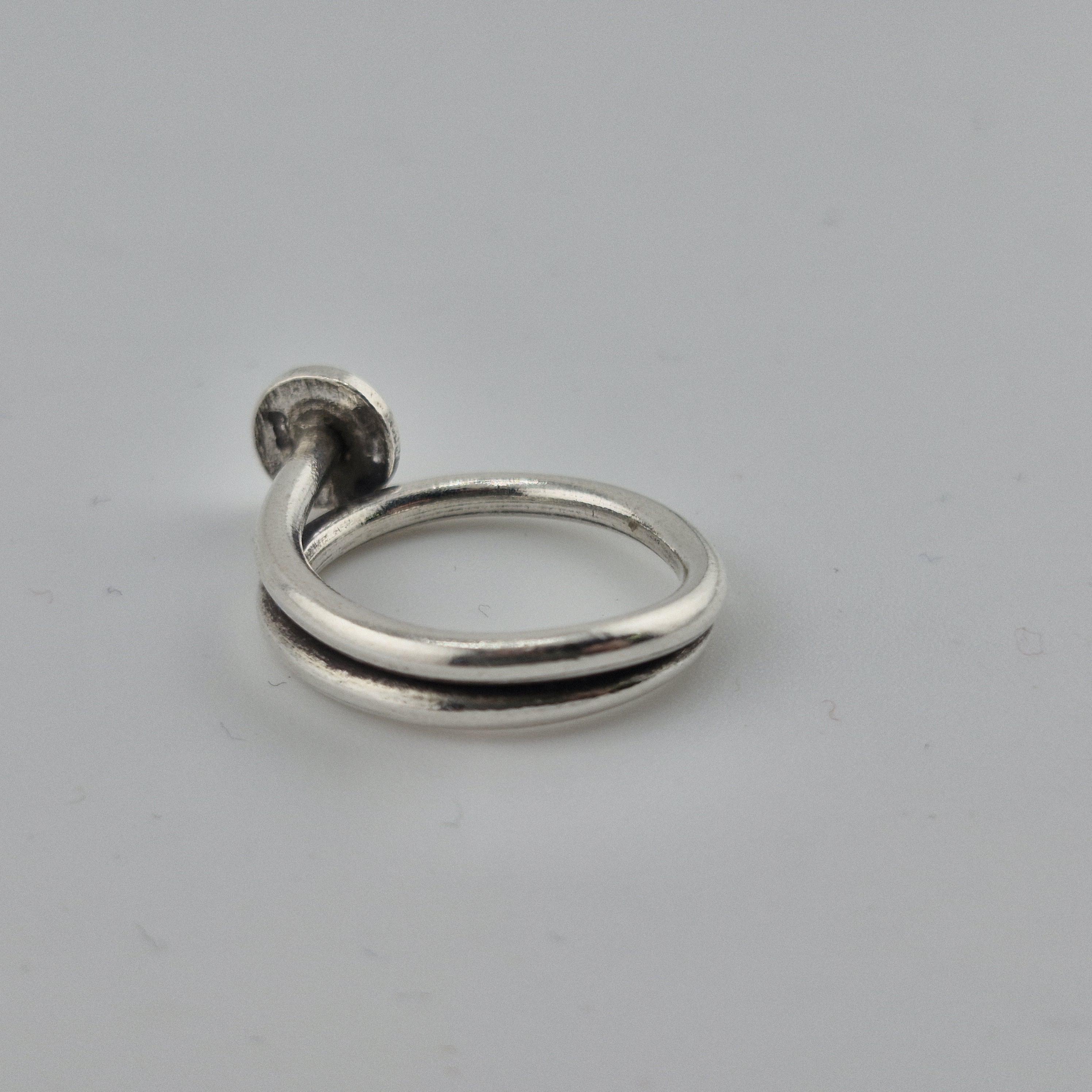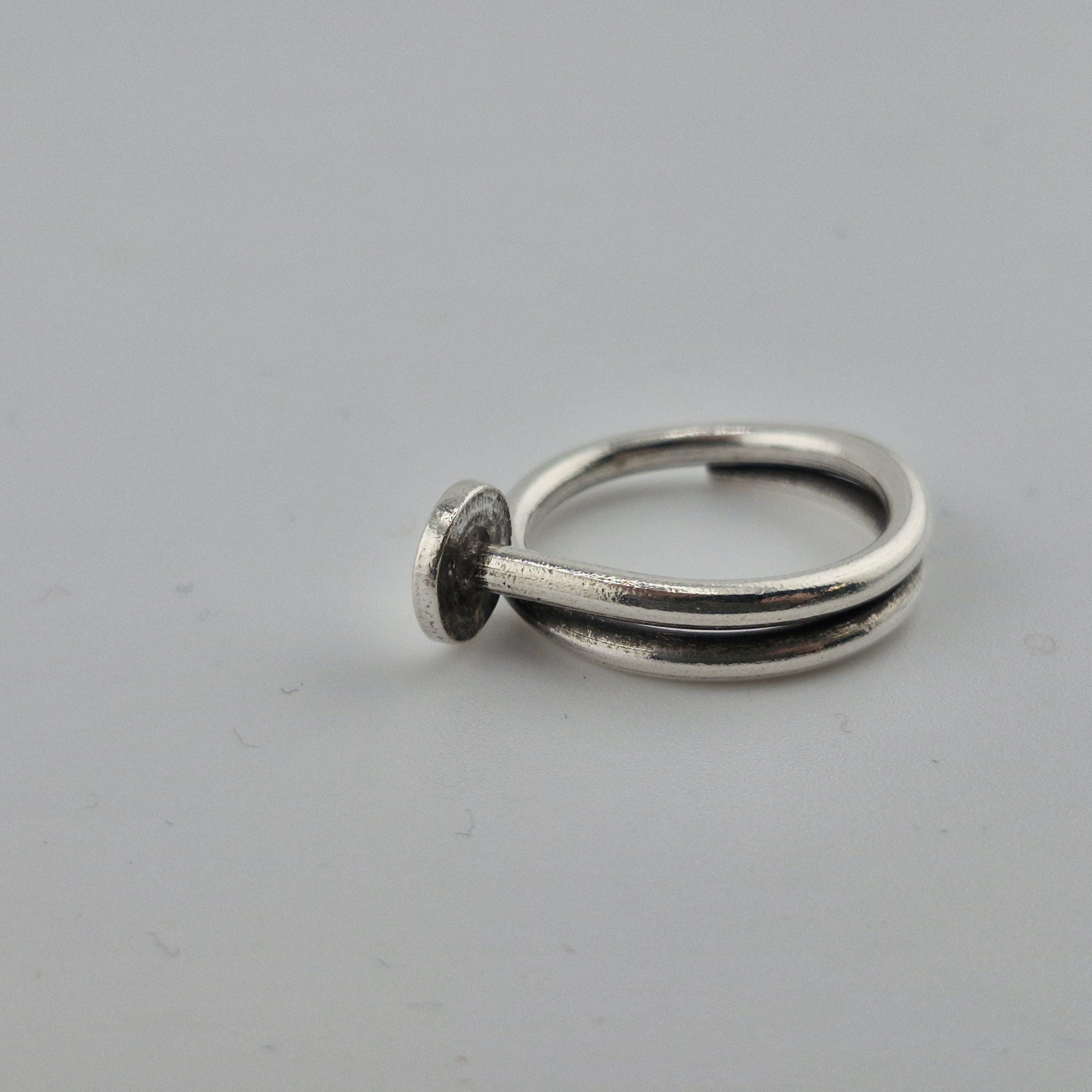 The Beauty in the Everyday The nail is a symbol of strength and construction, but when hand-forged in high-purity silver, it becomes a delicate piece of art. Designed for the woman who finds beauty in the unconventional, this ring is perfect for layering with leather textures or wearing as a standalone statement piece during a late-night acoustic set or a coffee run in the city.