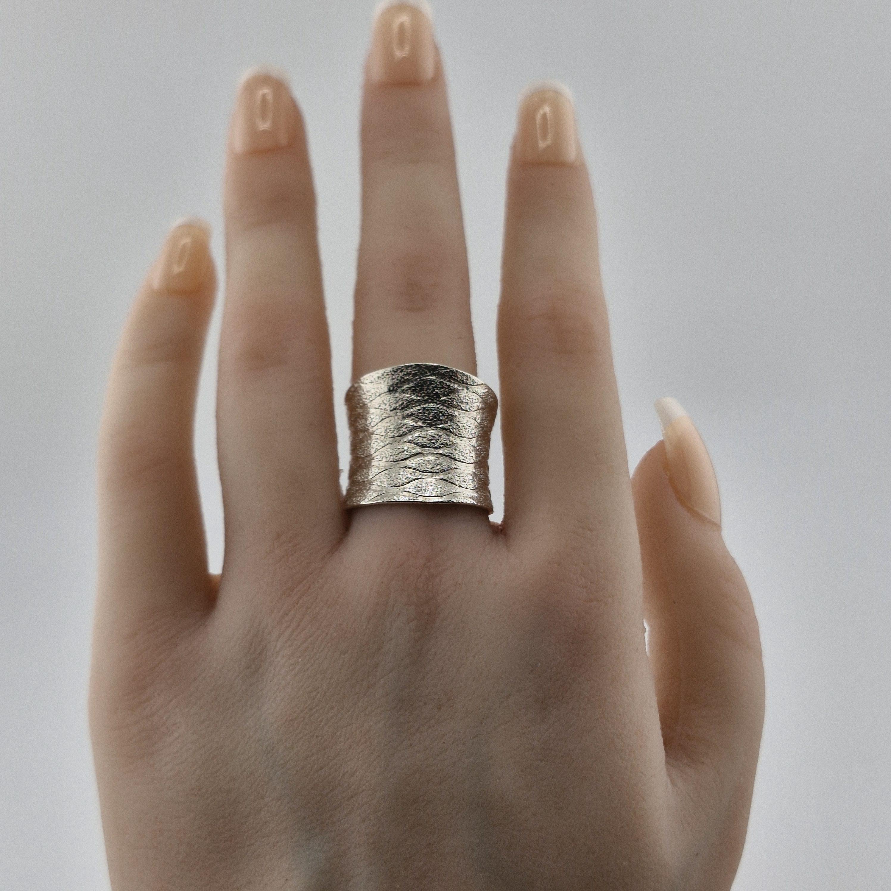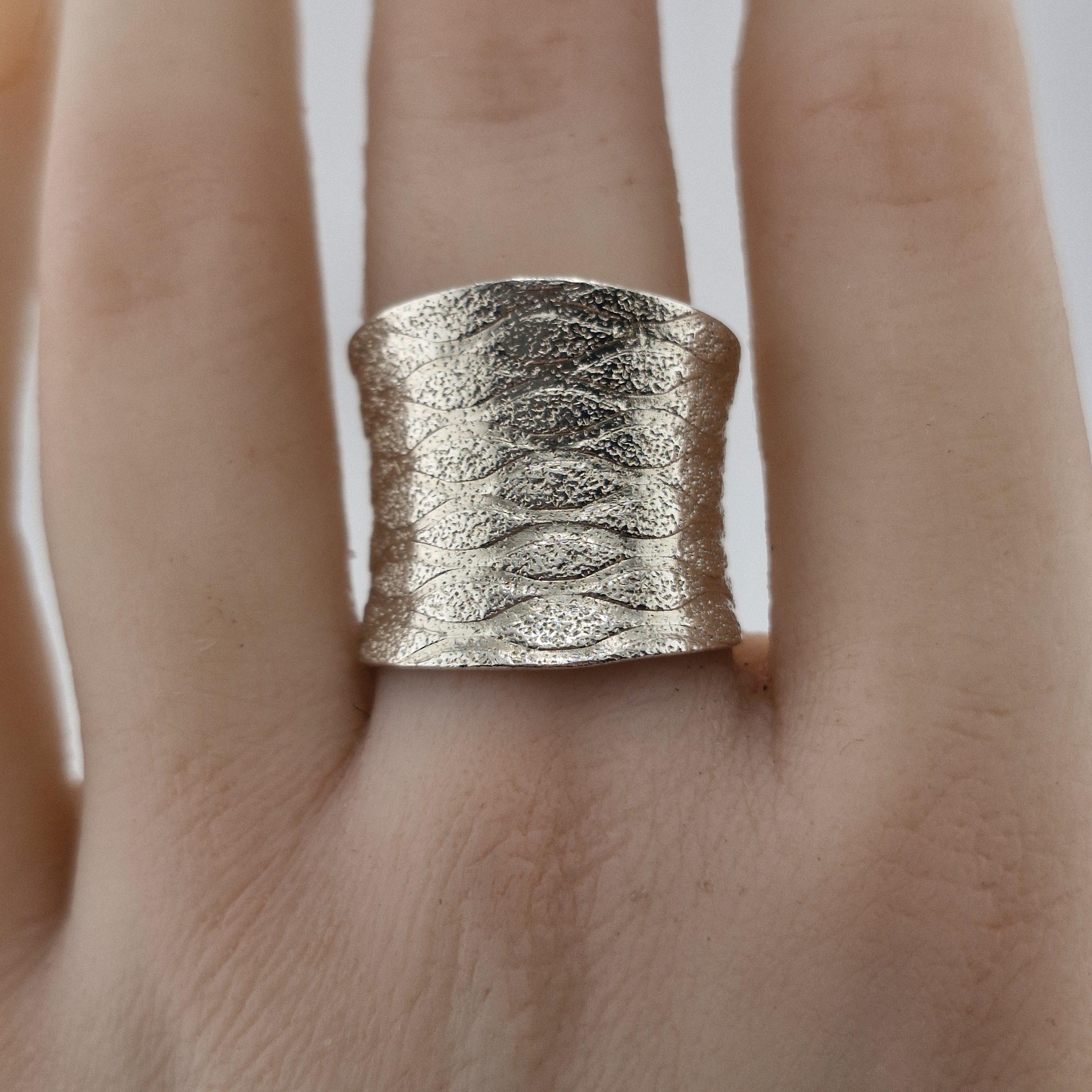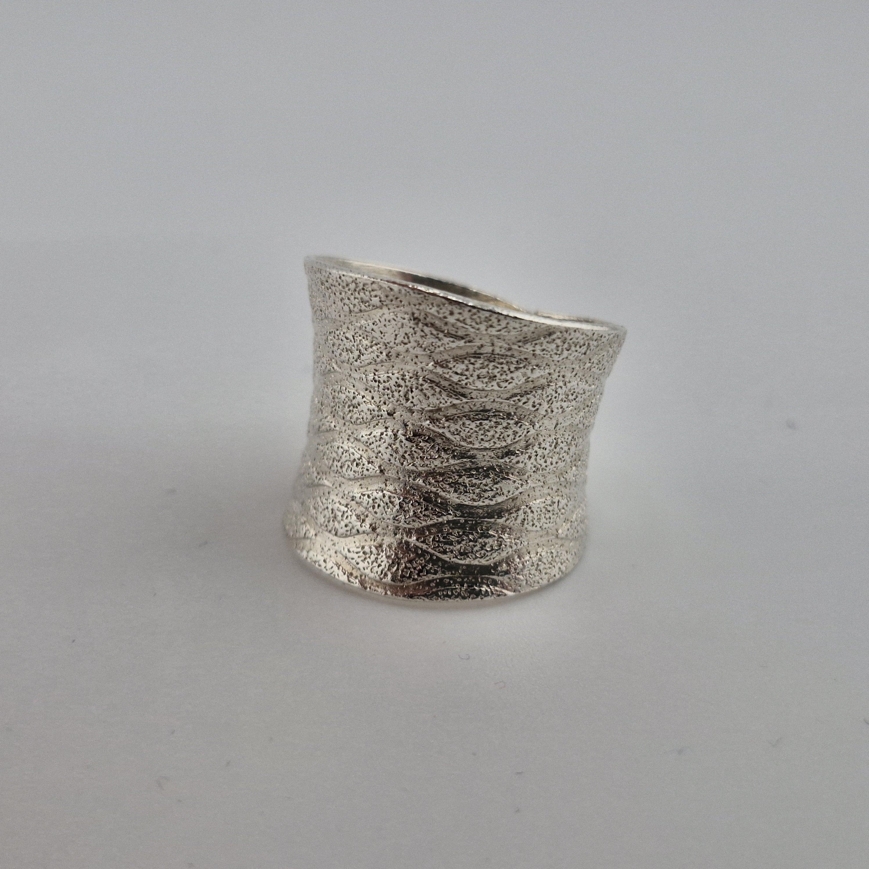 Hand-forged by artisan silversmiths, this wide-band statement piece features a captivating "water-ripple" texture. Crafted from 999 Fine Silver, it boasts a purity of 96-99%, far exceeding standard sterling silver. The result? A lustrous, organic glow that feels soft against the skin and develops a unique character over time.