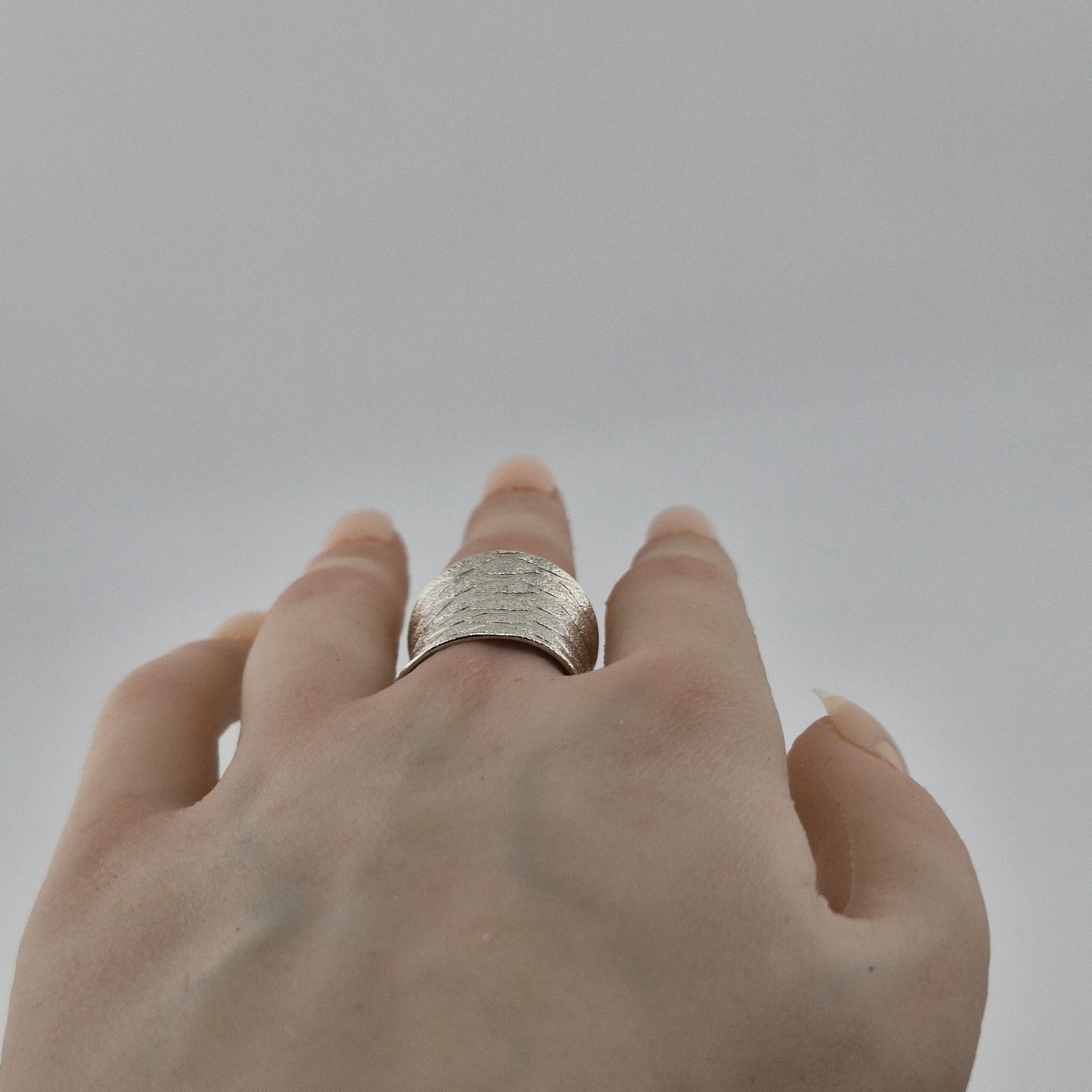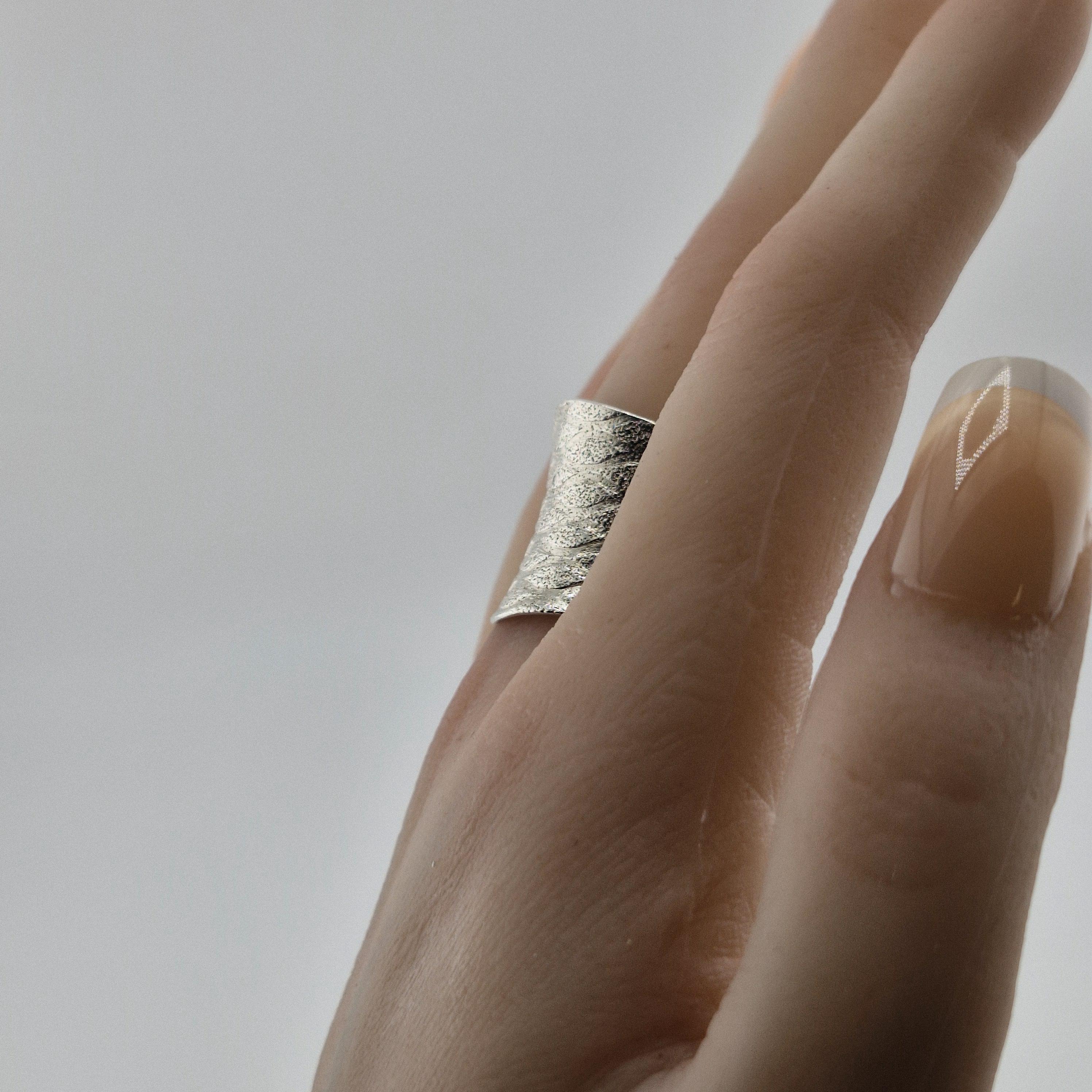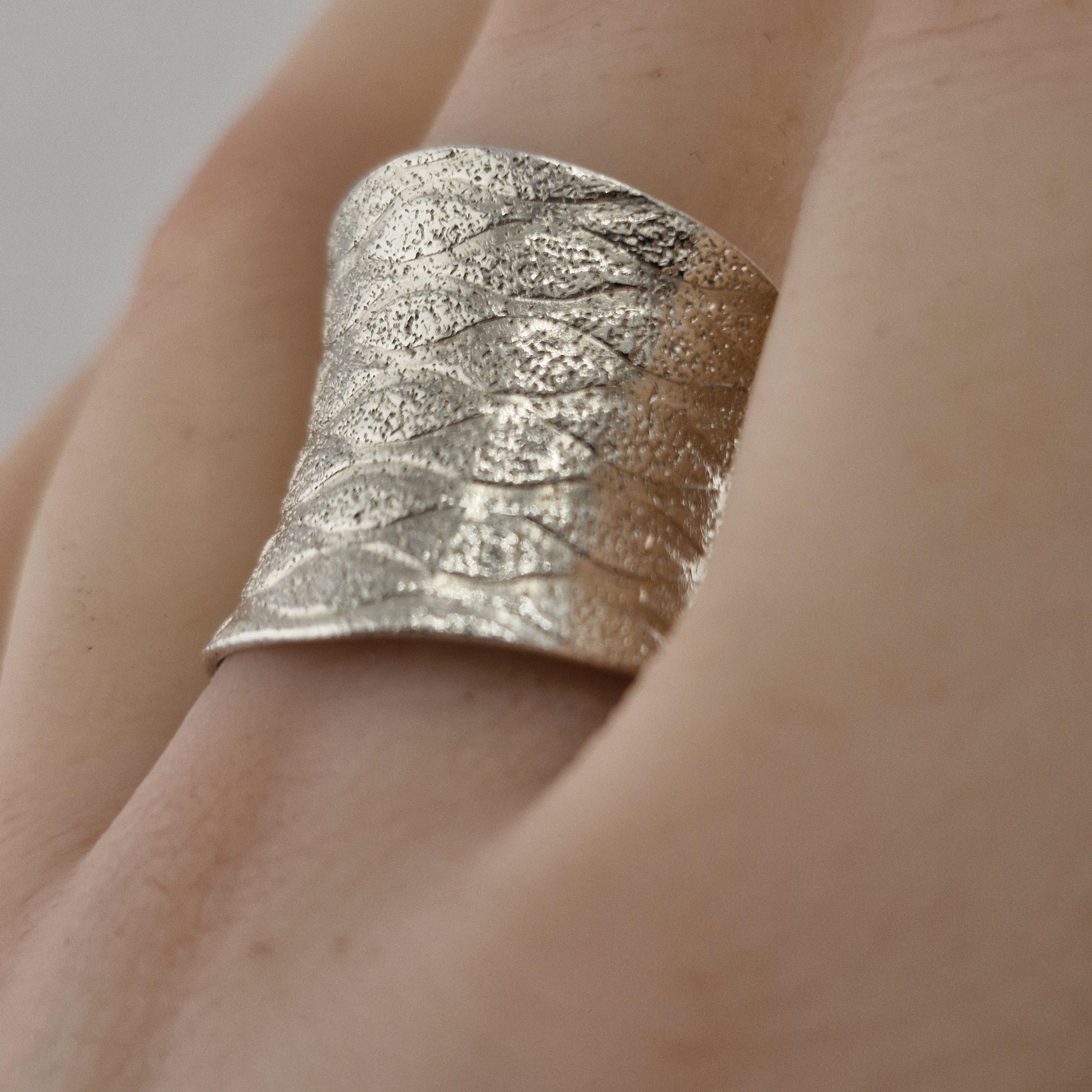 Hand-forged by artisan silversmiths, this wide-band statement piece features a captivating "water-ripple" texture. Crafted from 999 Fine Silver, it boasts a purity of 96-99%, far exceeding standard sterling silver. The result? A lustrous, organic glow that feels soft against the skin and develops a unique character over time.