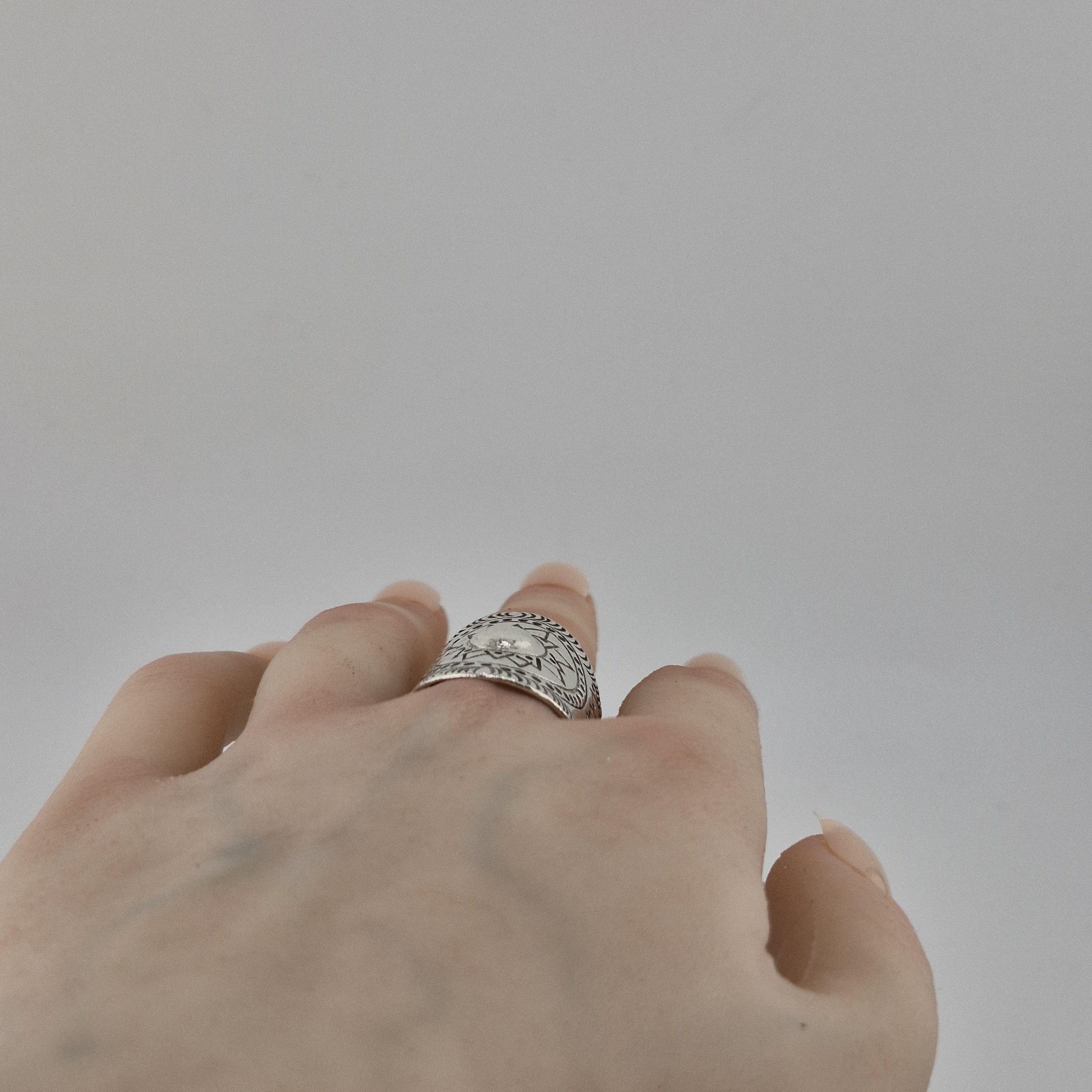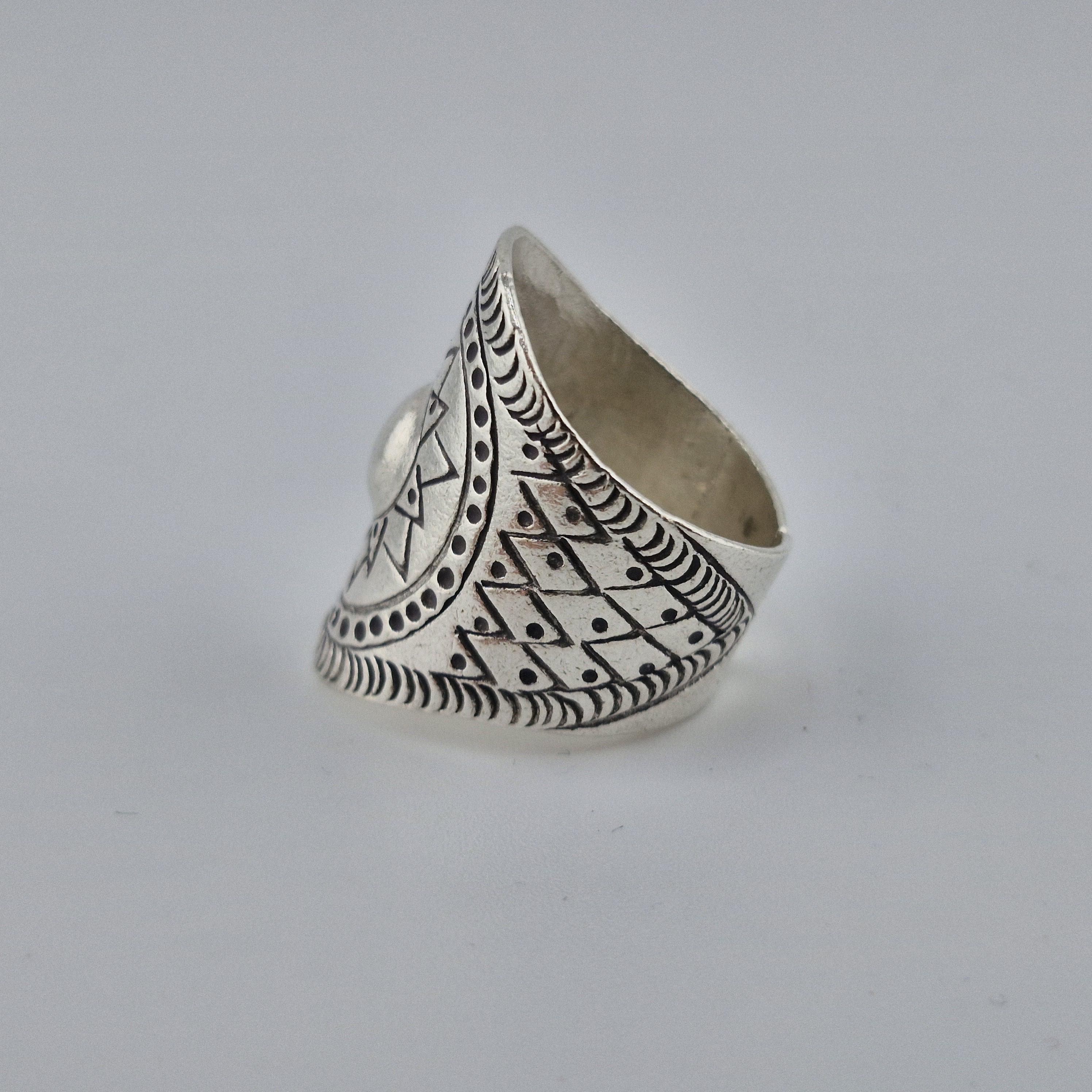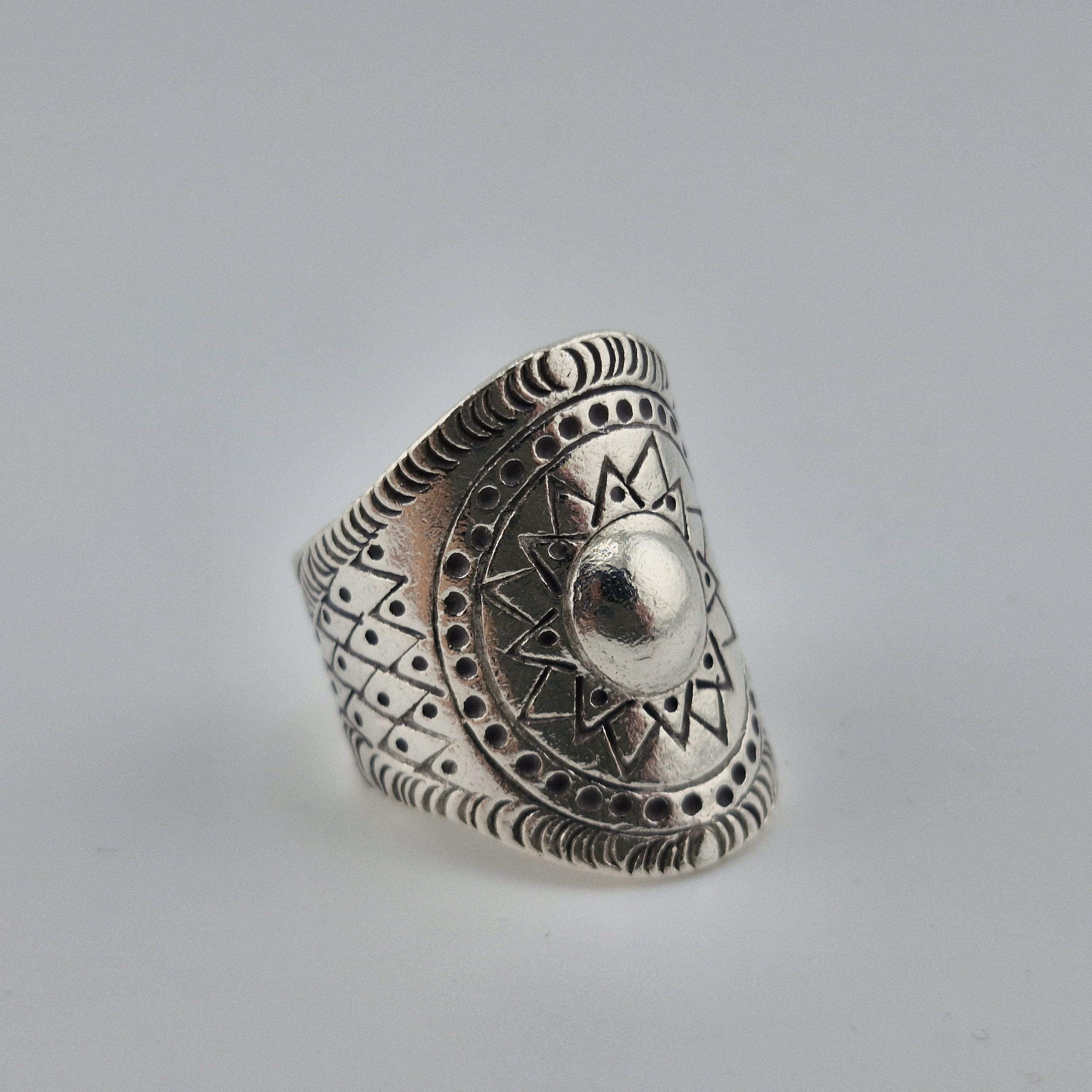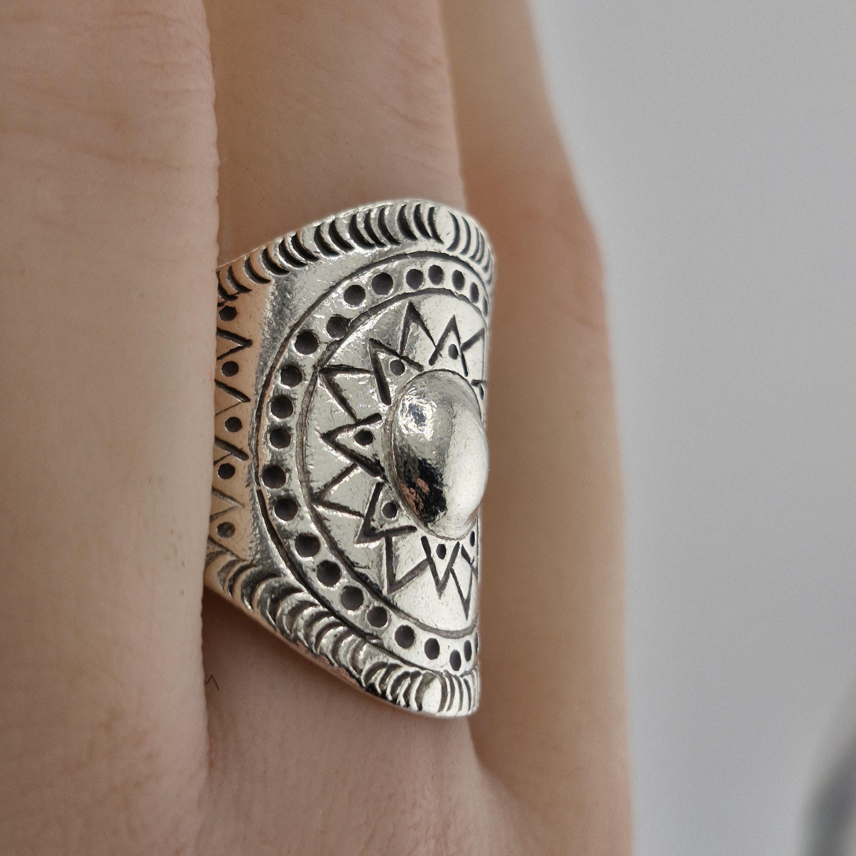 Whether you’re catching the first light at a coastal retreat or layered up for a winter festival, this hand-forged metallic statement ring is designed for the woman who carries the sun with her. Featuring a striking central dome surrounded by a meticulously carved sunburst motif, this piece is inspired by ancient tribal geometry and refined for the 2026 'Aetheric Earth' trend.