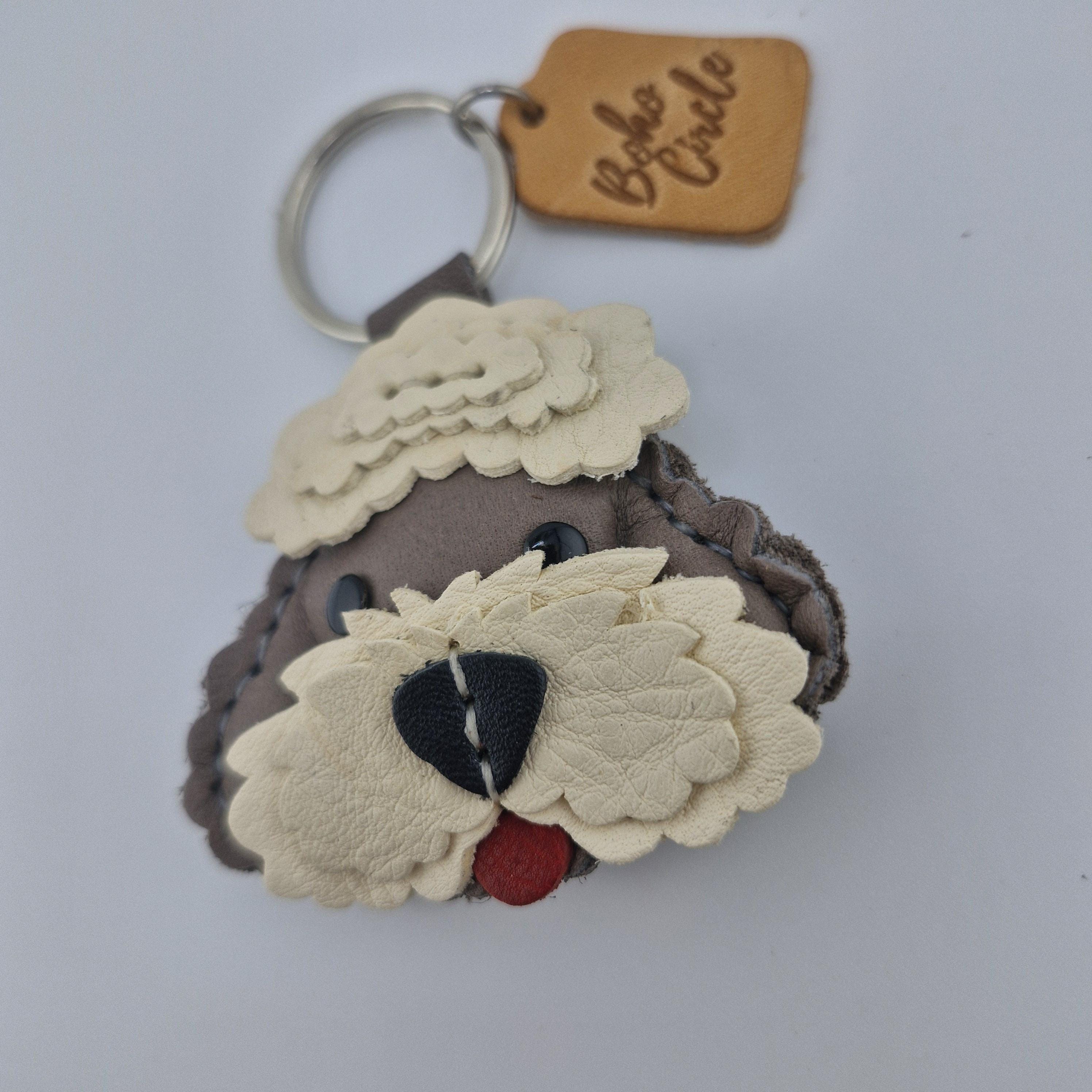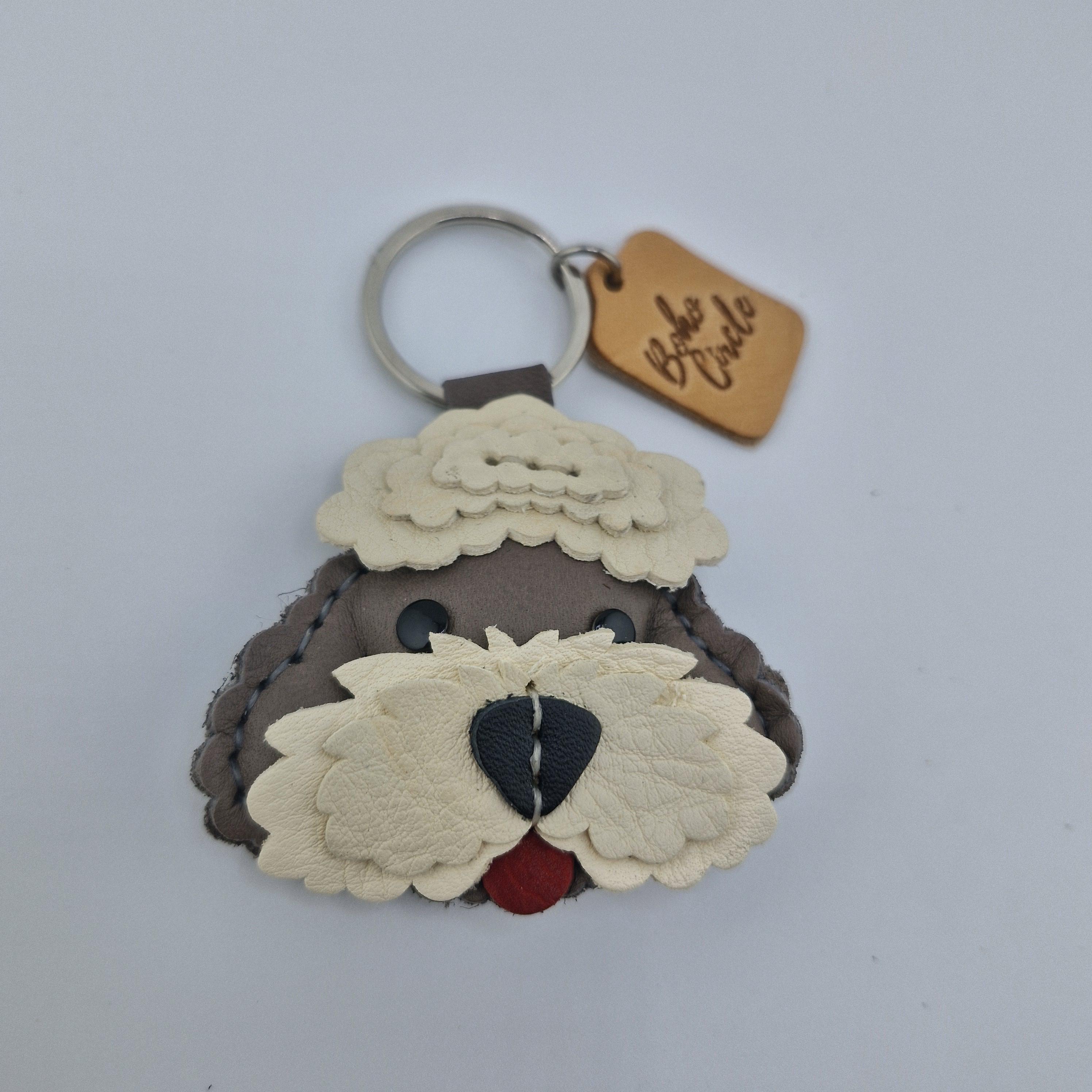 Celebrate your love for the iconic "Sheepie" with this exquisitely crafted Old English Sheepdog leather keychain. Every detail of this shaggy-haired friend is meticulously brought to life through traditional leatherworking techniques. This isn't just a mass-produced accessory; it is a piece of wearable art designed to last a lifetime.