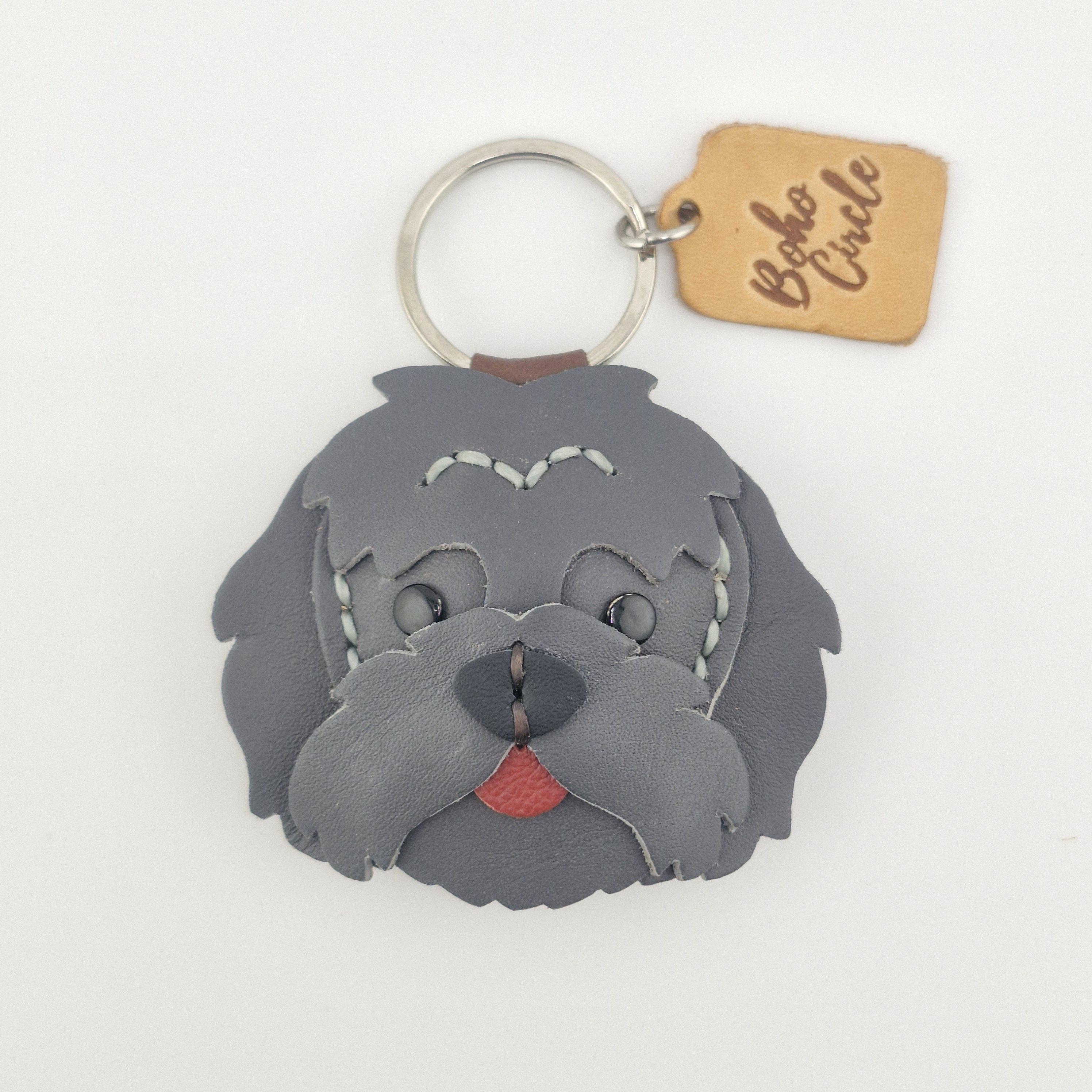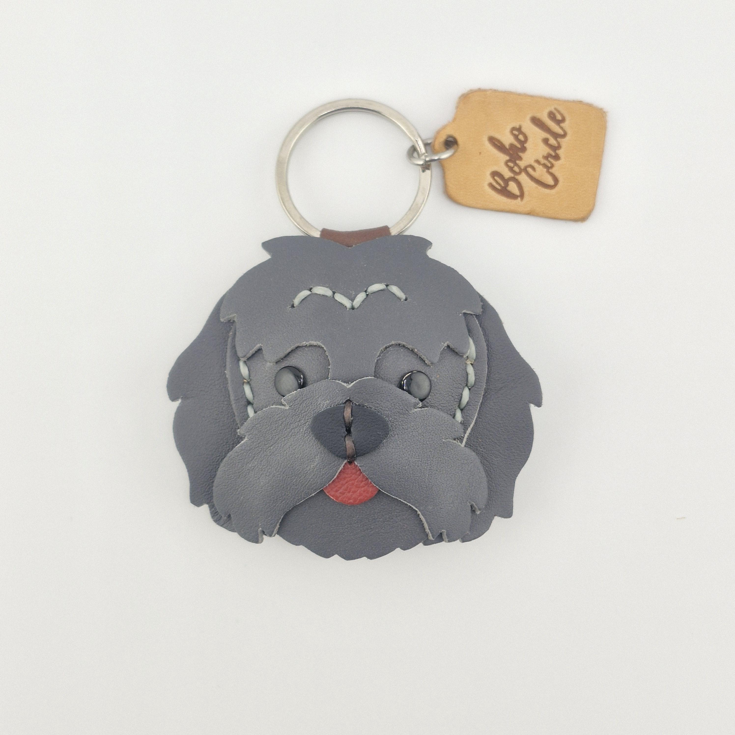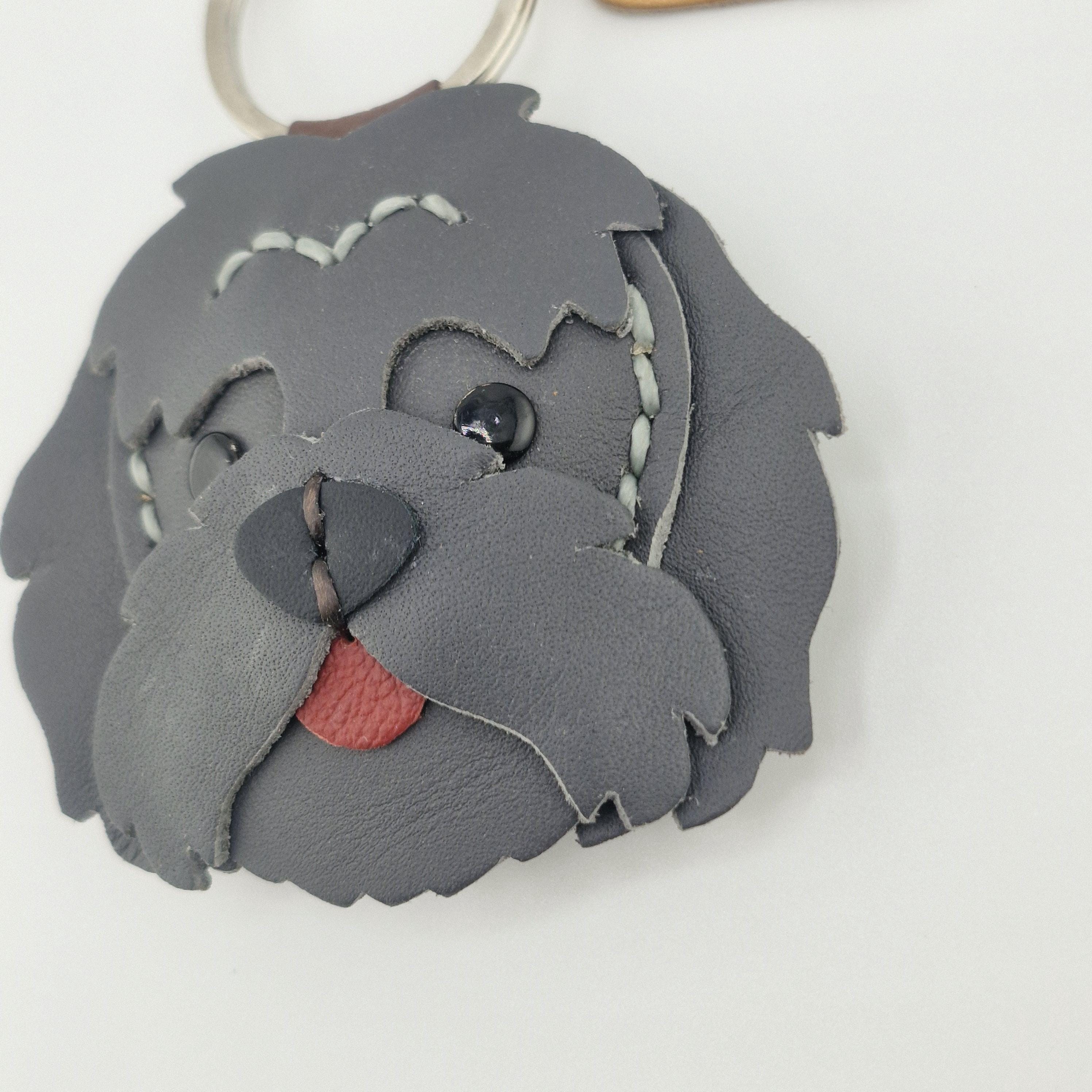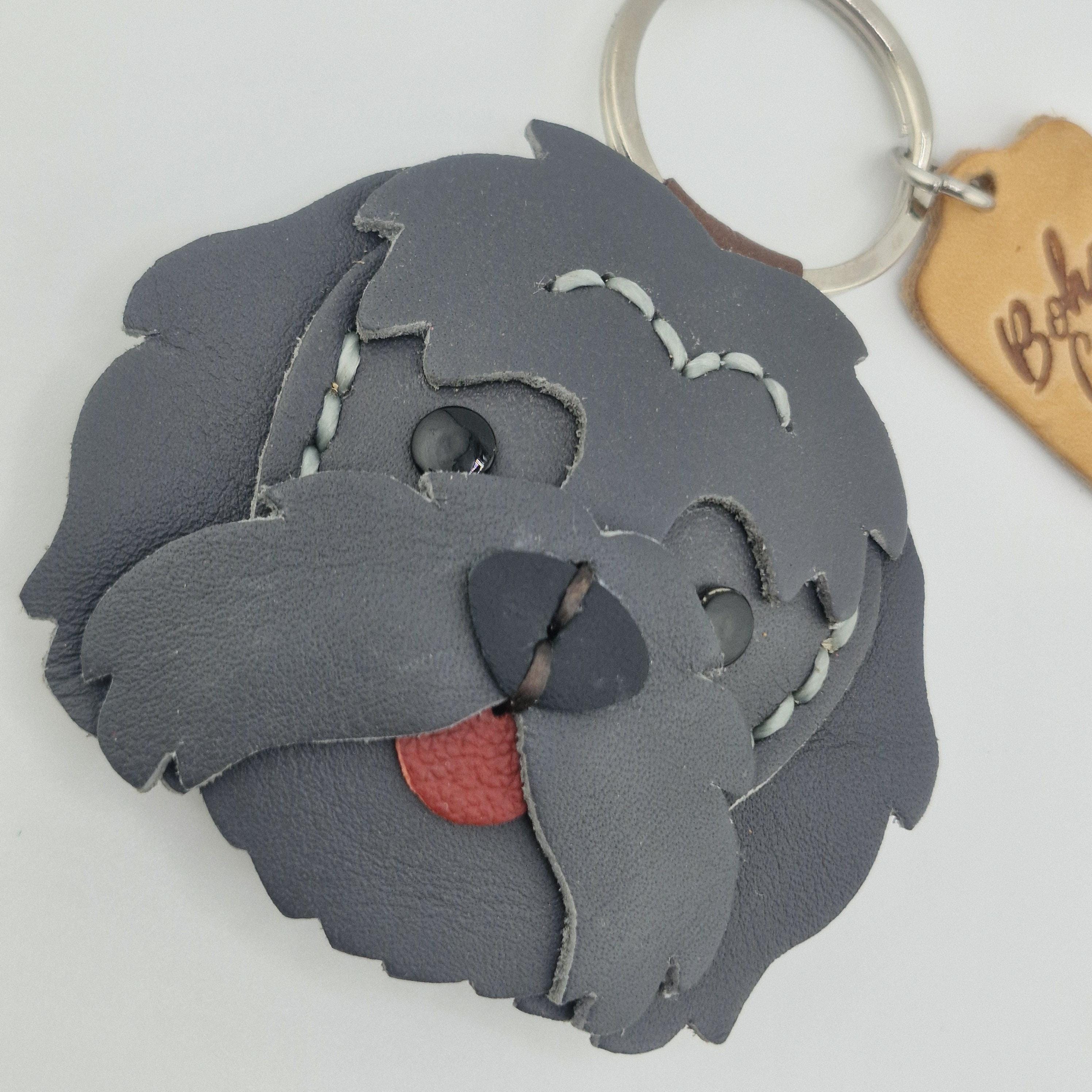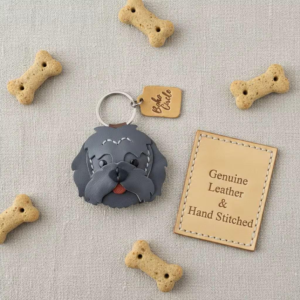 Every single piece is handmade, hand-cut, and hand-stitched using high-quality genuine leather. We’ve layered the slate-grey leather to mimic the thick, flowing coat characteristic of long-haired breeds, finishing it with delicate hand-sewn details and a playful red tongue. This isn't a mass-produced plastic fob; it is a durable, artisanal tribute to your favorite four-legged friend.