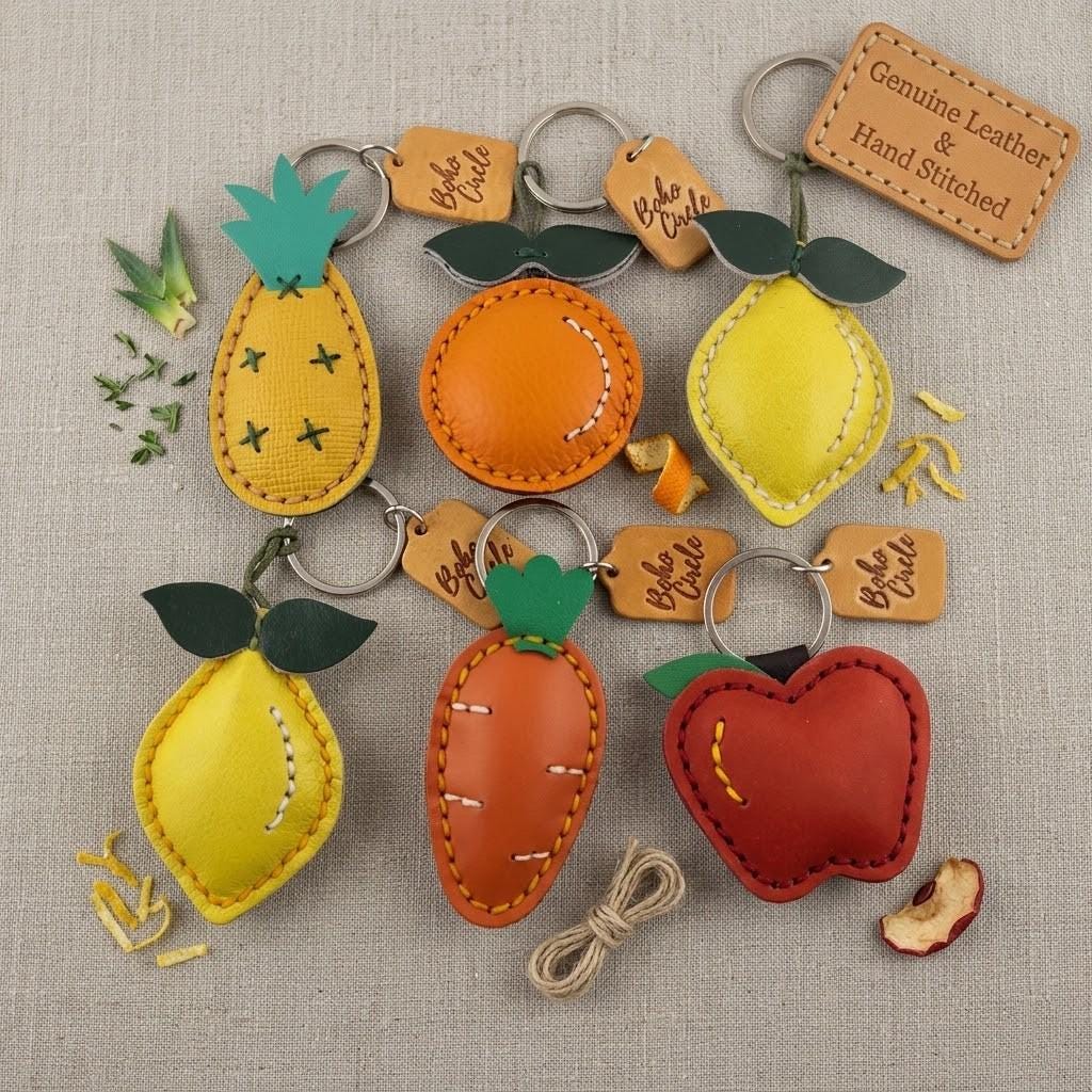 Hand-stitched with love and precision, these Boho Circle leather charms are more than just keyrings—they are tiny pieces of sunshine for your handbag, backpack, or new car keys. Whether you are celebrating a new home, welcoming a new pet (perfect for those puppy walk keys!), or simply treating yourself to a bit of "Farmer's Market" whimsy, these accessories are designed for the free-spirited woman who appreciates the beauty in the details.