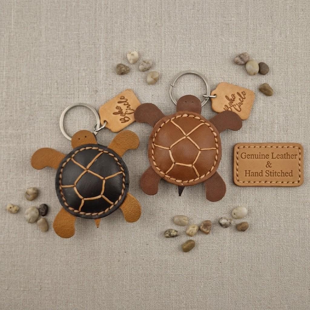 Carry a symbol of wisdom, protection, and endurance with the Boho Circle Handcrafted Leather Turtle Keyring. Inspired by the gentle giants of the ocean, these keyrings are designed for the free-spirited woman who values artisan quality and nature-inspired aesthetics.